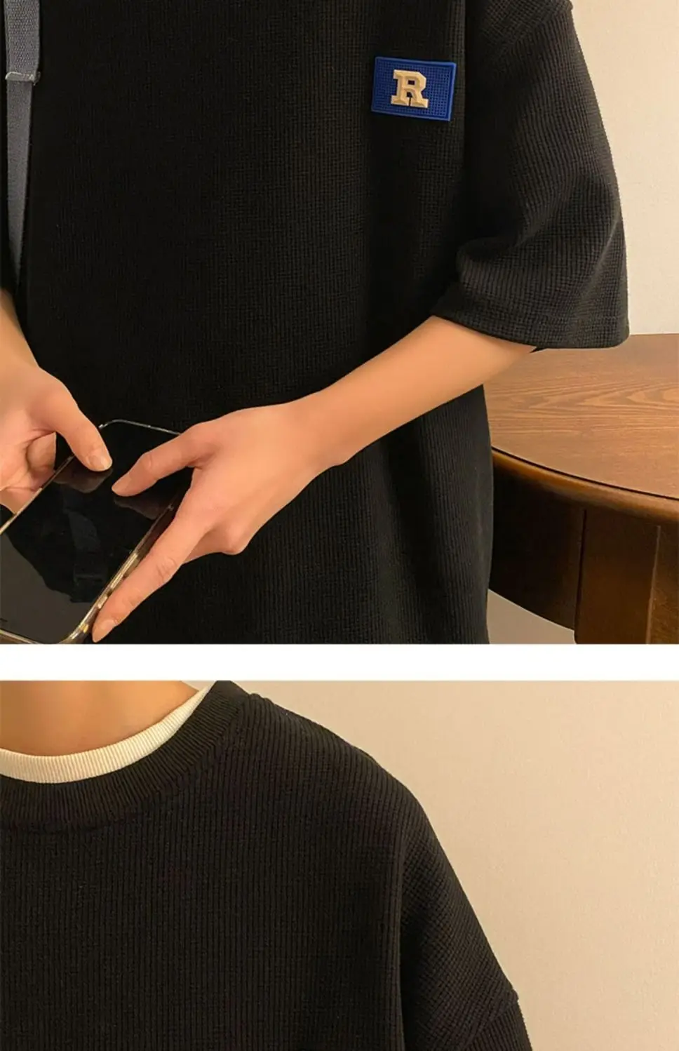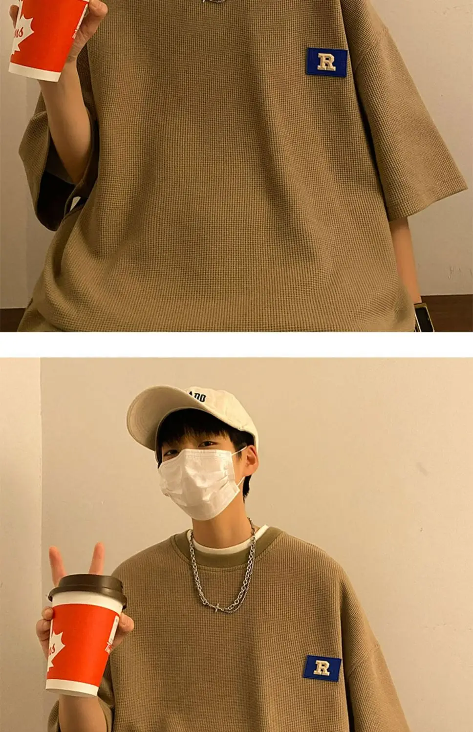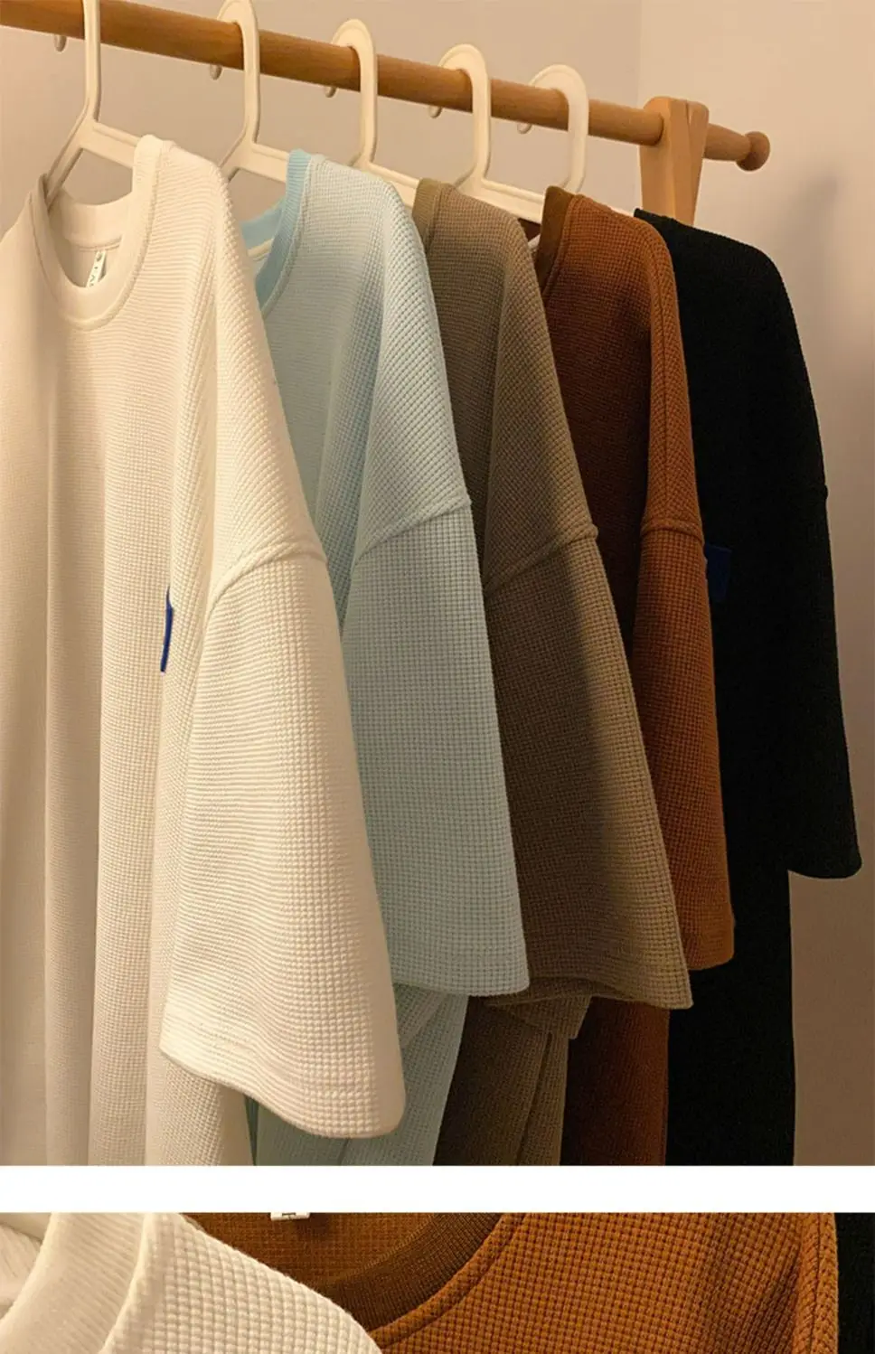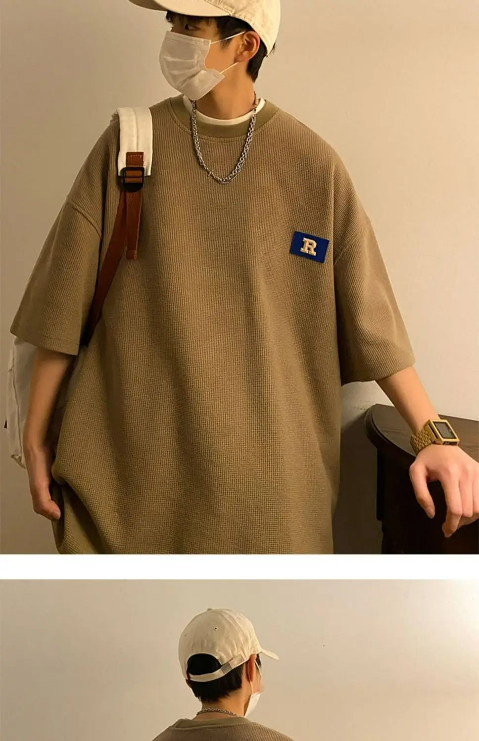 Advbridge Summer Solid Casual Loose Tess T-Shirts Men'S Top Simple Breathable Waffle Pullover Prints R Short Sleeve Sport Cool Boys