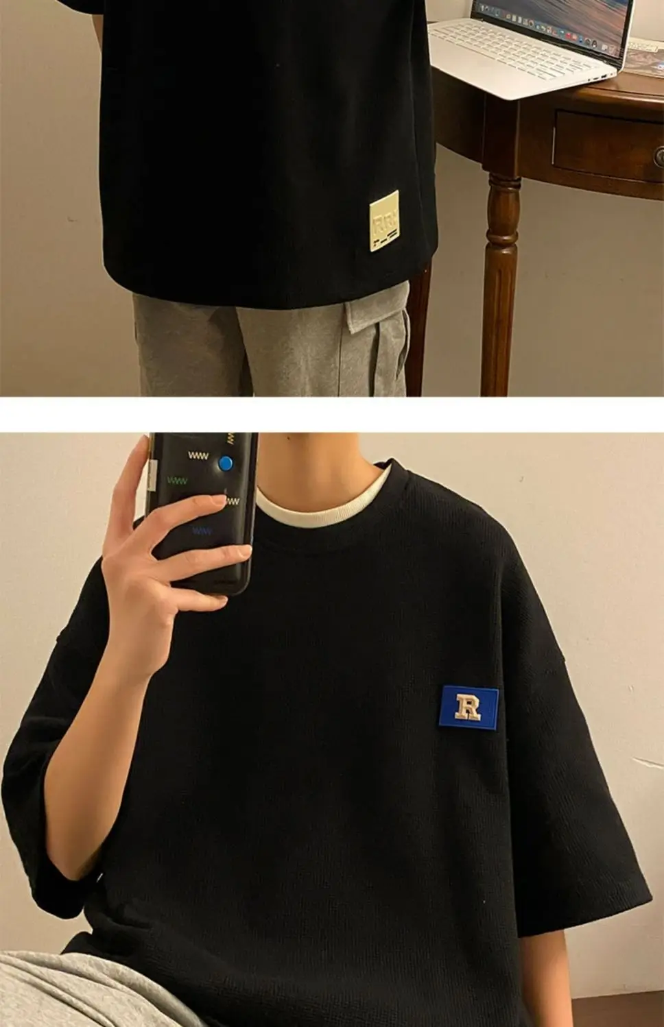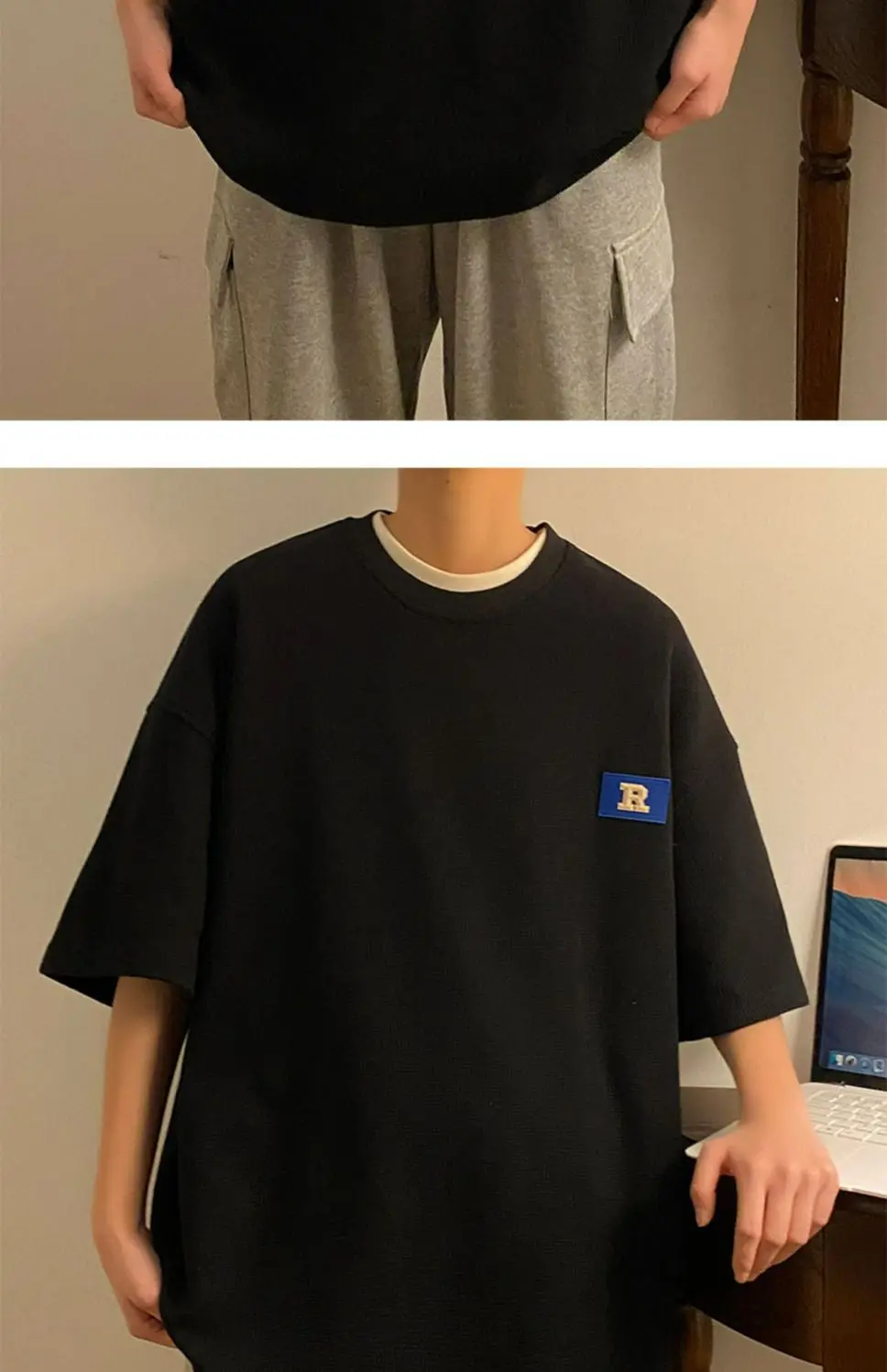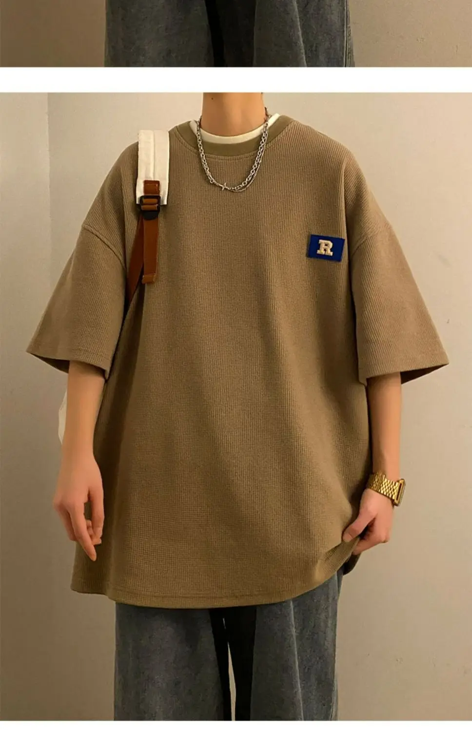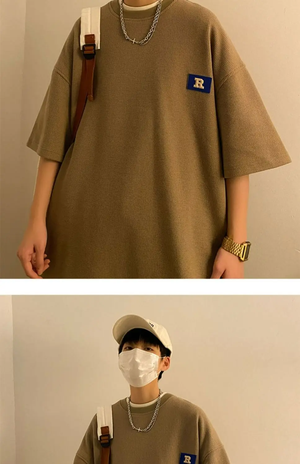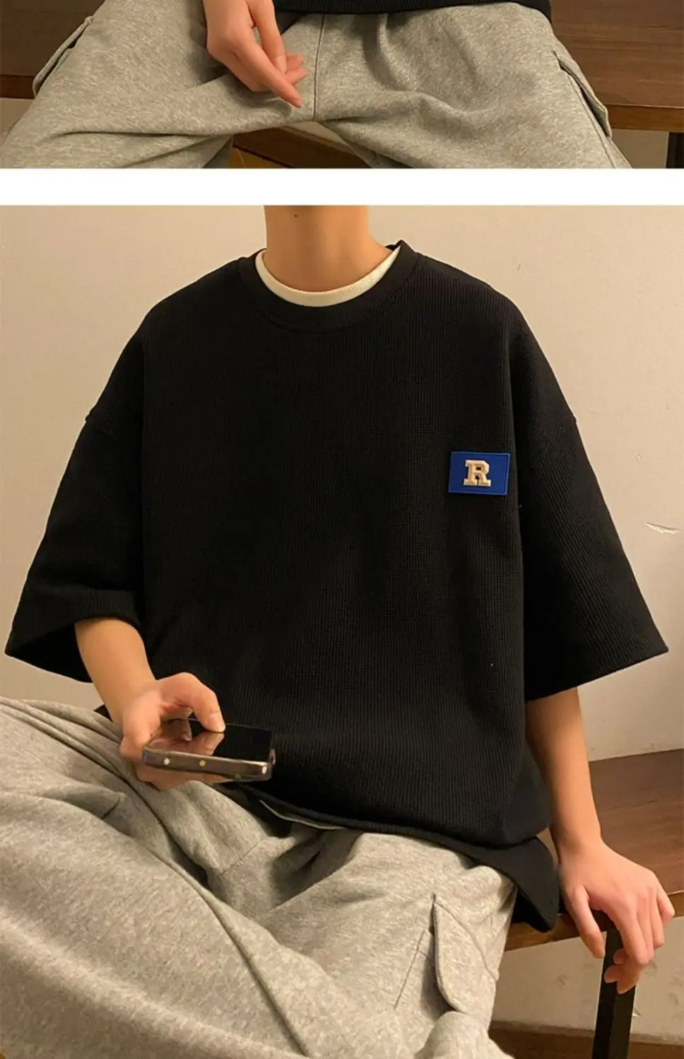 Advbridge Summer Solid Casual Loose Tess T-Shirts Men'S Top Simple Breathable Waffle Pullover Prints R Short Sleeve Sport Cool Boys