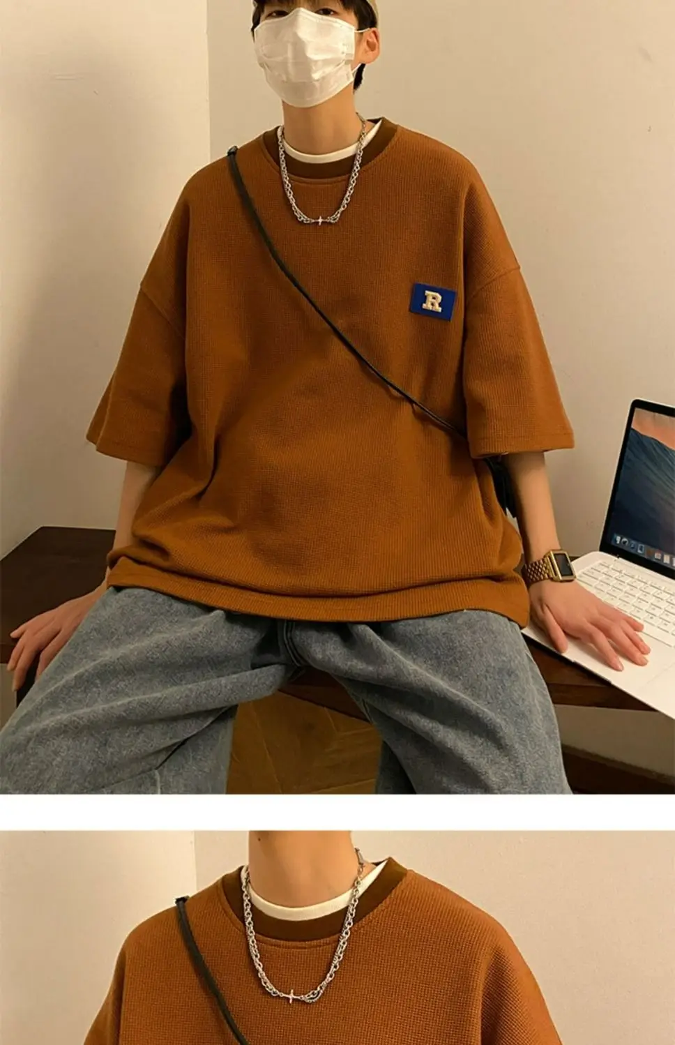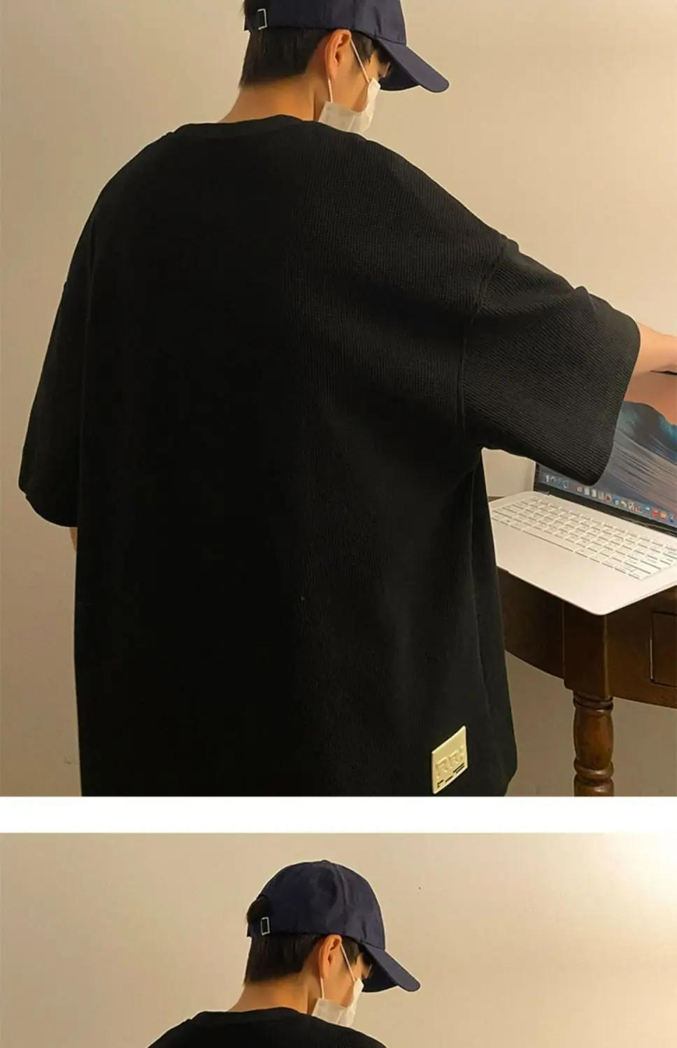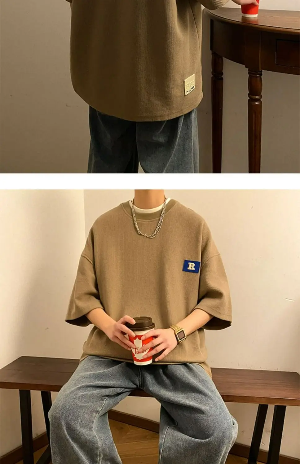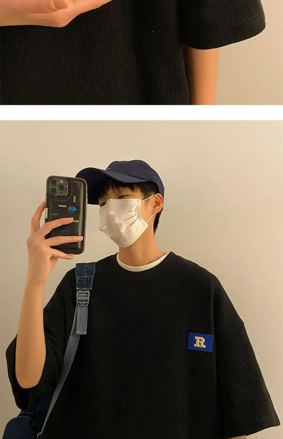 Advbridge Summer Solid Casual Loose Tess T-Shirts Men'S Top Simple Breathable Waffle Pullover Prints R Short Sleeve Sport Cool Boys