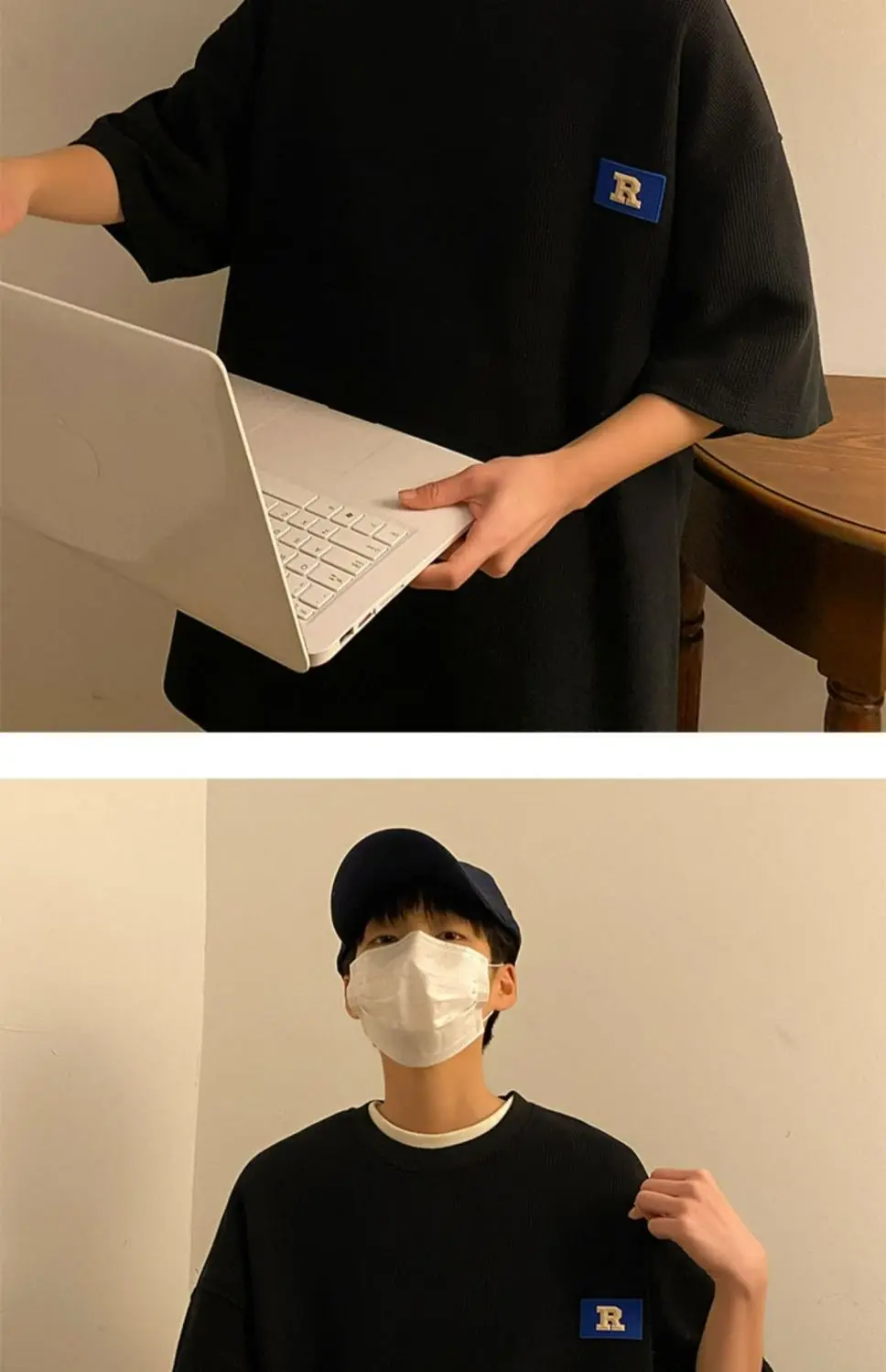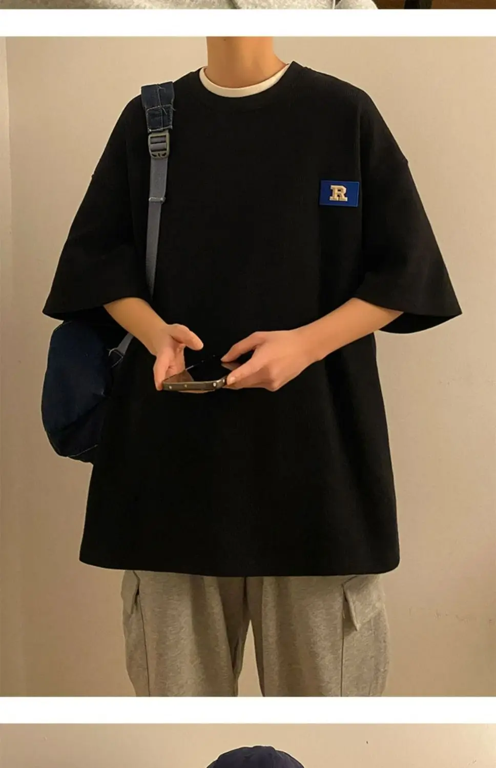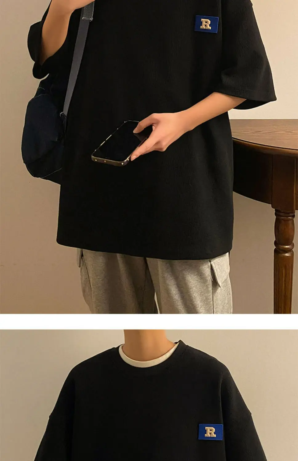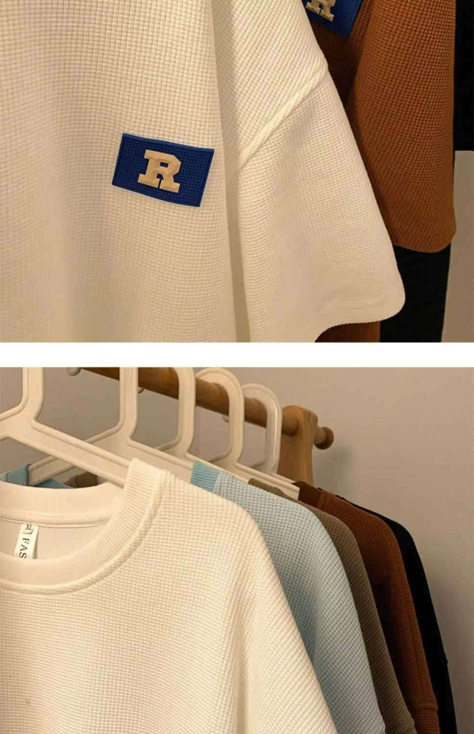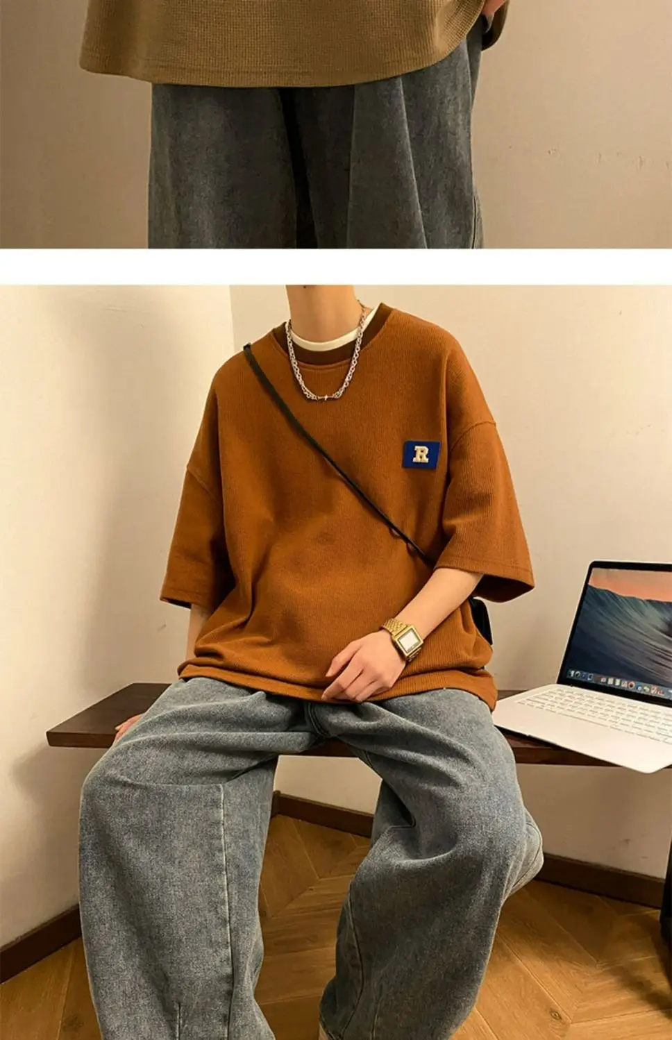 Advbridge Summer Solid Casual Loose Tess T-Shirts Men'S Top Simple Breathable Waffle Pullover Prints R Short Sleeve Sport Cool Boys