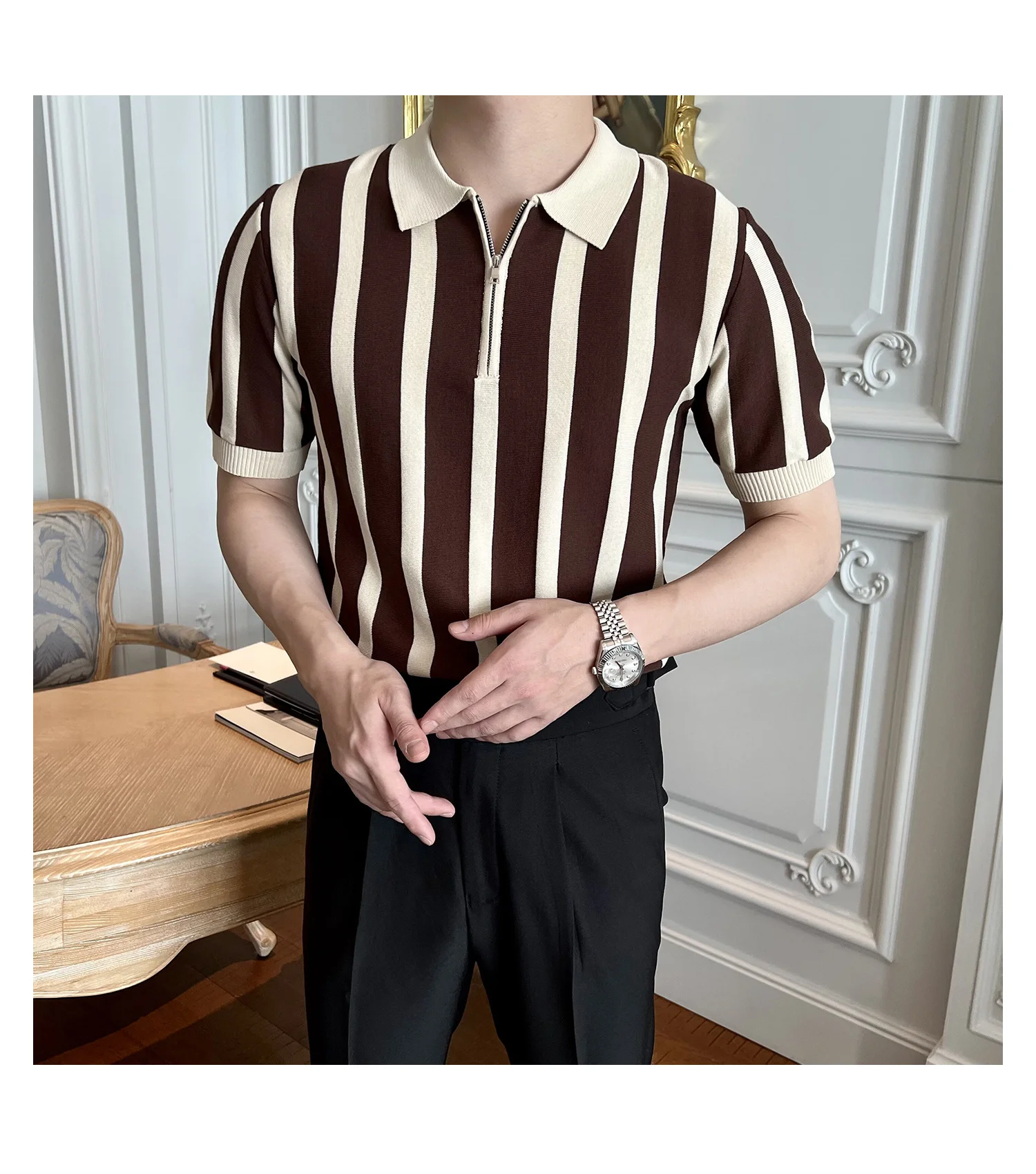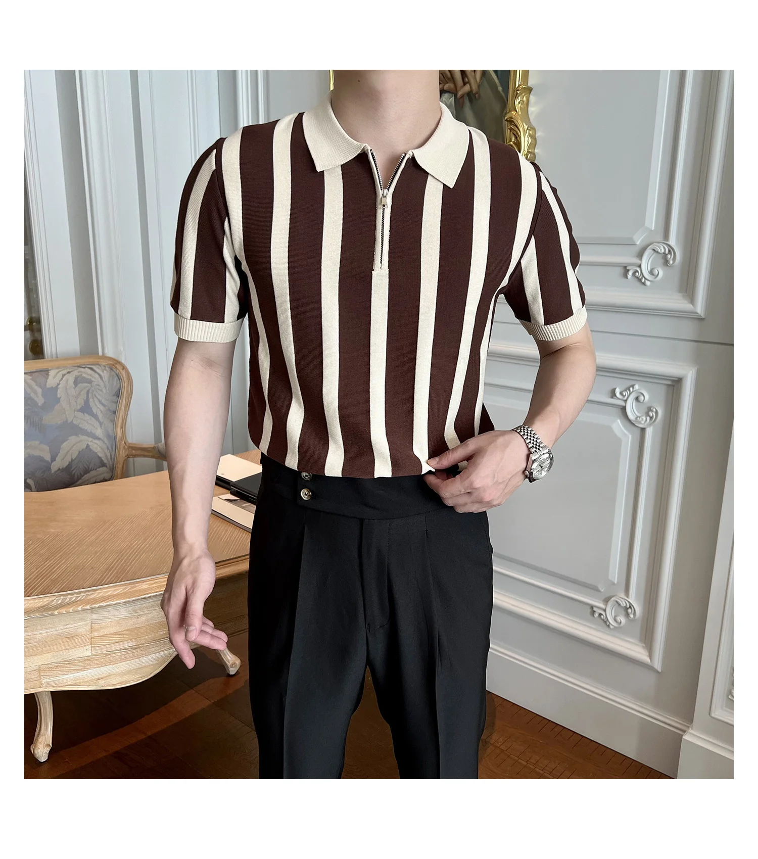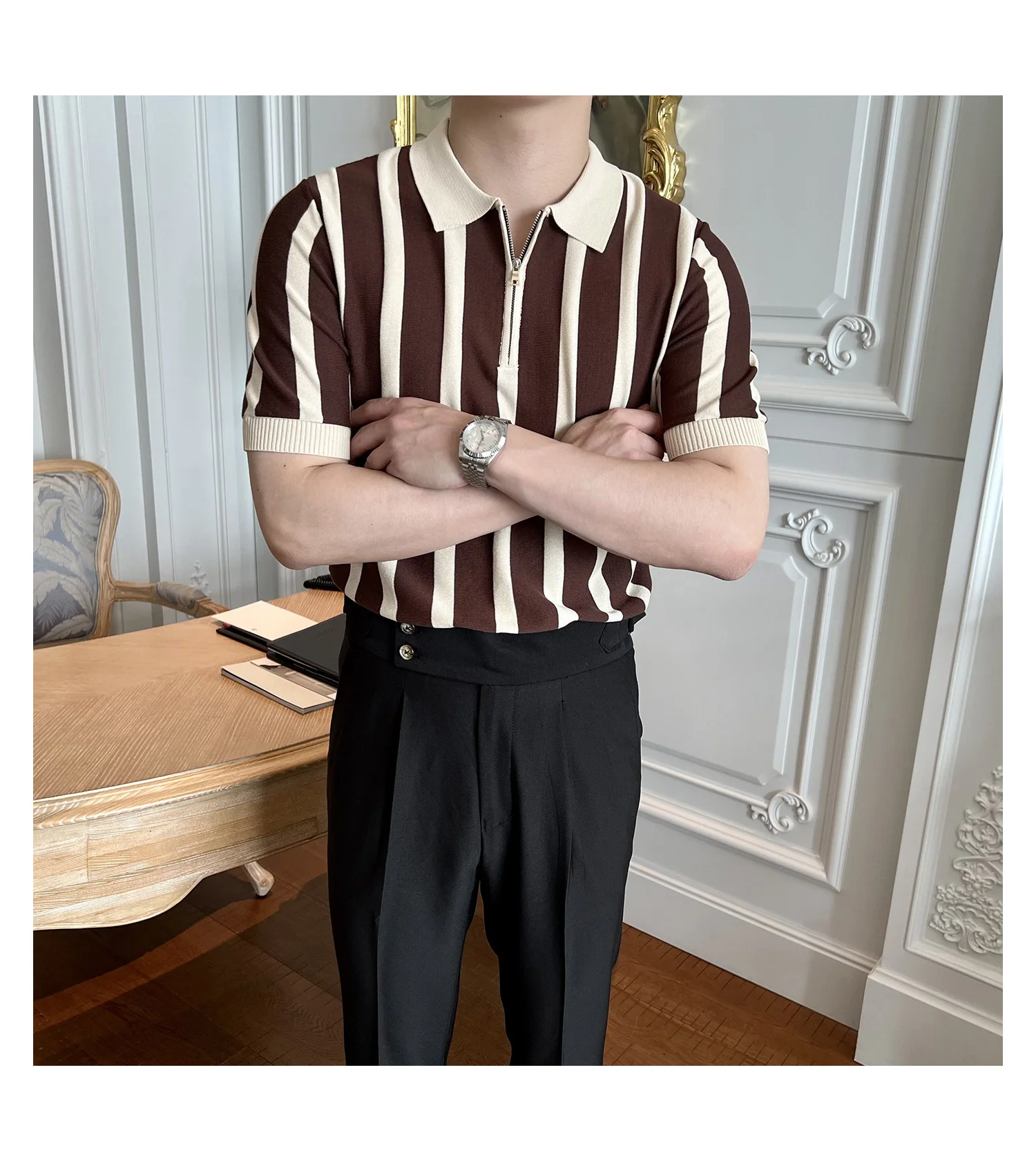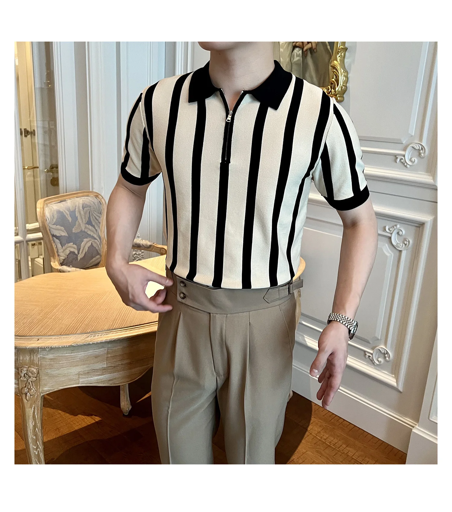 Advbridge Summer Zipper Knit Lapel T-shirt Polo Camisa Hombre British Contrasting Stripes Casual Slim Lapel Polo Men's Shirt Mannen Polo