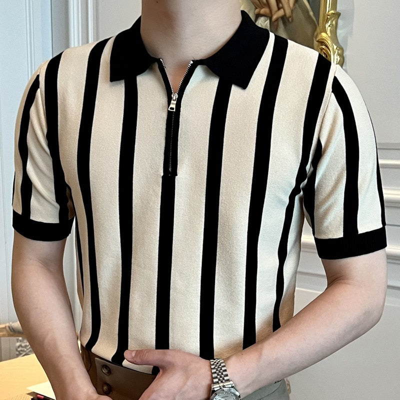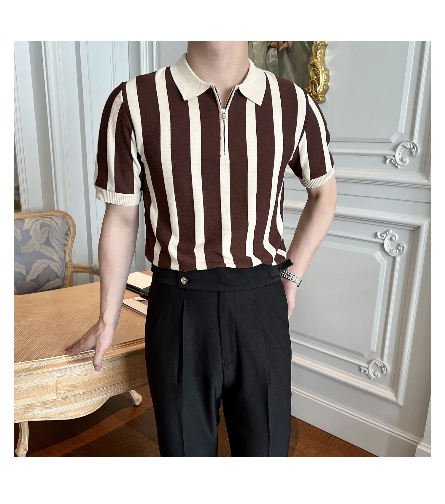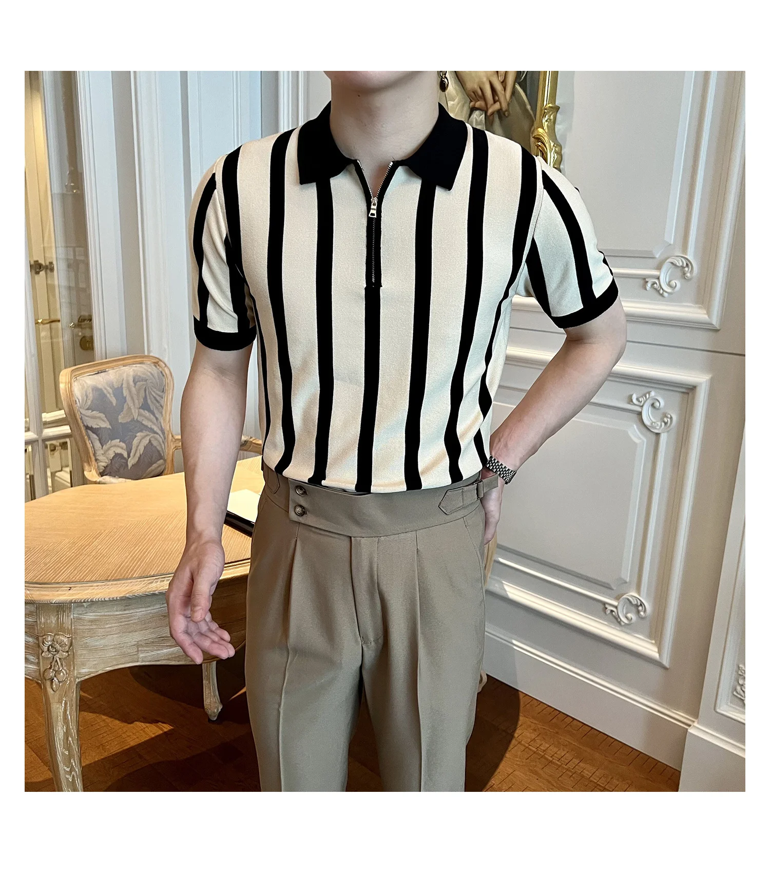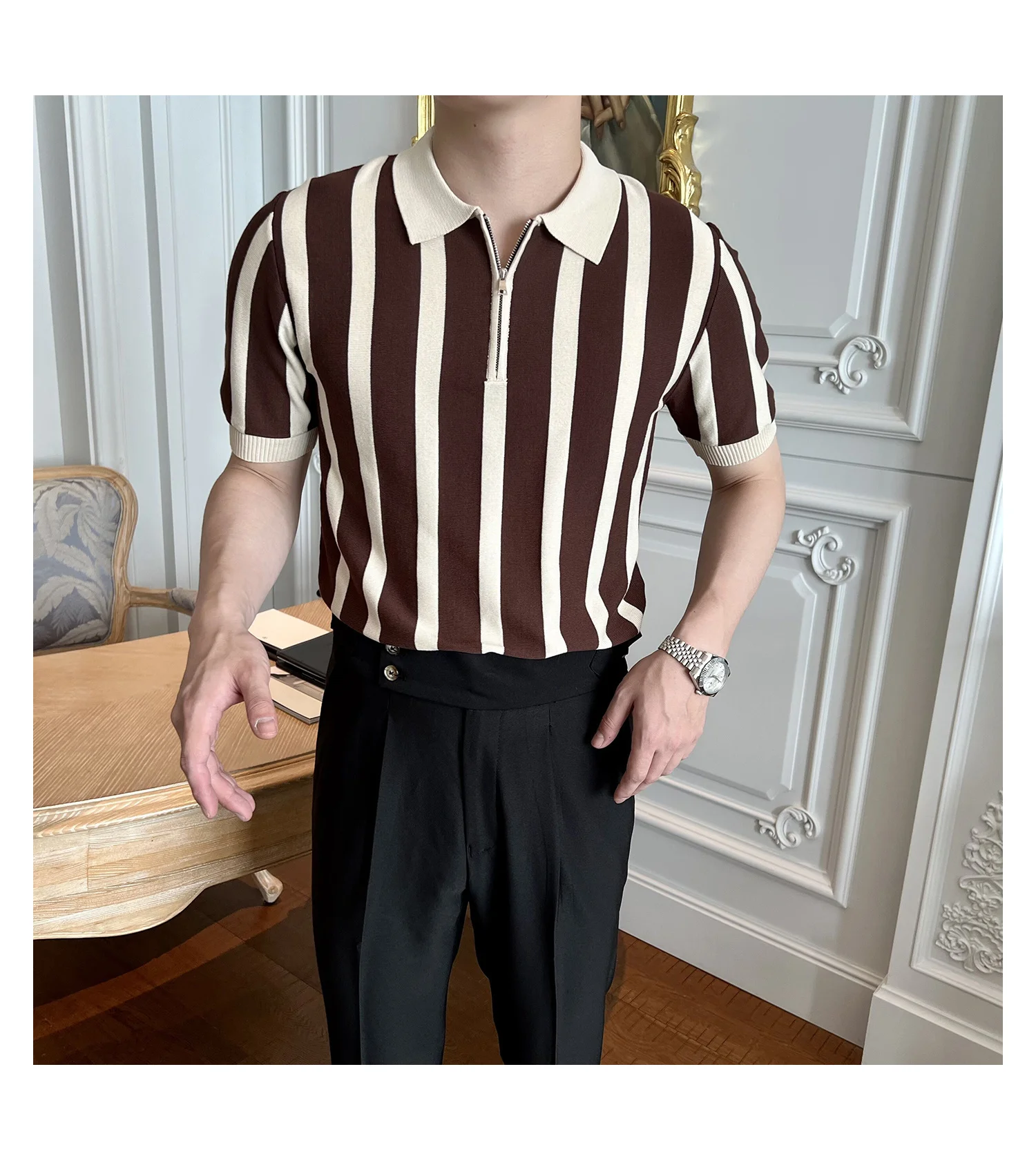 Advbridge Summer Zipper Knit Lapel T-shirt Polo Camisa Hombre British Contrasting Stripes Casual Slim Lapel Polo Men's Shirt Mannen Polo