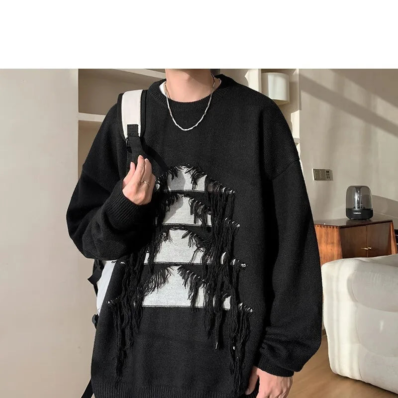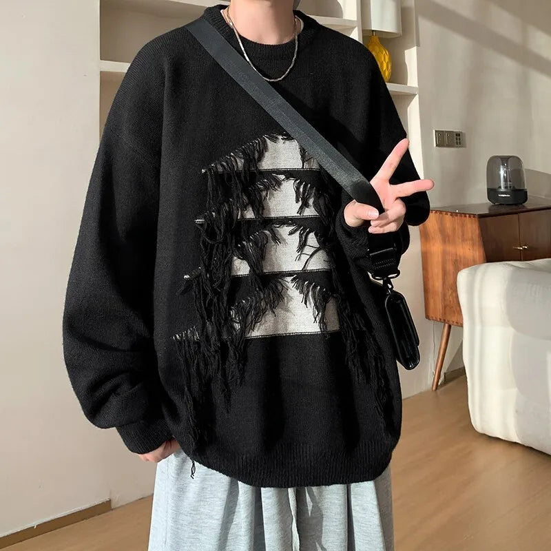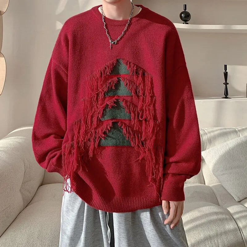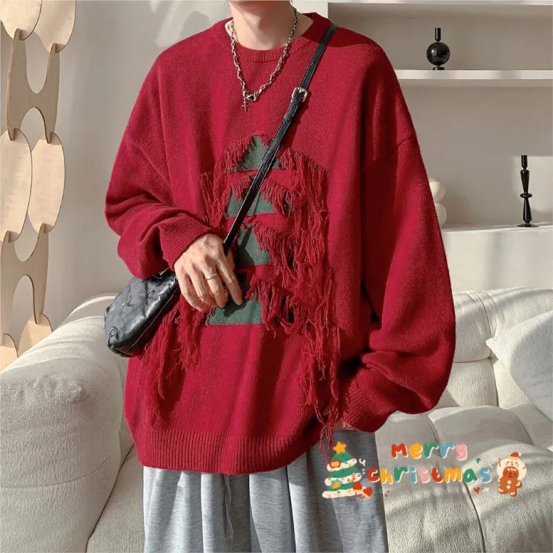 Advbridge Sweater man Vintage Christmas Tree Tassels Sweater Men Long Sleeve Fashion Loose Knitted Pullover Couples Unisex Streetwear