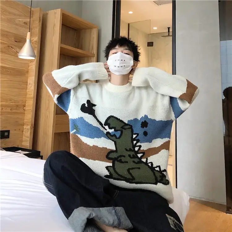 Advbridge Sweater Men Y2k Streetwear Retro Flame Pattern Hip Hop Autumn New Pull Over Spandex O-neck Oversize Couple Casual Men Sweaters