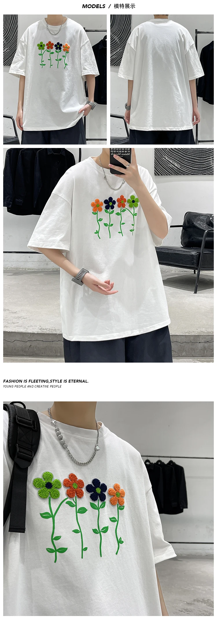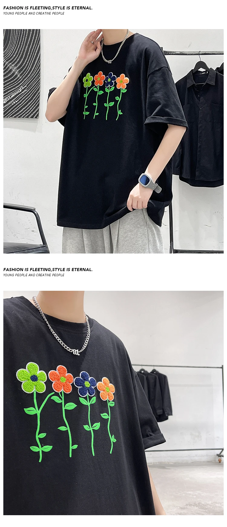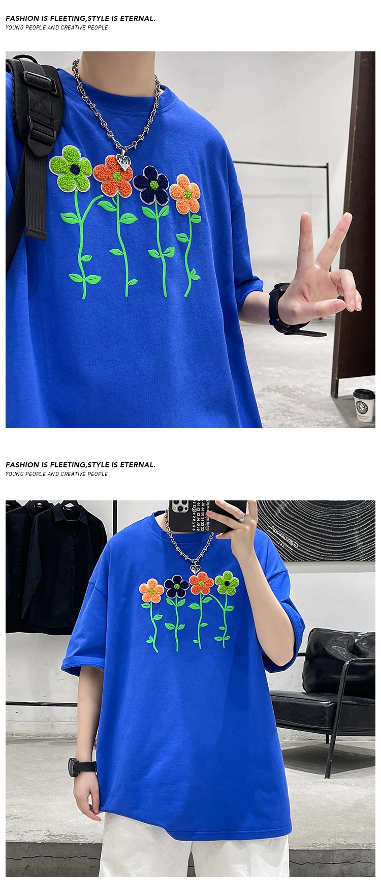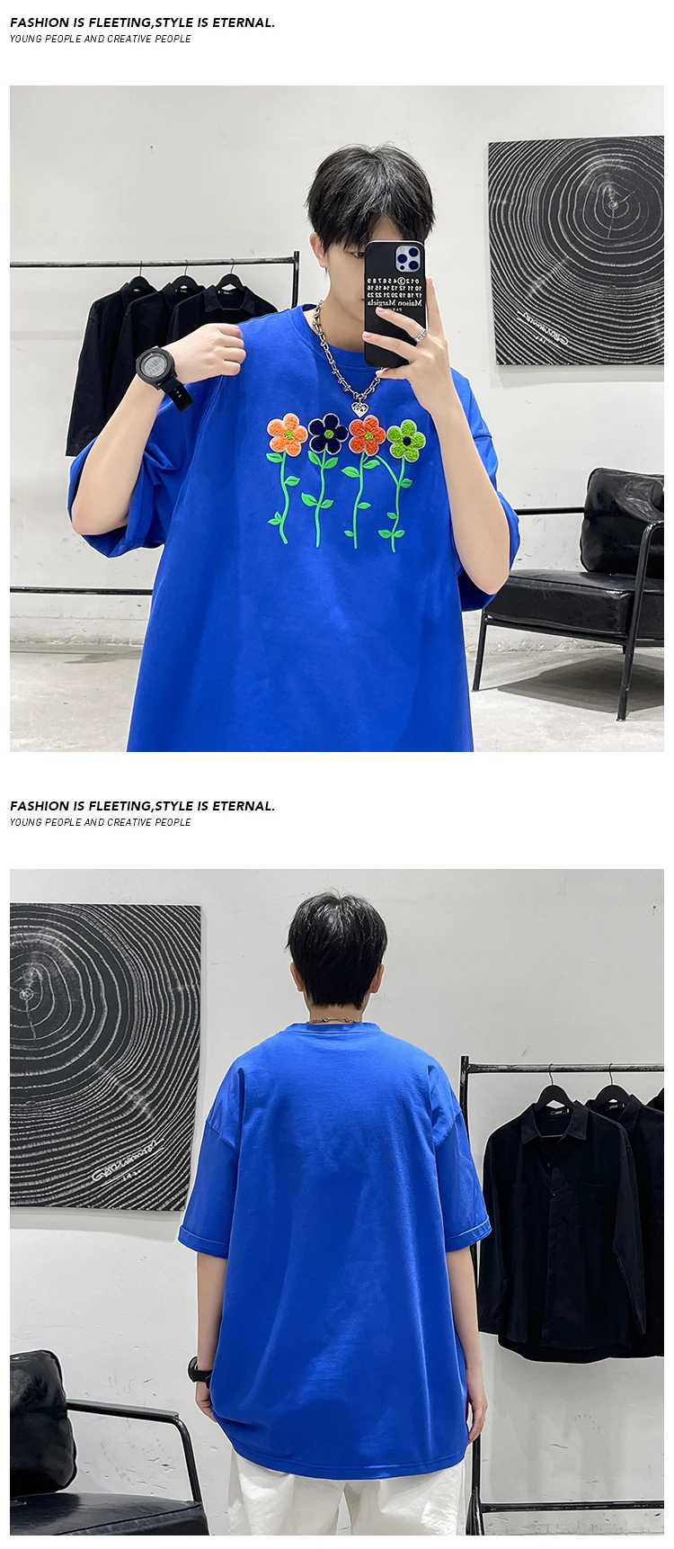 Advbridge T Shirt Mens Fashion Embroidery Printed Tshirt Men Streetwear Tees Summer Japanese Casual Oversized Tops Black/White/Blue