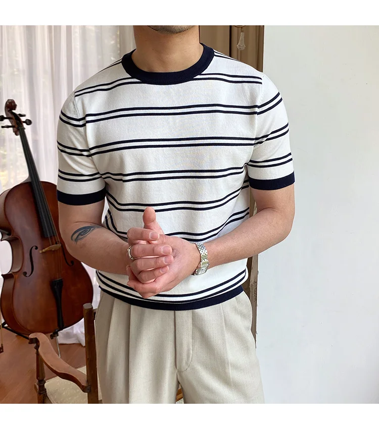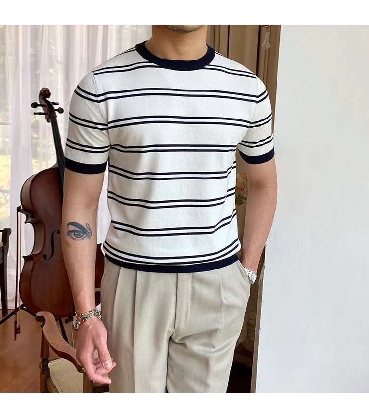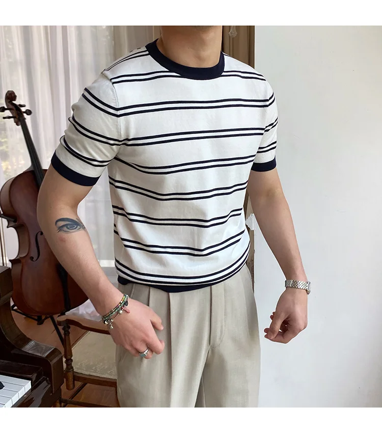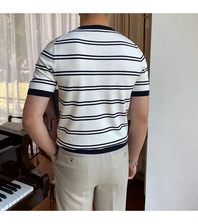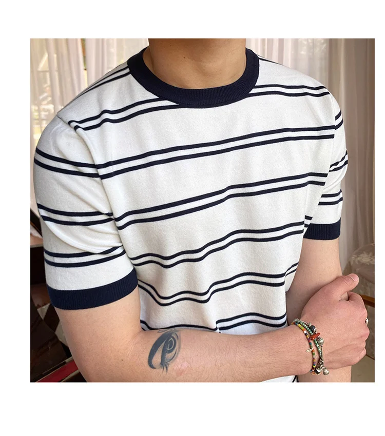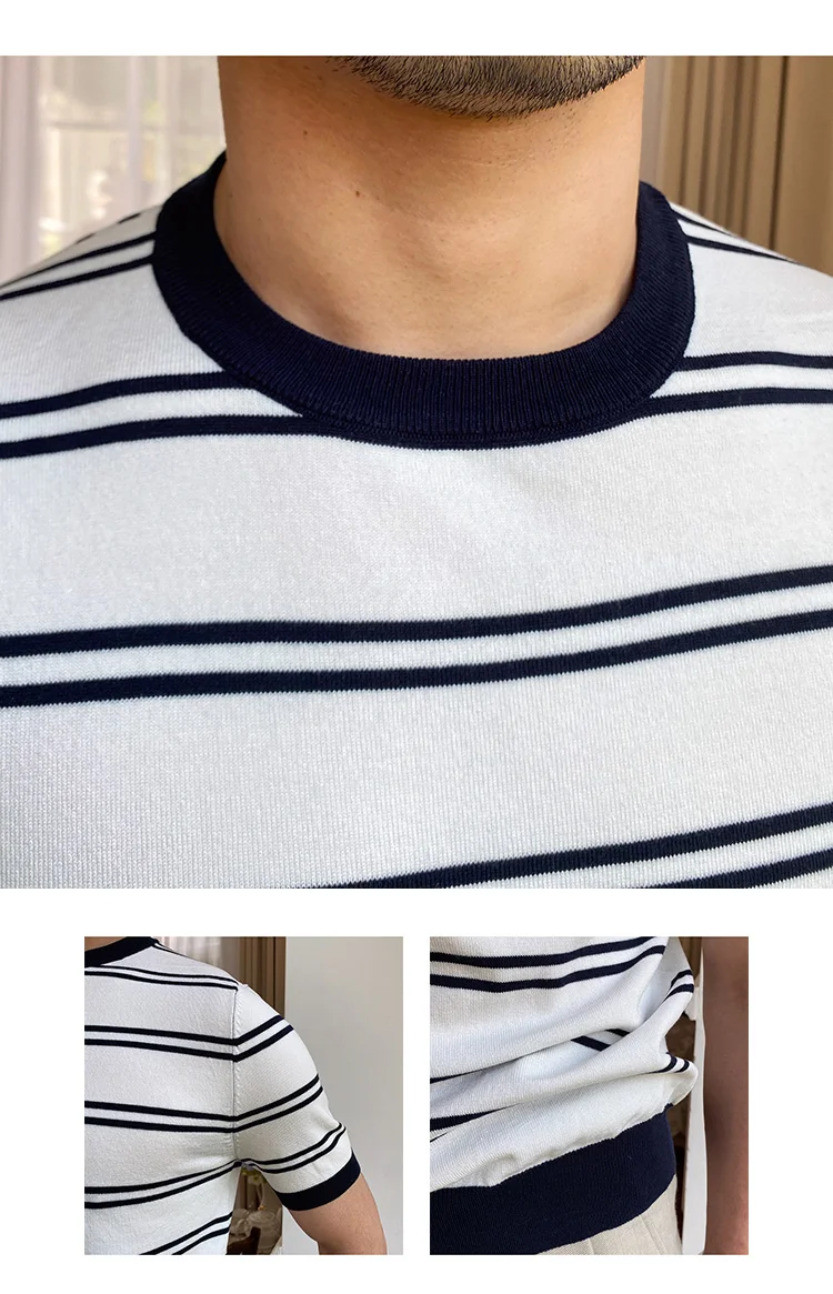 Advbridge Trend Splicing Striped Tee Shirt Men Short Sleeve Business Office Crew Neck Summer Breathable Tshirt Camiseta Manga Corta Hombre