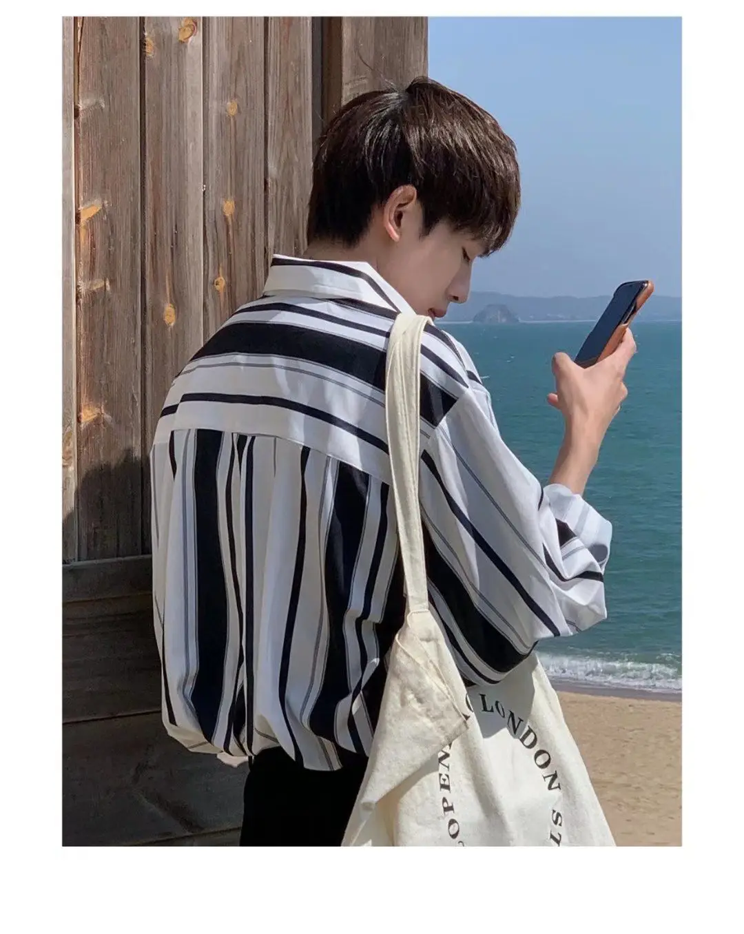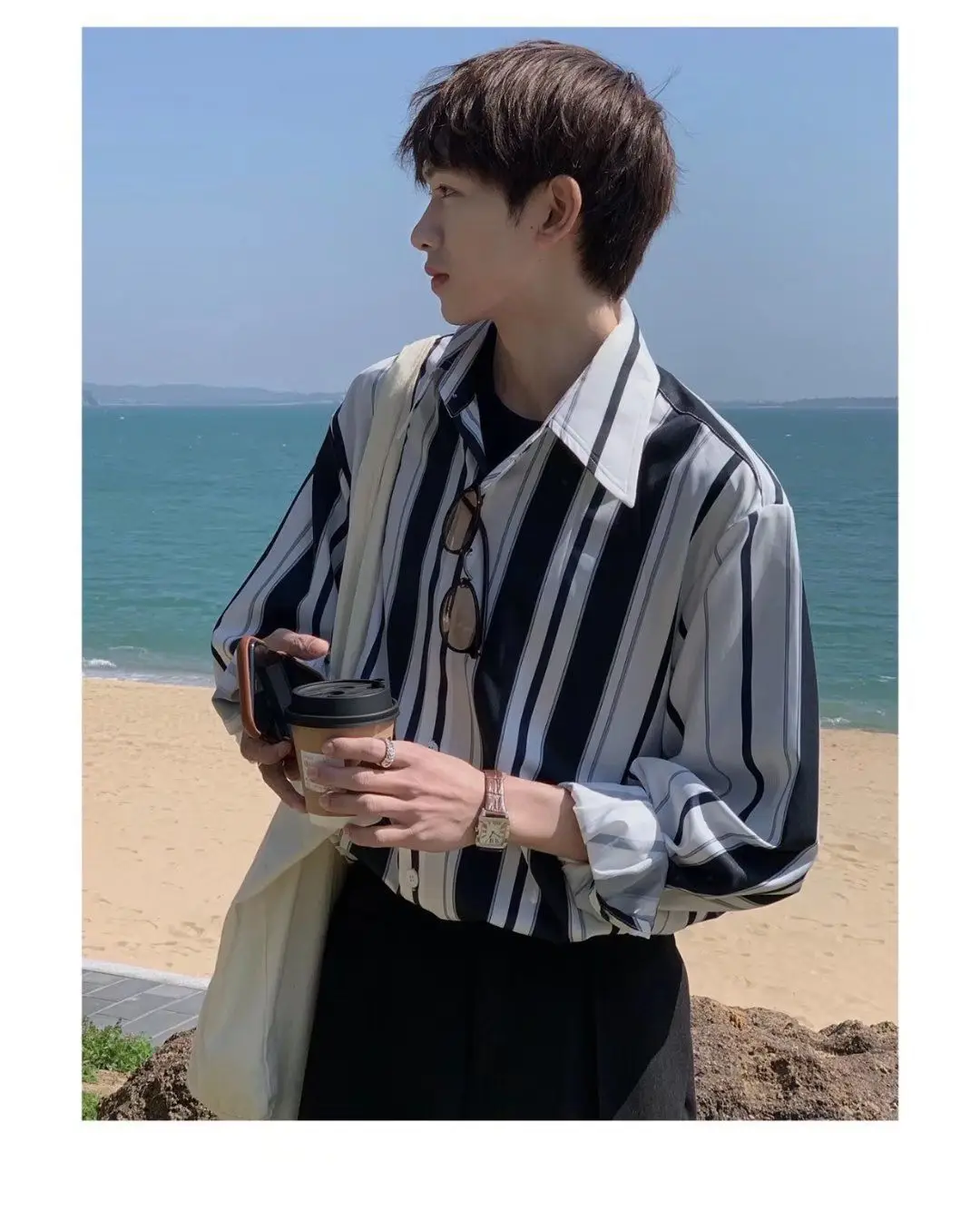 Advbridge Vertical Stripe Shirts Male Spring Summer Casual Long Short Sleeve Thin Loose Korean Fashion Men's Clothing Streetwear Tops H41