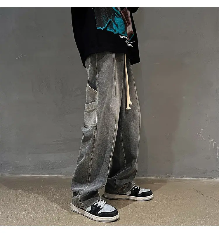 Advbridge Vintage Cargo Pants Men Baggy Hong Kong Style Jeans Straight Y2k Pants Multi-pocket Streetwear Man Clothing Fashion Trousers New