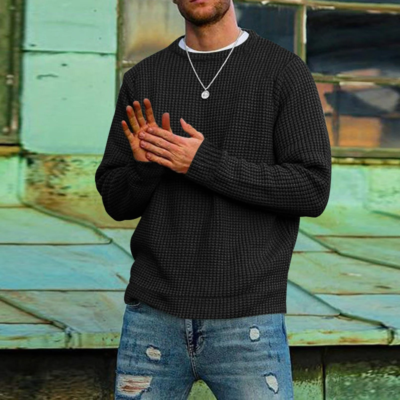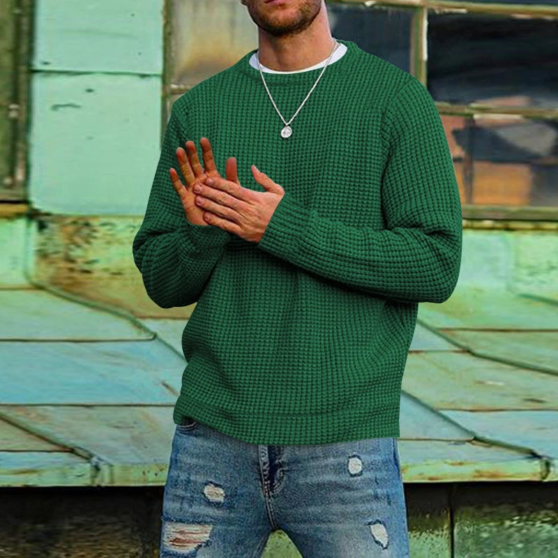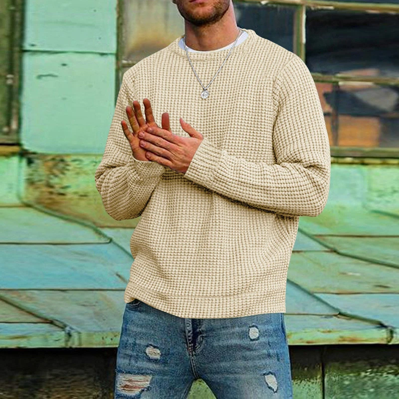 Advbridge Vintage Winter Solid Knitted Tops Men Clothing  Autumn Waffle Long Sleeve Pullover Sweatshirts Fashion O-Neck Shirts T-Shirt