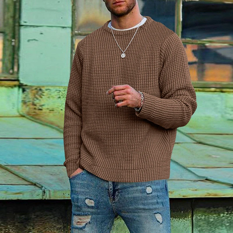 Advbridge Vintage Winter Solid Knitted Tops Men Clothing Autumn Waffle Long Sleeve Pullover Sweatshirts Fashion O-Neck Shirts T-Shirt