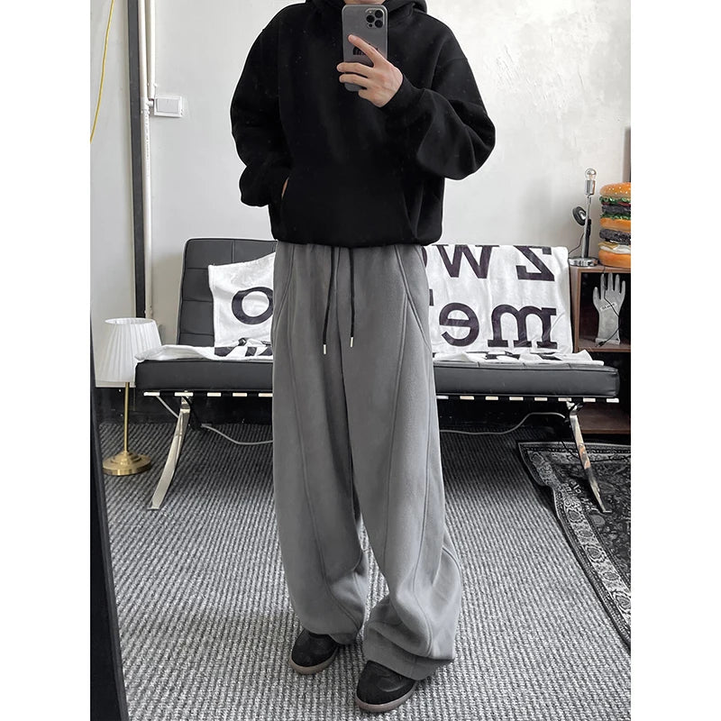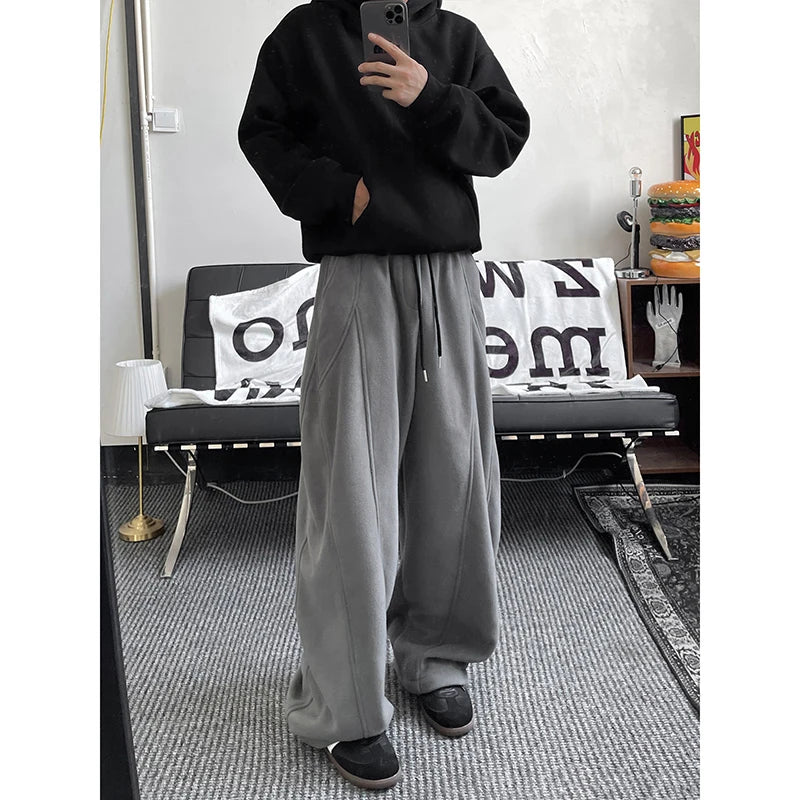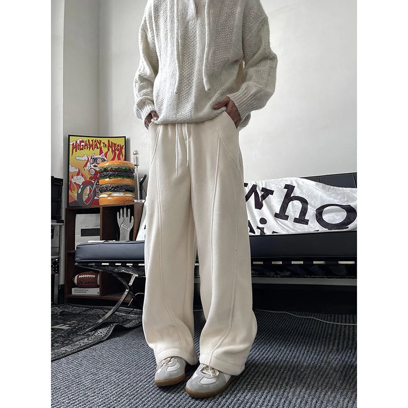 ADVBRIDGE - Winter Thicken Beige Pants Men Warm Fashion Thick Casual Pants Men Streetwear Korean Loose Wide Leg Pants Mens Trousers M-3XL