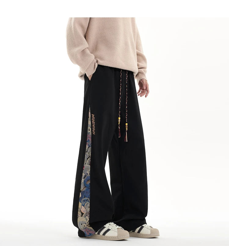 Embroidery Patchwork Sport Pants Mopping Trousers Spring New Fashion Casual Pants Men Clothing Oversized Harajuku Joggers Male