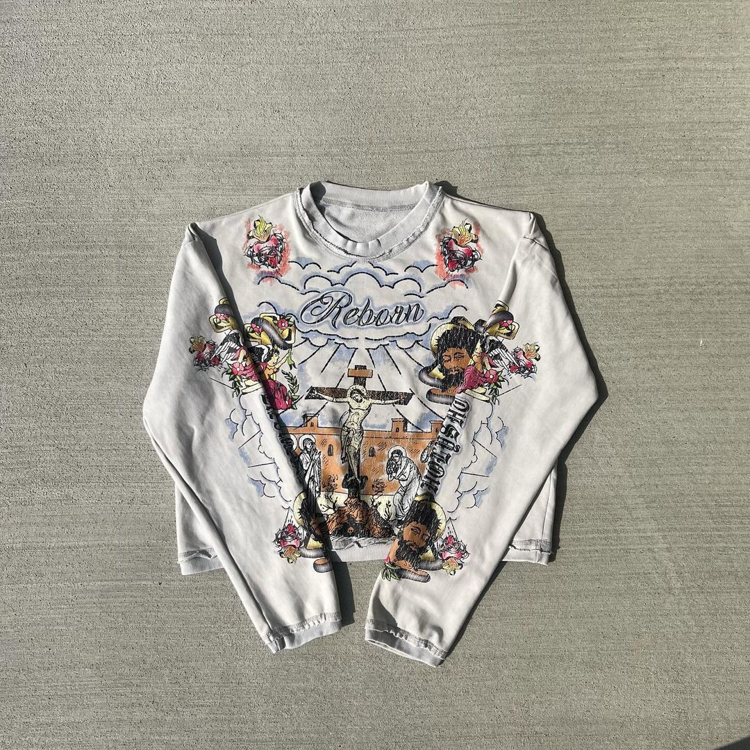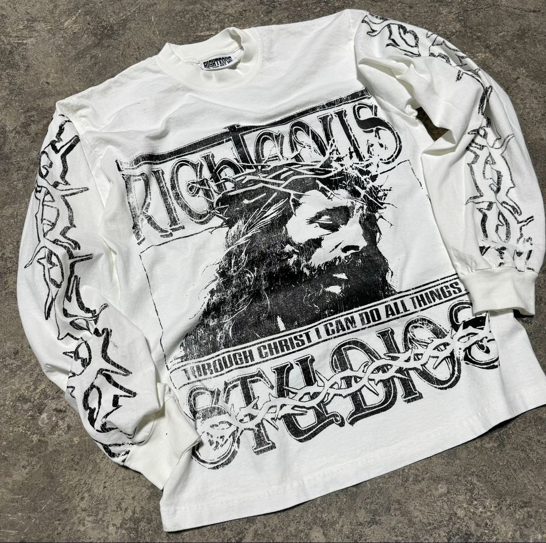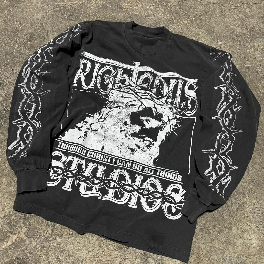 Advbridge Gothic Punk Style Graphic Print Long-sleeved Y2K Harajuku Street Trend Oversized T-shirt Men American Retro Casual Cotton Top