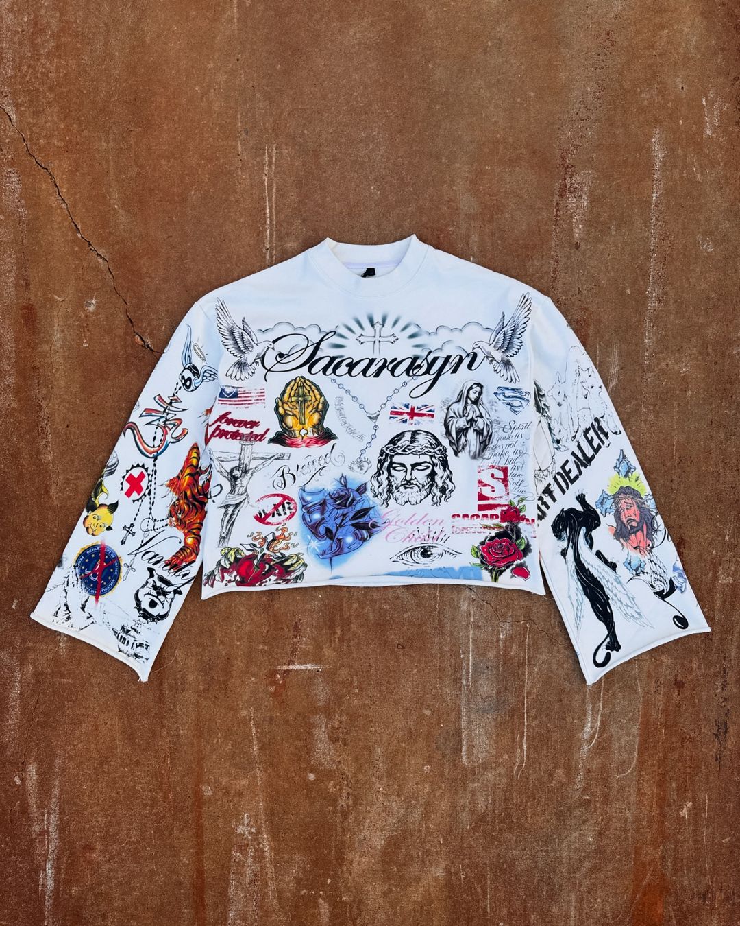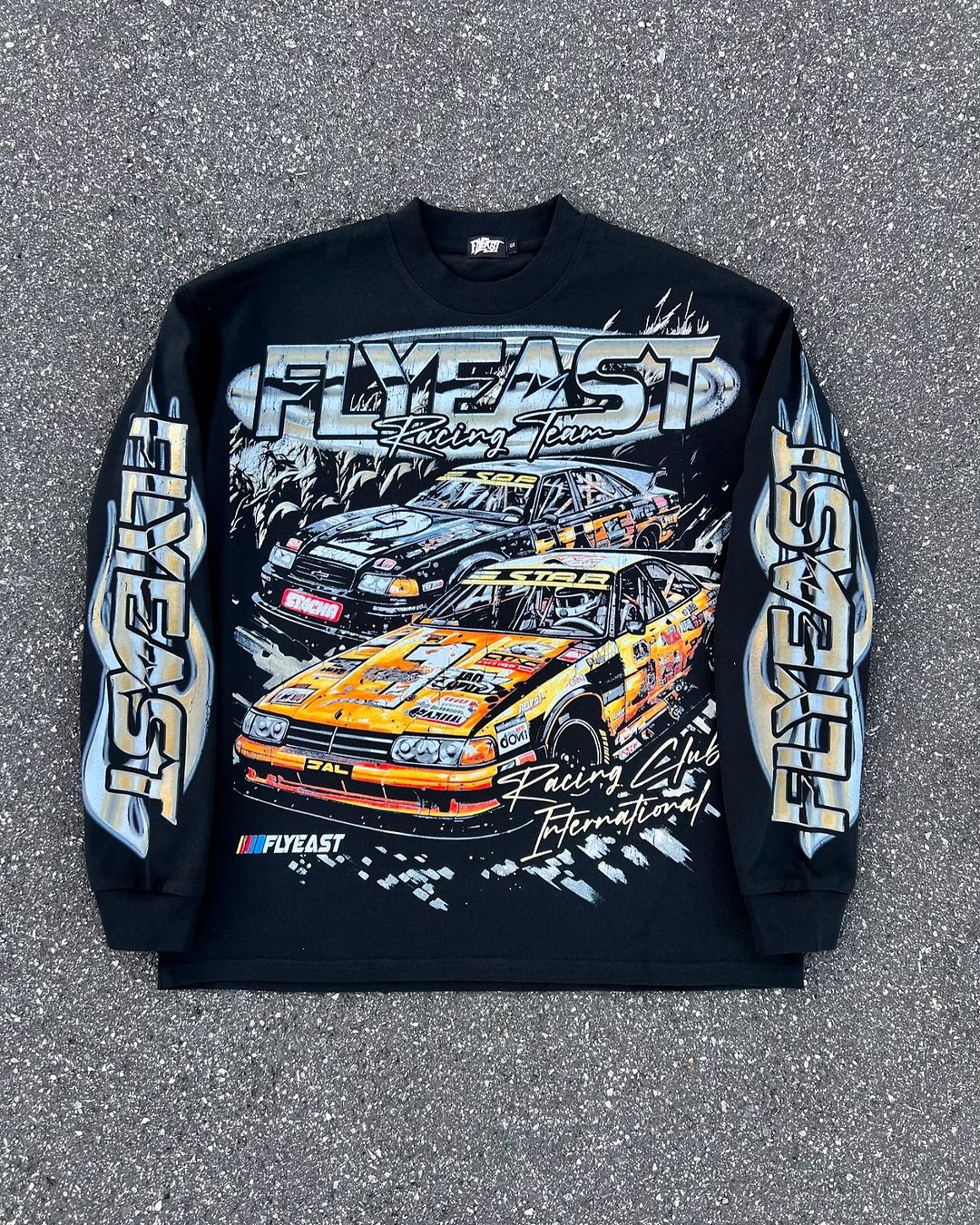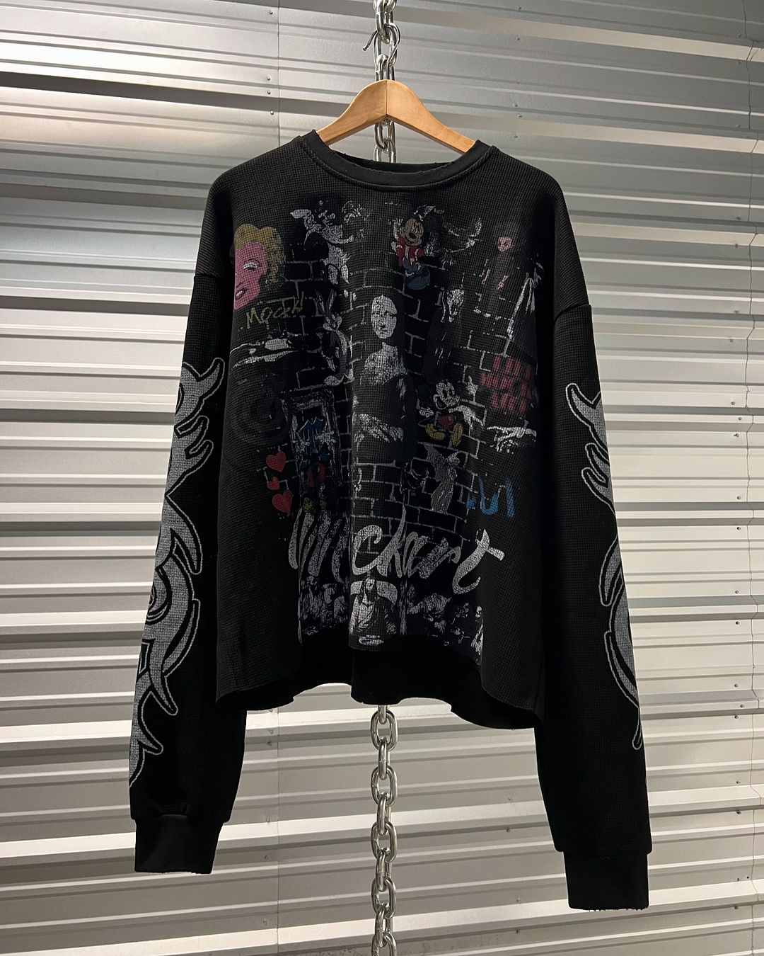 Advbridge Gothic Punk Style Graphic Print Long-sleeved Y2K Harajuku Street Trend Oversized T-shirt Men American Retro Casual Cotton Top