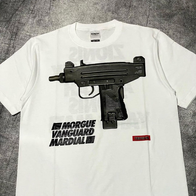 Advbridge Hip-hop Street Fashion Brand Clothing Gothic Punk Dark UZI Printed Oversized T-shirt American Retro Pure Cotton Casual Tops Men