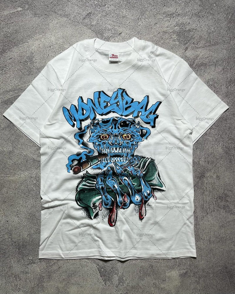 Advbridge Hip-hop Street Fashion Brand Clothing Y2K Gothic Punk Skull Print Oversized T-shirt Harajuku Retro Casual Loose Cotton Men's Top