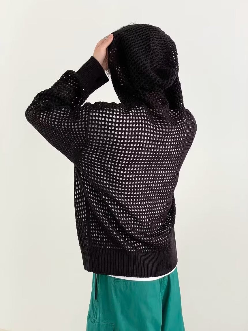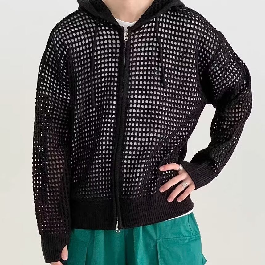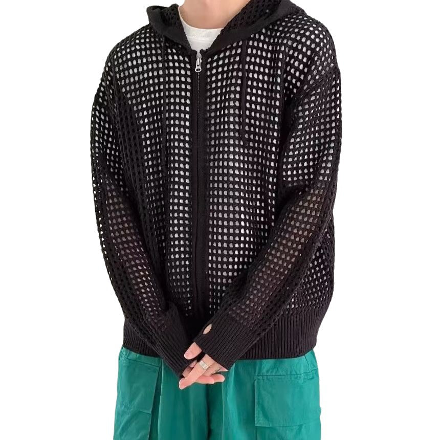 Advbridge Hollow Out Knitted Hoodie Mens Jacket Loose Hooded Cardigan Spring Autumn Fashion Casual Knit Zip-Up Sweater Tops Streetwear