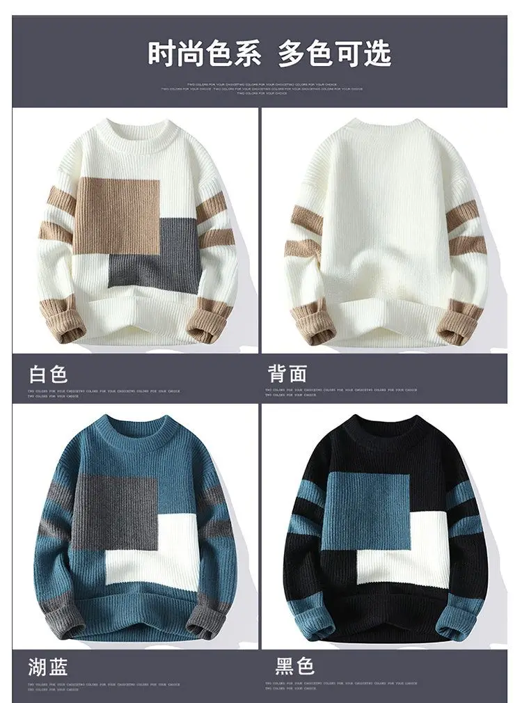 Advbridge Autumn and winter long-sleeved crew neck sweater men's Korean version slim-fit teen handsome men's knitted sweater top tide