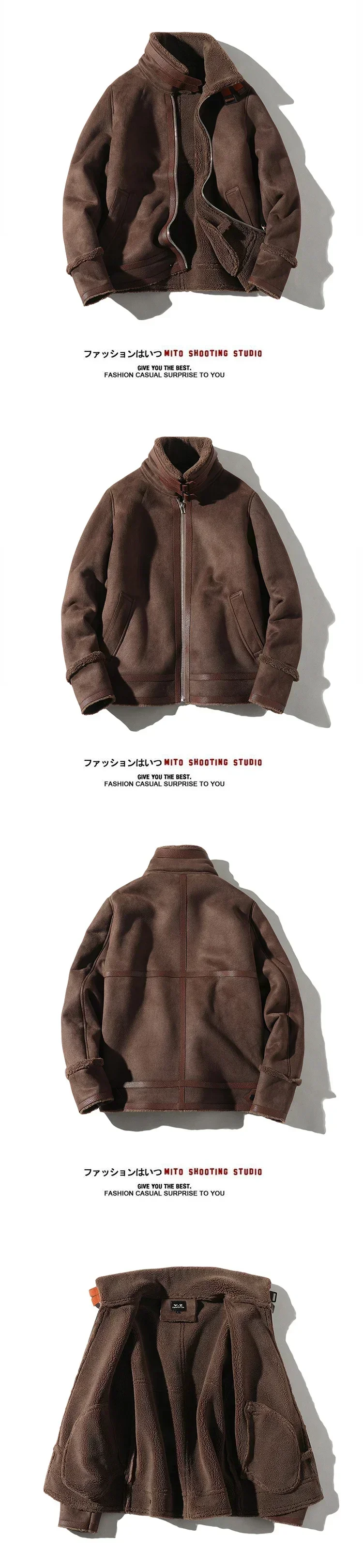 Advbridge PU Jacket Men's Autumn Winter Thickening High-end Brand Leather Jacket / Plus Velvet Thickening Fashion Large Size Khaki Man
