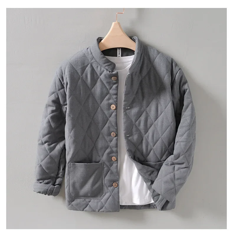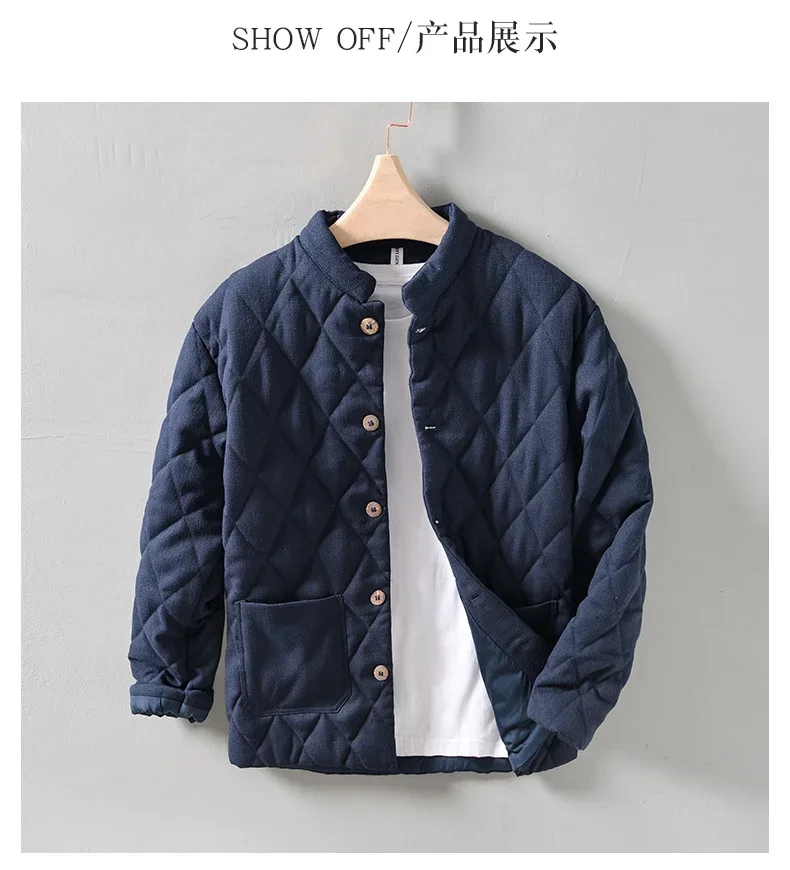 Advbridge Winter Jackets for Men Daily Casual Thicken Clothes Solid Stand Collar Button Parkas Men Chinese Retro Traditional Male Coats