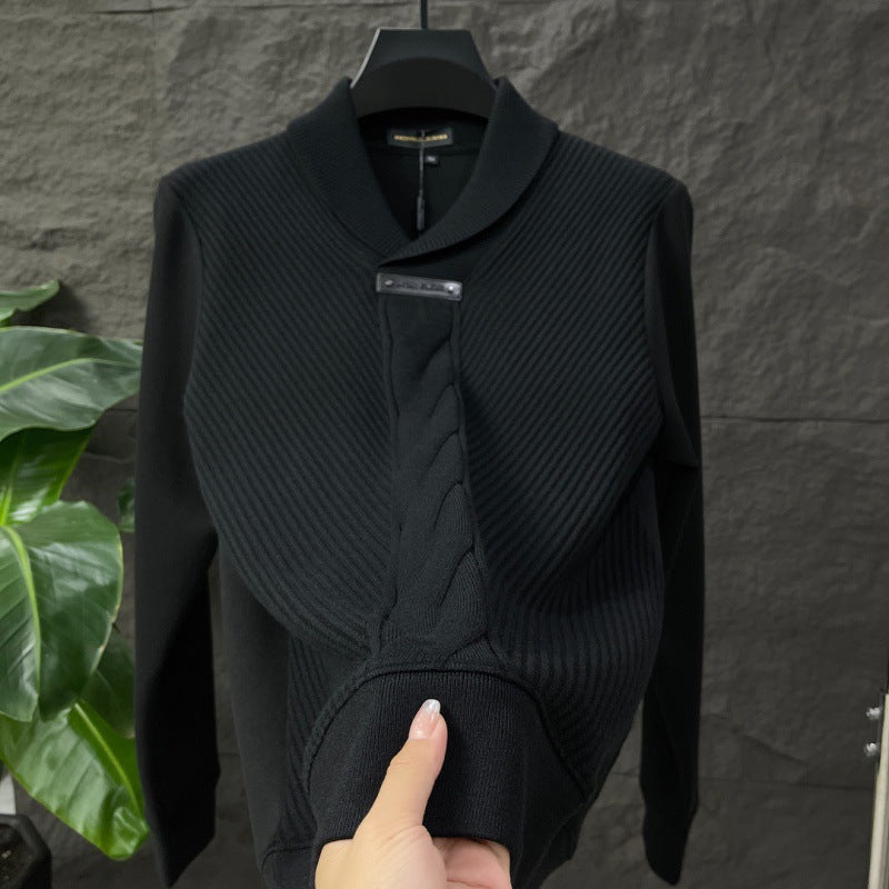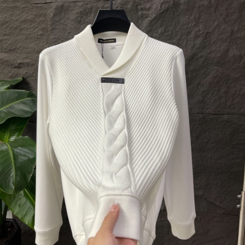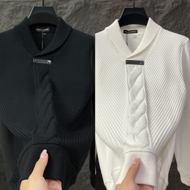 Advbridge Luxury Twill Jacquard Knitted Sweatshirt Men Autumn Winter Lapel Sweater Fashion Brand Business Casual Cardigan Versatile Hoodie