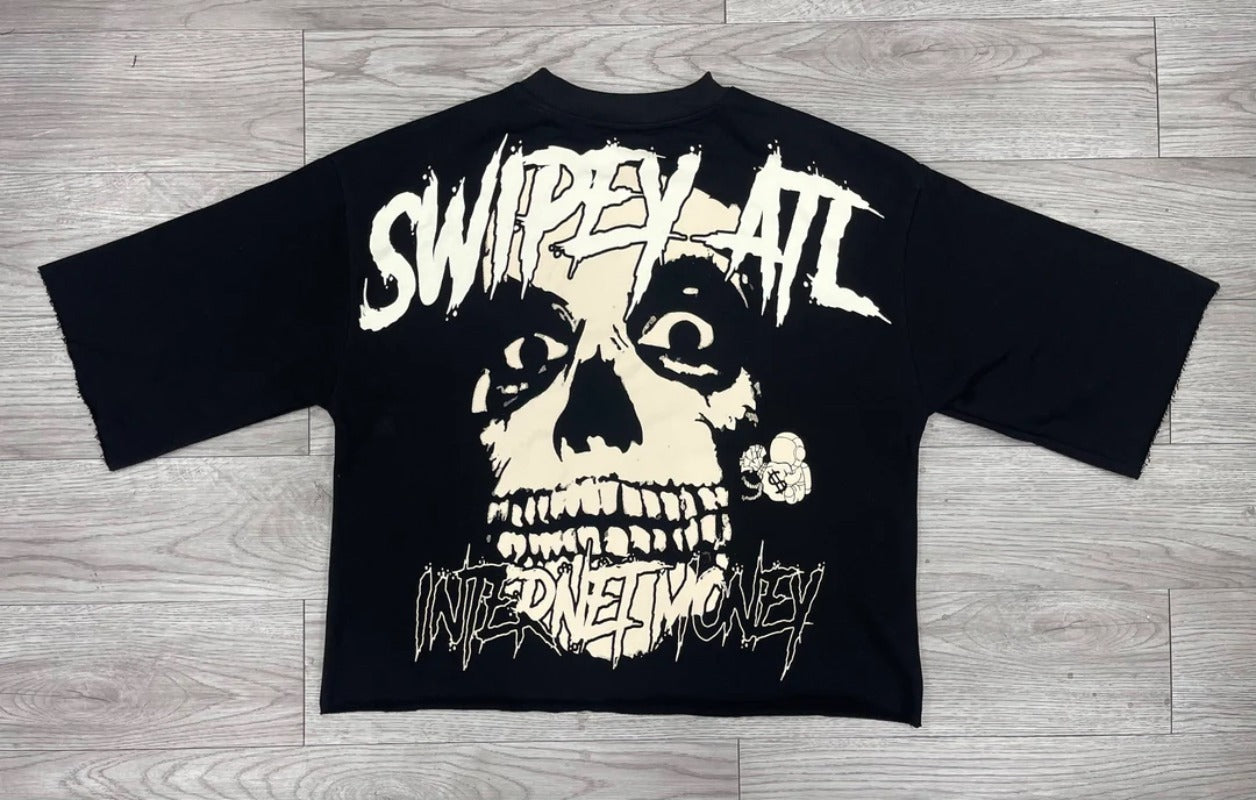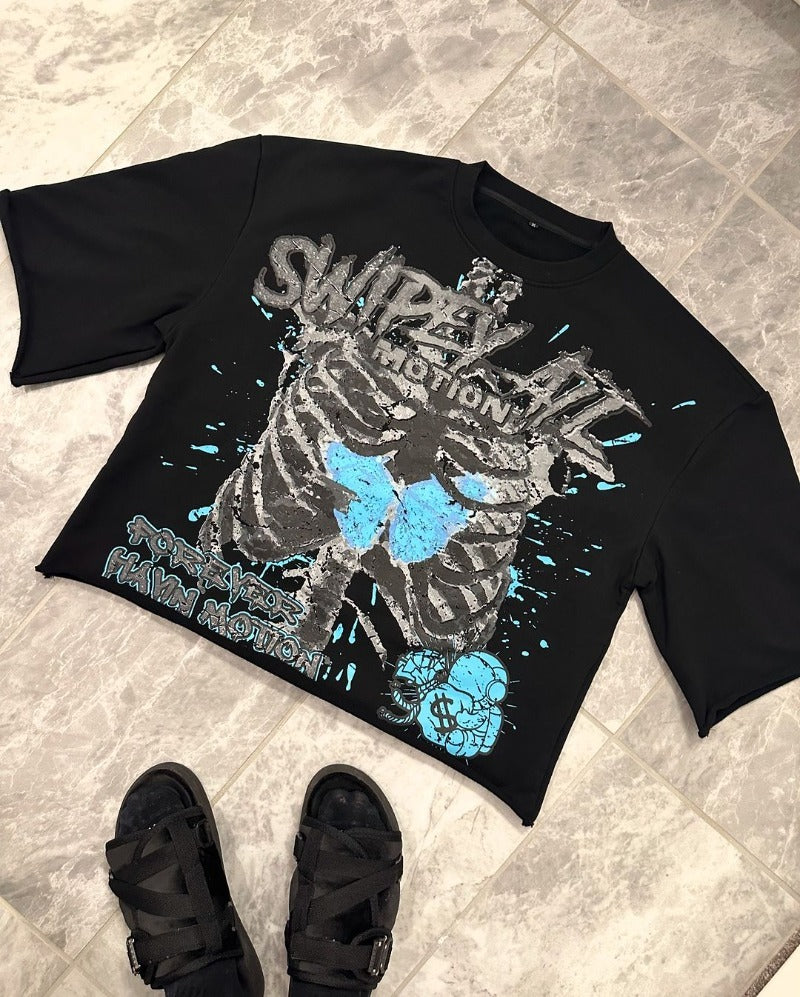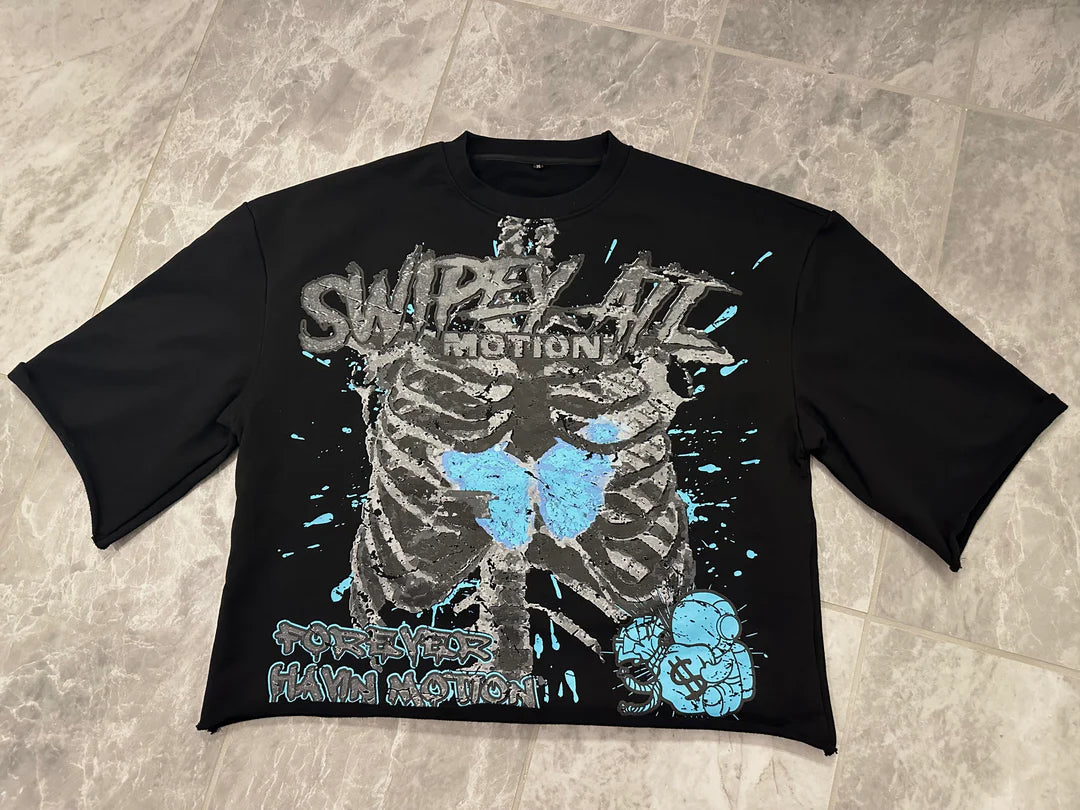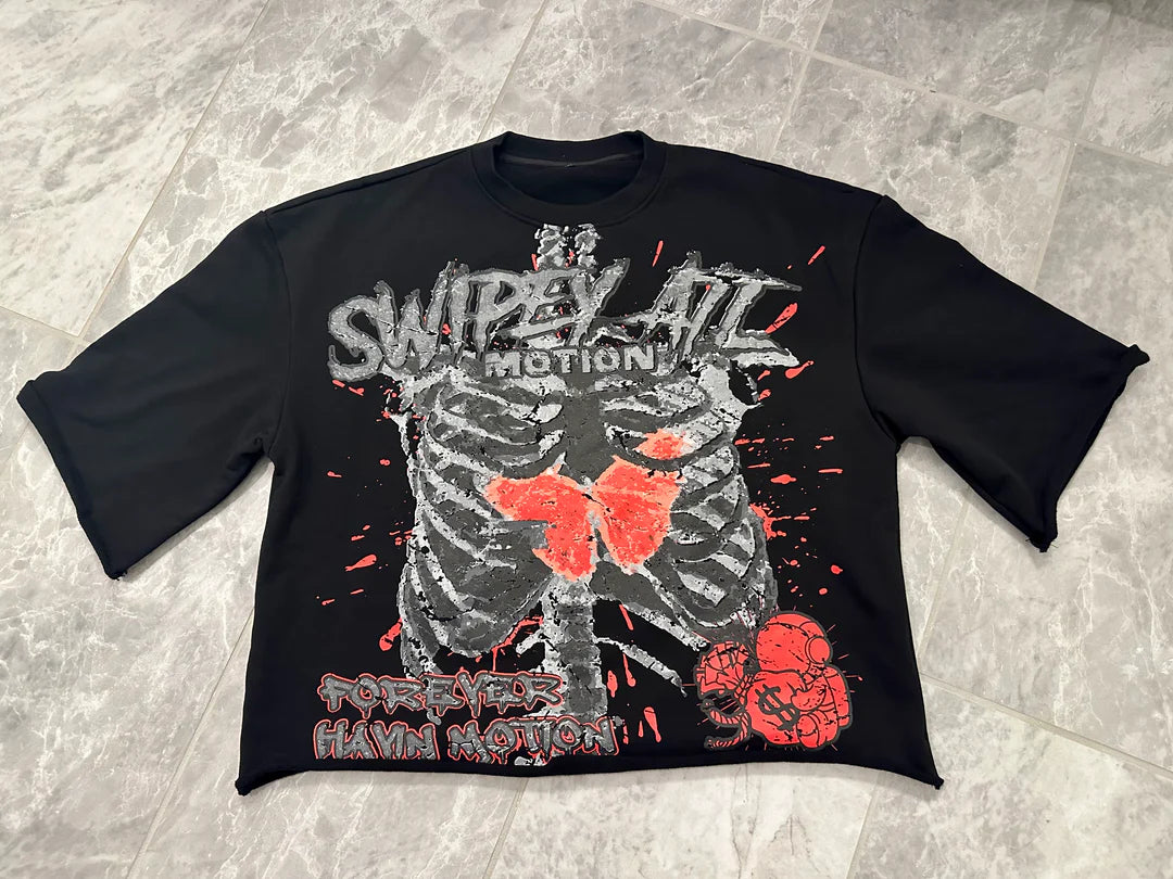 Advbridge New High Street Retro Rock Skull Print Oversized T-shirt Harajuku Gothic Punk Style Graphic Top Men Y2K Trendy Brand Streetwear