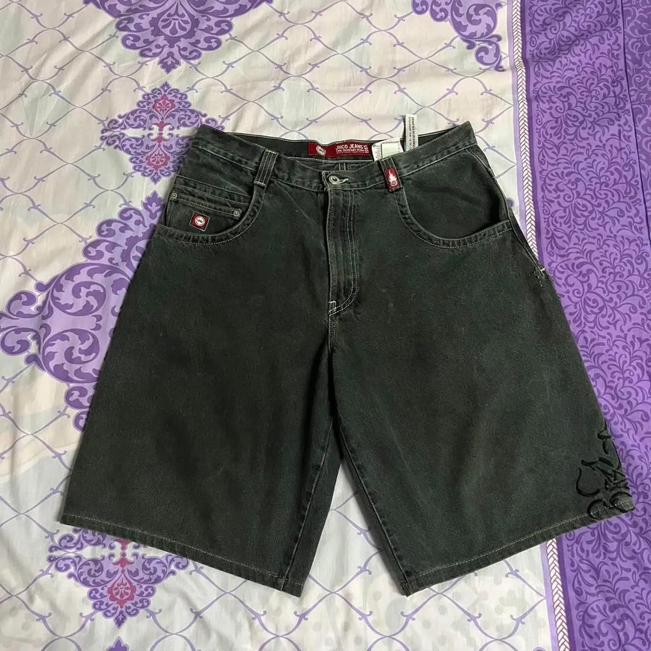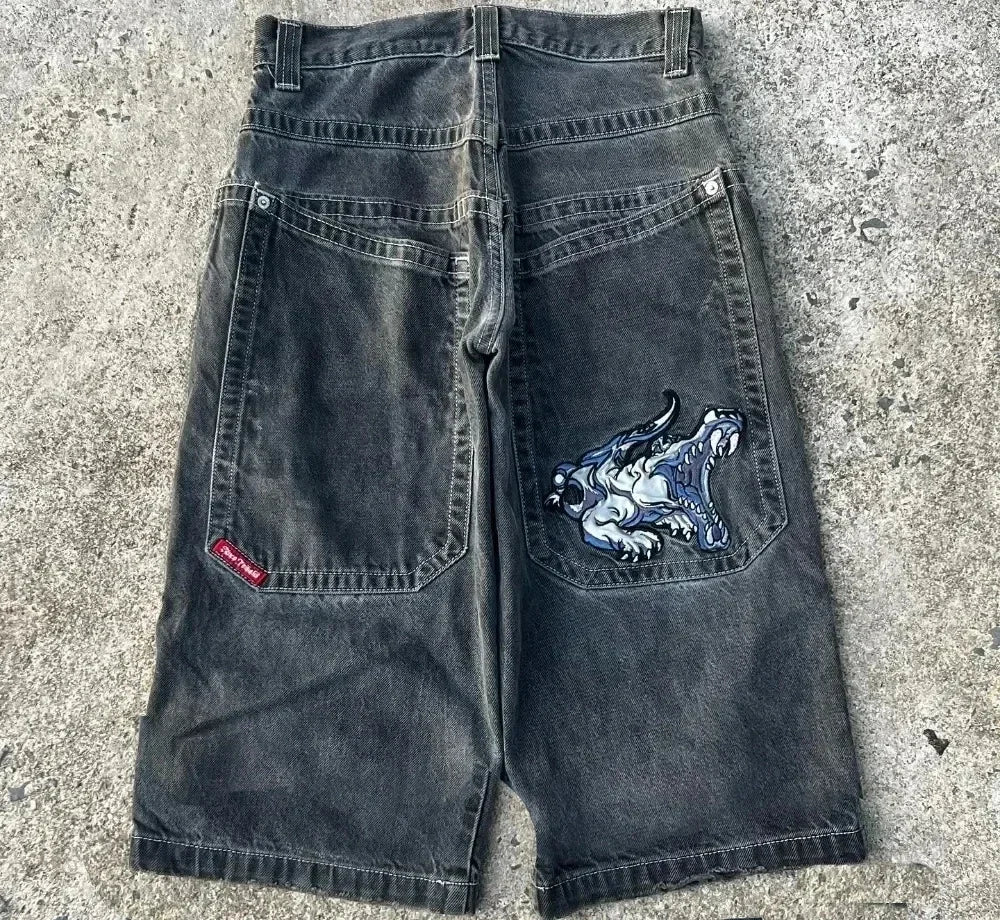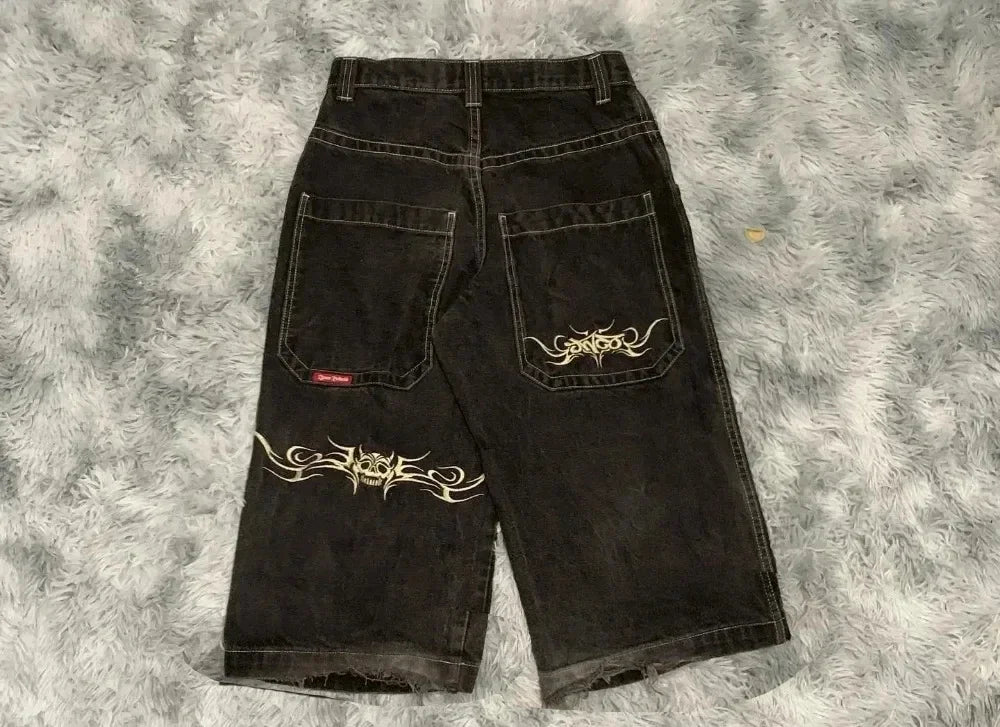 Streetwear Shorts Y2K Pants Hip Hop Retro Embroidery Black Denim Gym Baggy Jeans Shorts New Mens Basketball Shorts