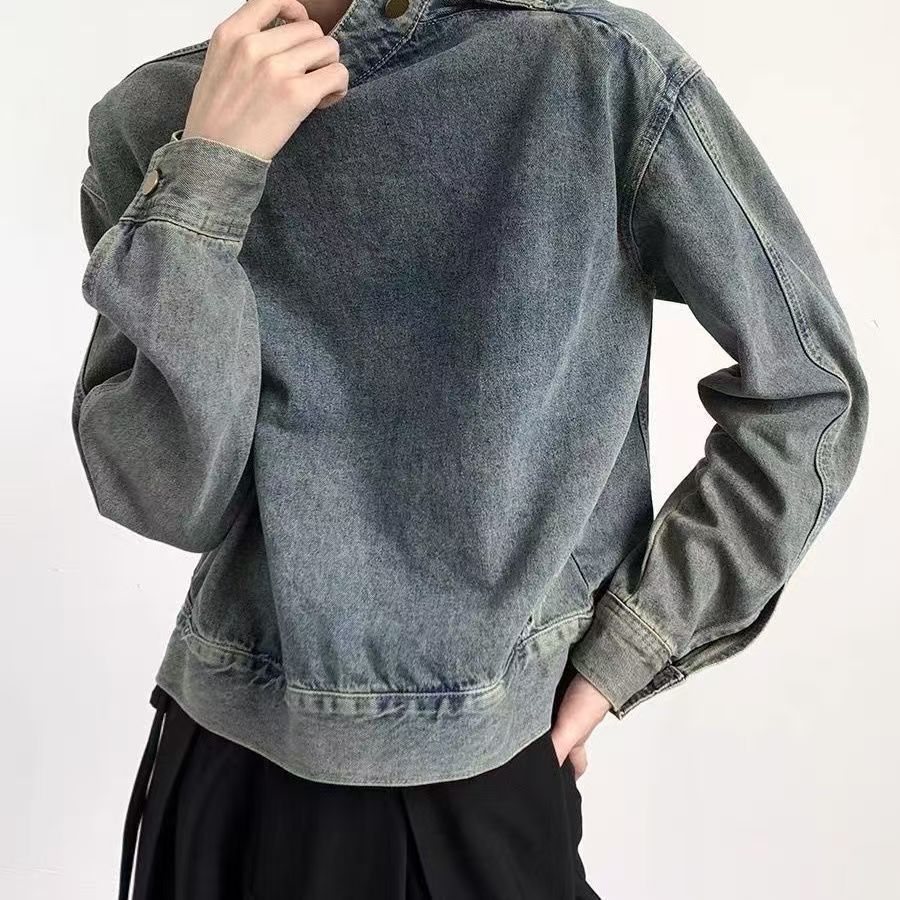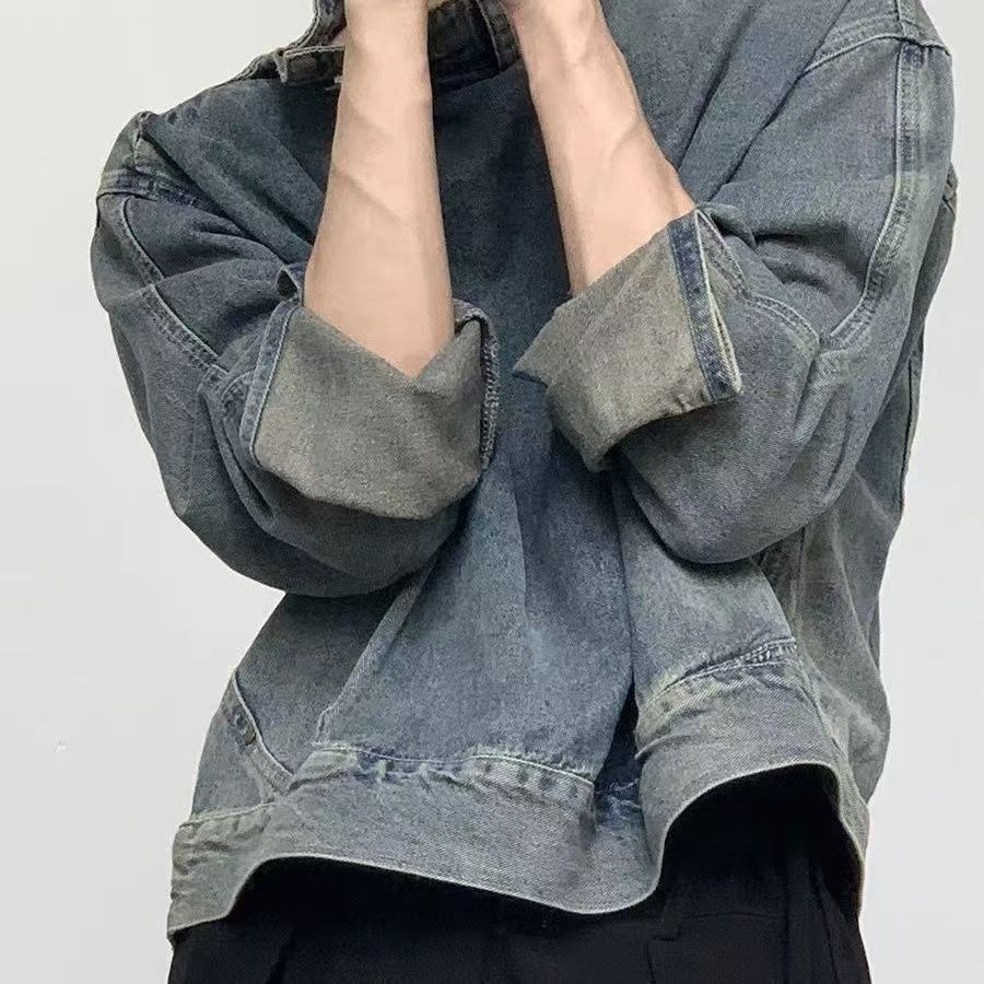 Advbridge Vintage Distressed Men's Denim Sweatshirt Release High Collar Luxury Design Tops Pullover Autumn Winter Harajuku Unisex Hoodie
