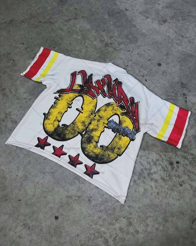 Advbridge Y2K Harajuku Retro Striped Short-sleeved Street Hip-hop Punk Style Printed Oversized T-shirt Men Trendy Brand Casual Cotton Top