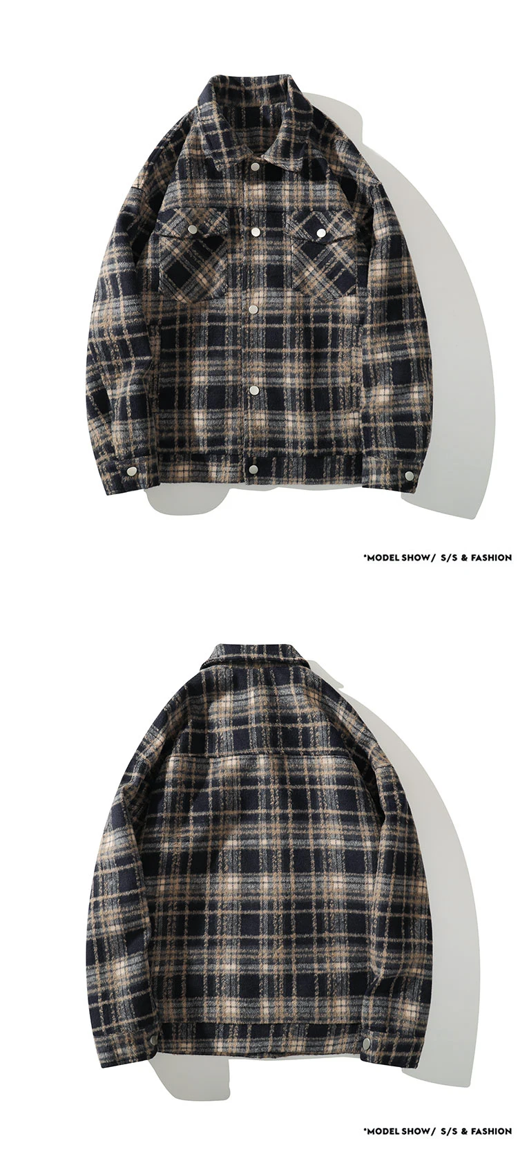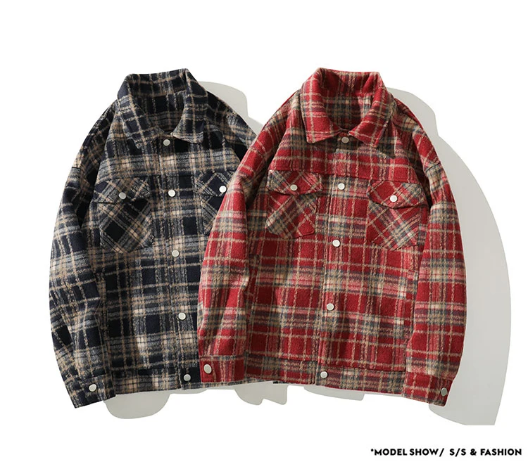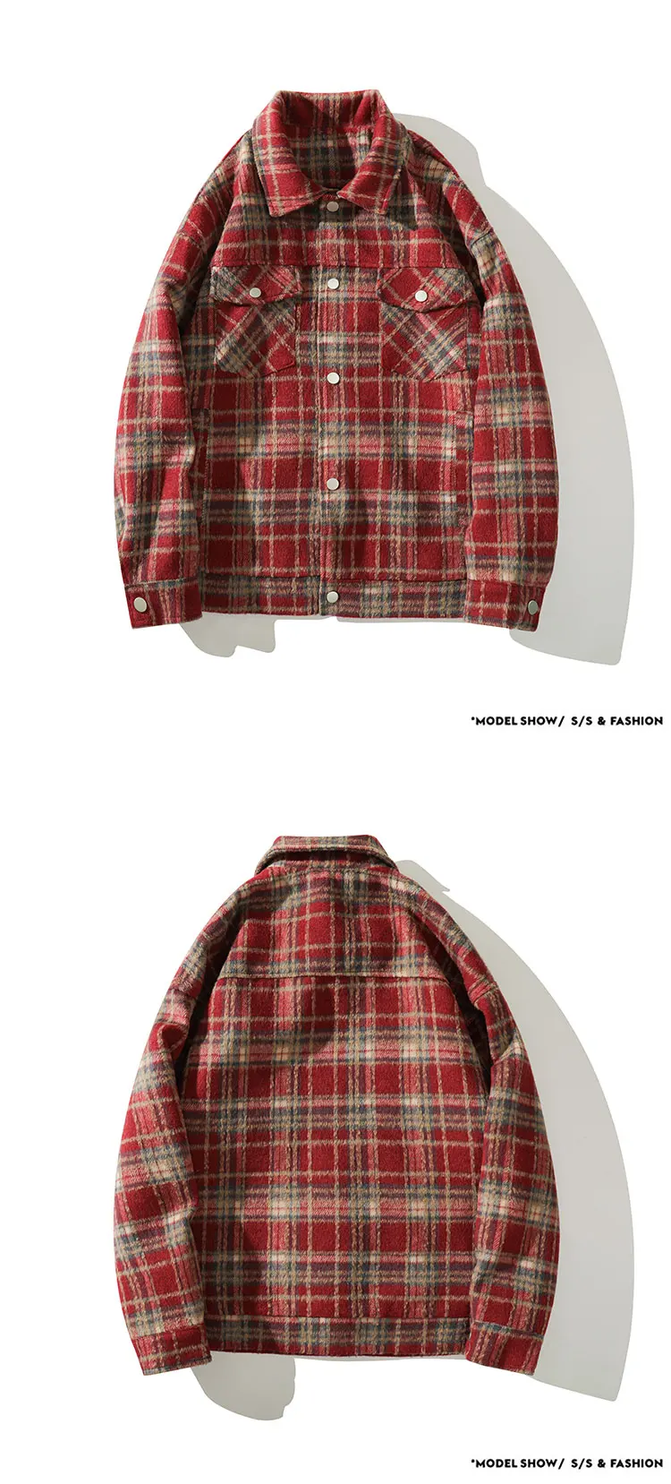 Advbridge American Retro Red Plaid Jacket England Style Couple Shirt Jackets Autumn New Unisex Coat Three-dimensional Pockets Design
