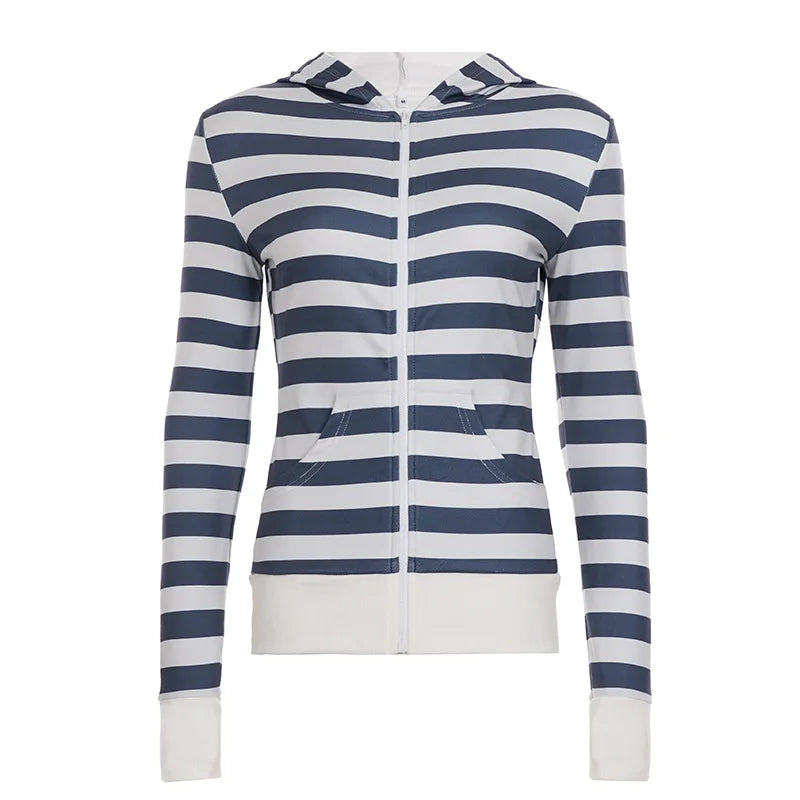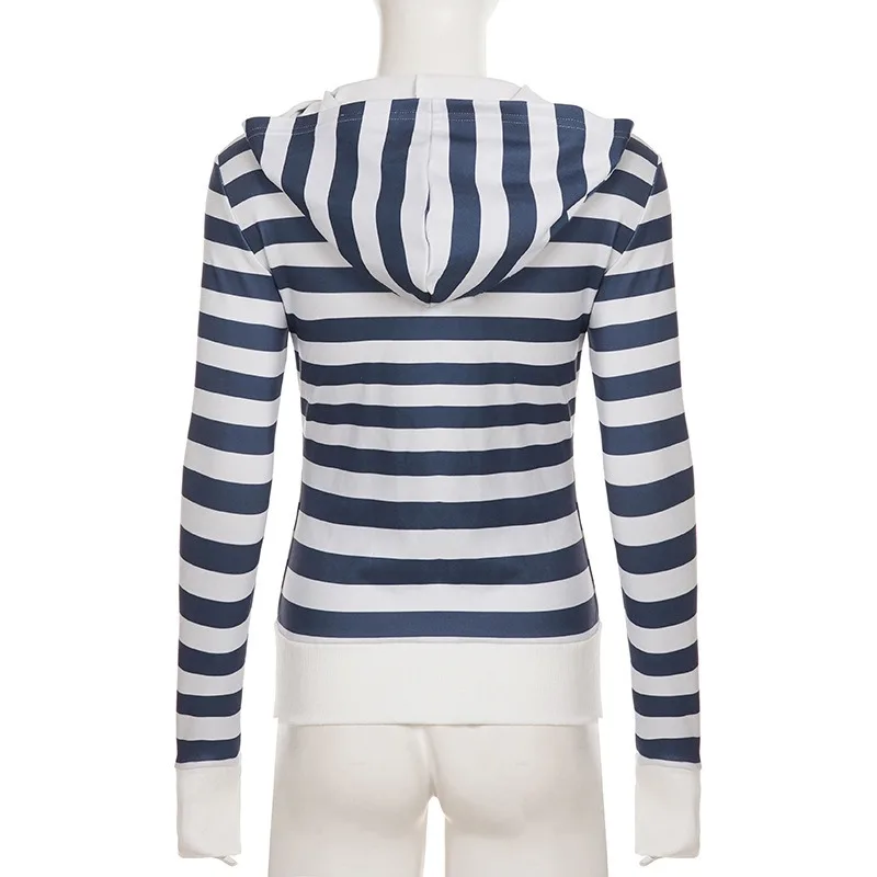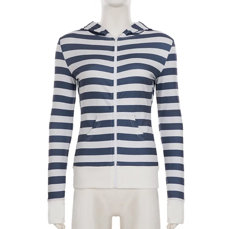 ADVBRIDGE - Simple Constrast Color Striped Hooded Jackets Y2k High Street American All Macth Lazy Zip Up Coats Harajuku Slim Pockets Clothes