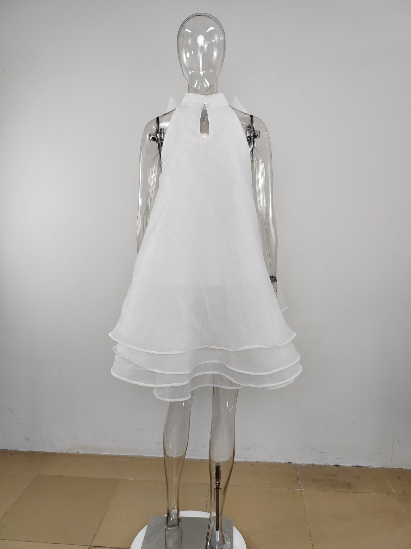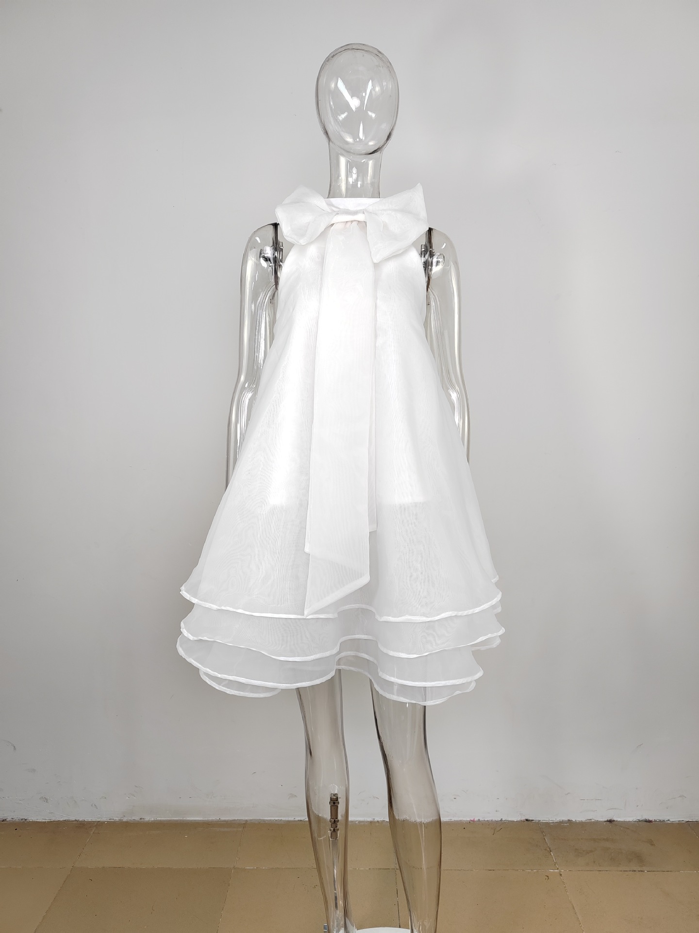 ADVBRIDGE Summer White Babydoll Dress for Women Cute Bow Neck Layered Tulle Tierred Dress Puffy A Line Sleeveless Party Birthday Club Wear