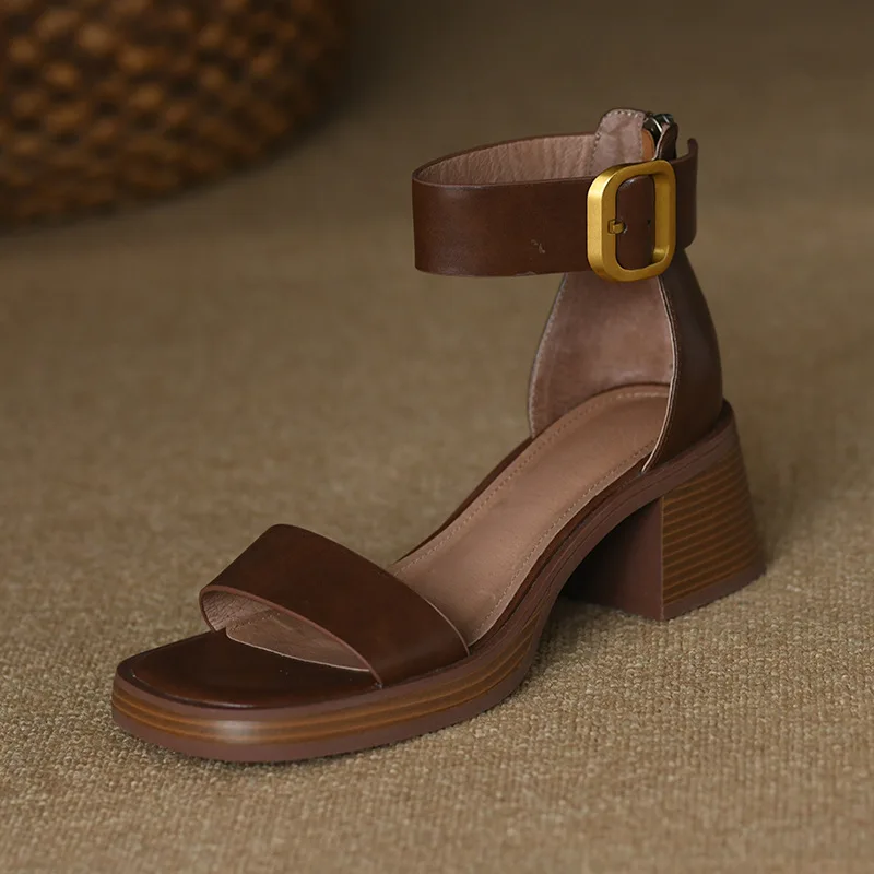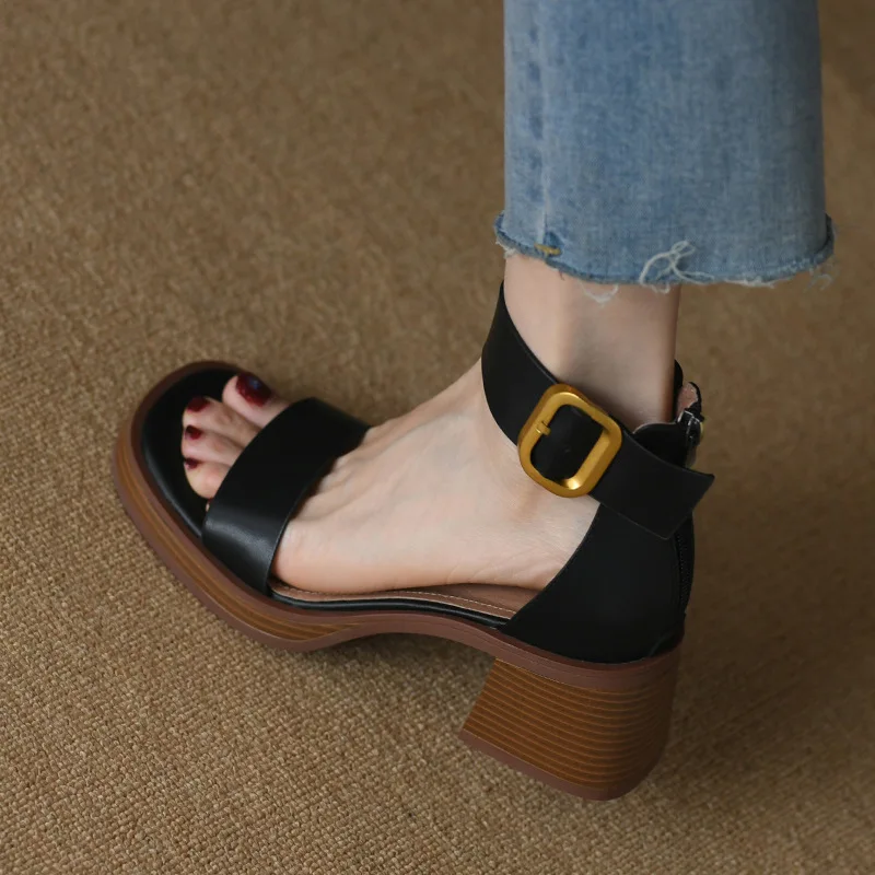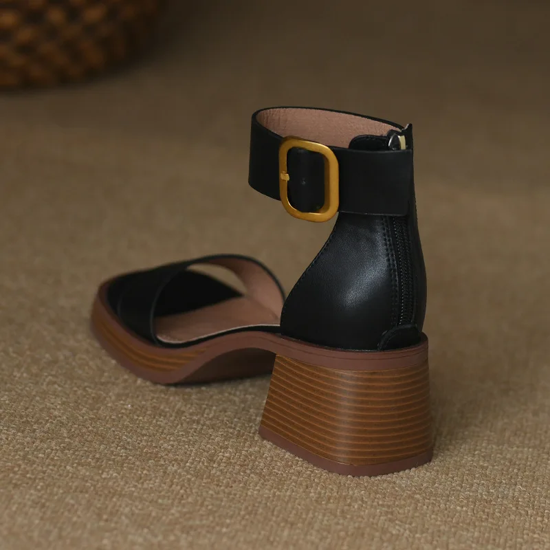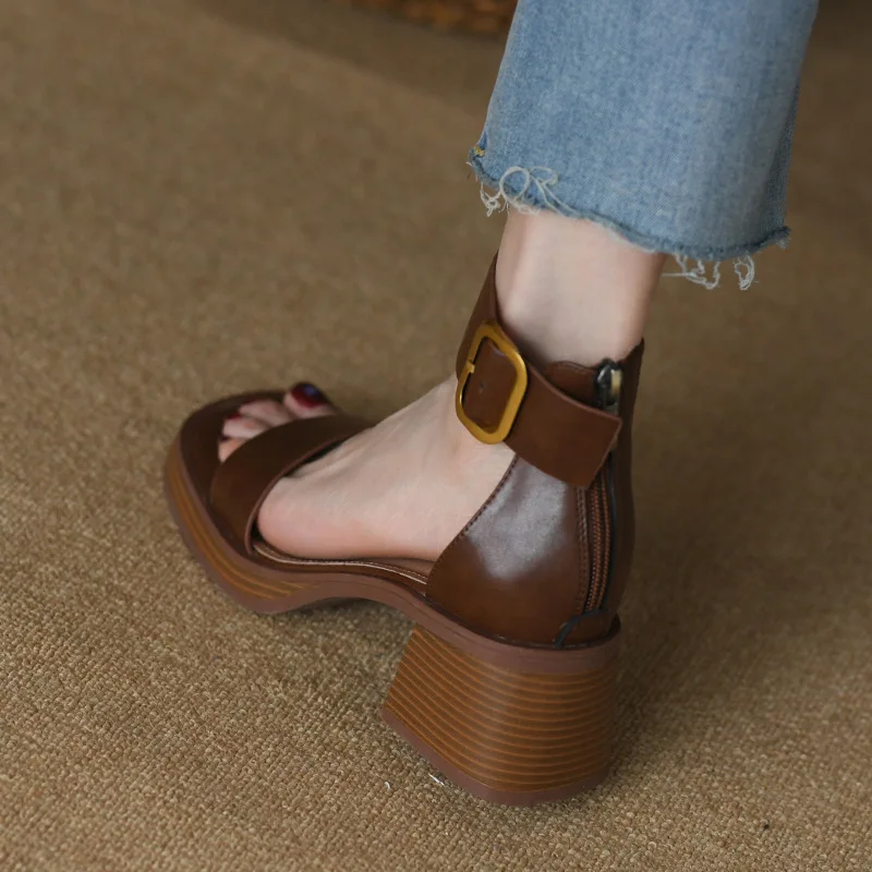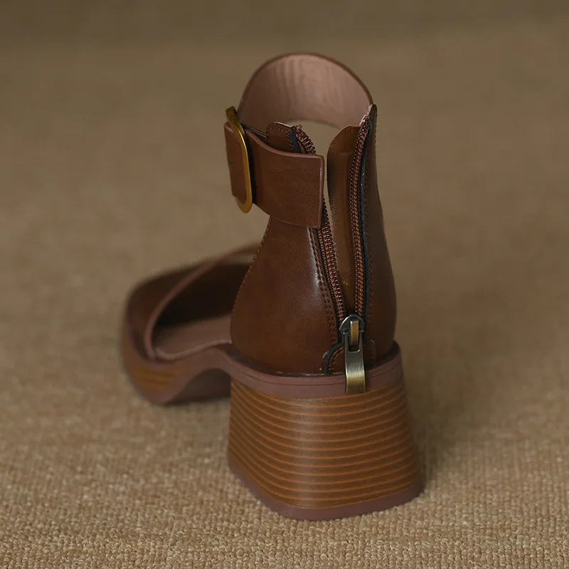 ADVBRIDGE - Women's Sports Shoes Beige Hardened Sole Open Toed Sandals Rear Zipper Peep Toe Retro High Heels