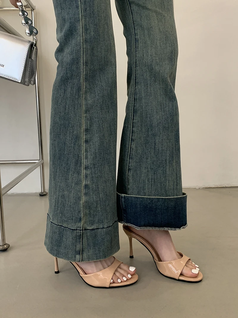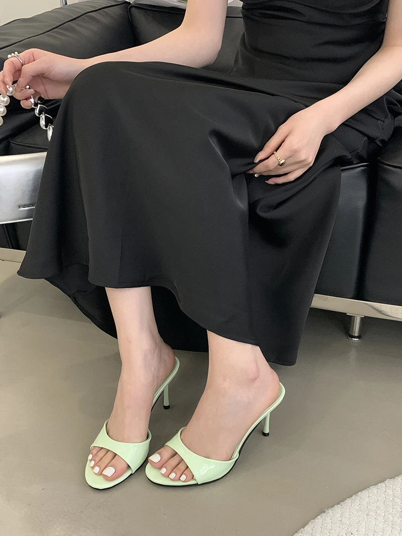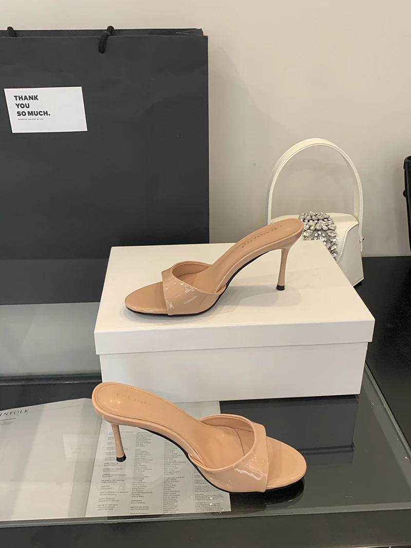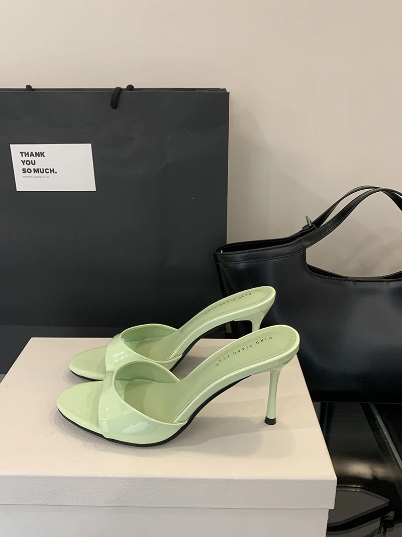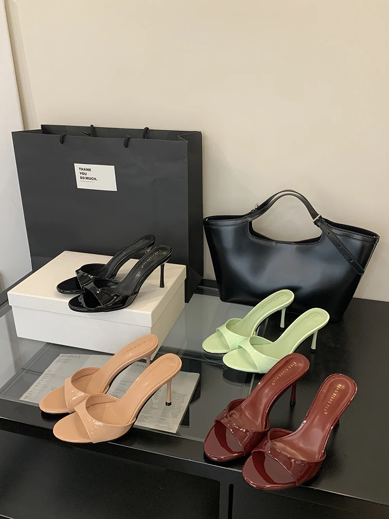 ADVBRIDGE - 8cm Stiletto Heels Woman Slippers Black Patent Leather High Heels Sandals Leisure Ladies Summer Shoes Burgundy Sandale Femme