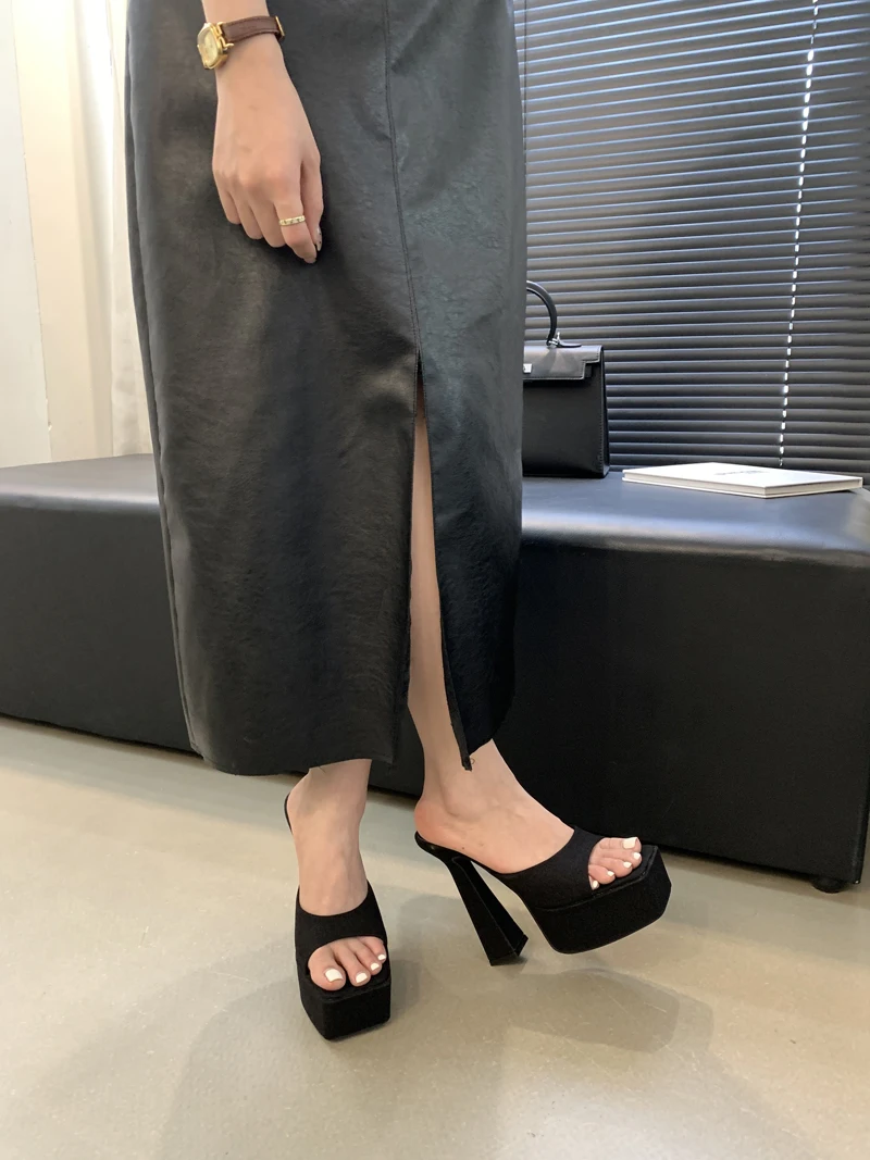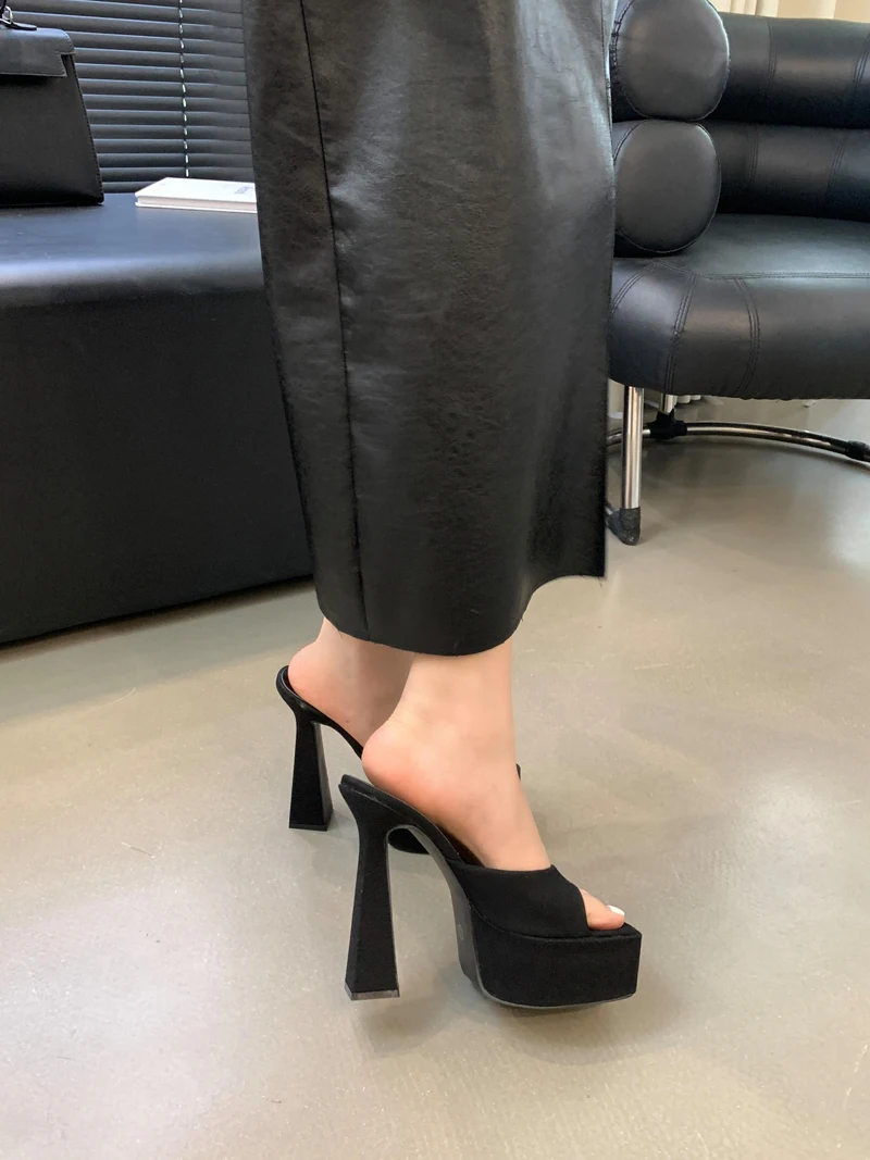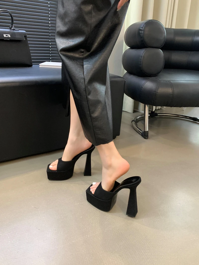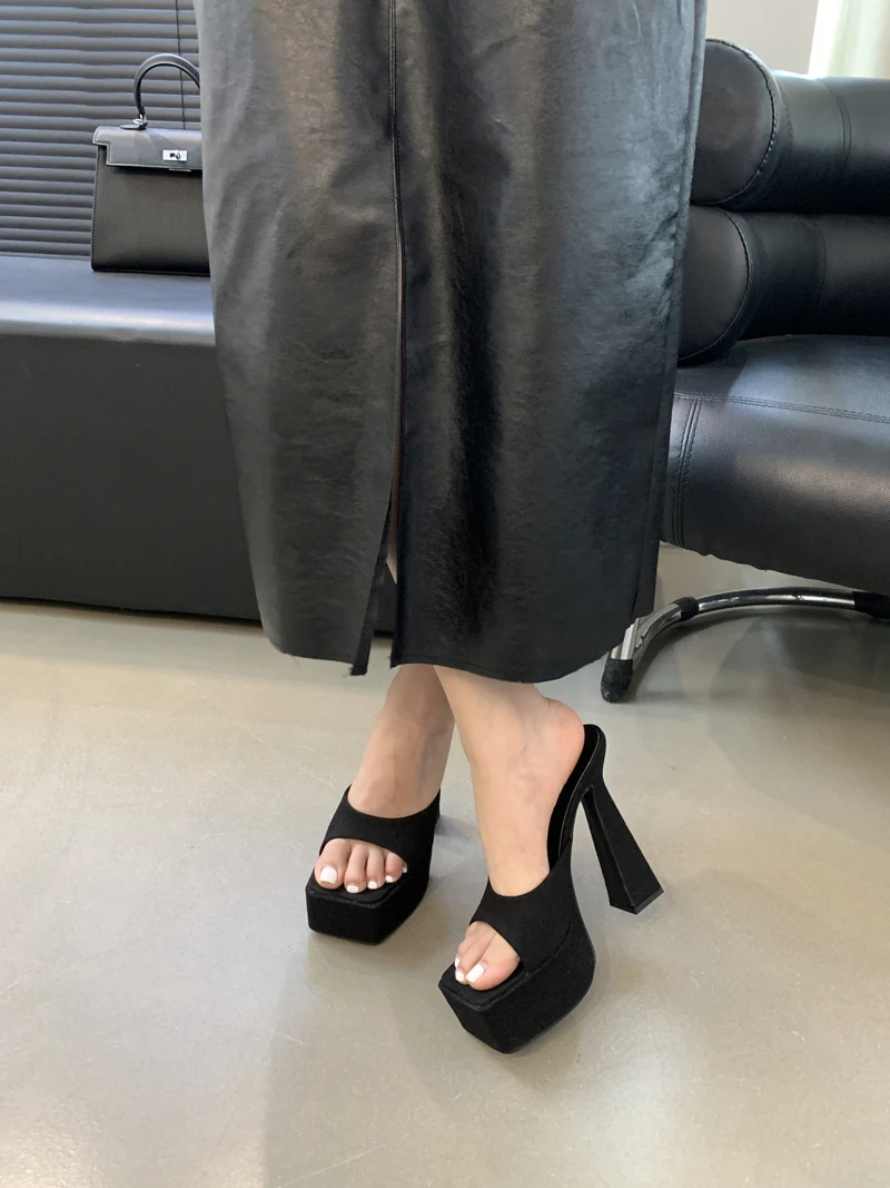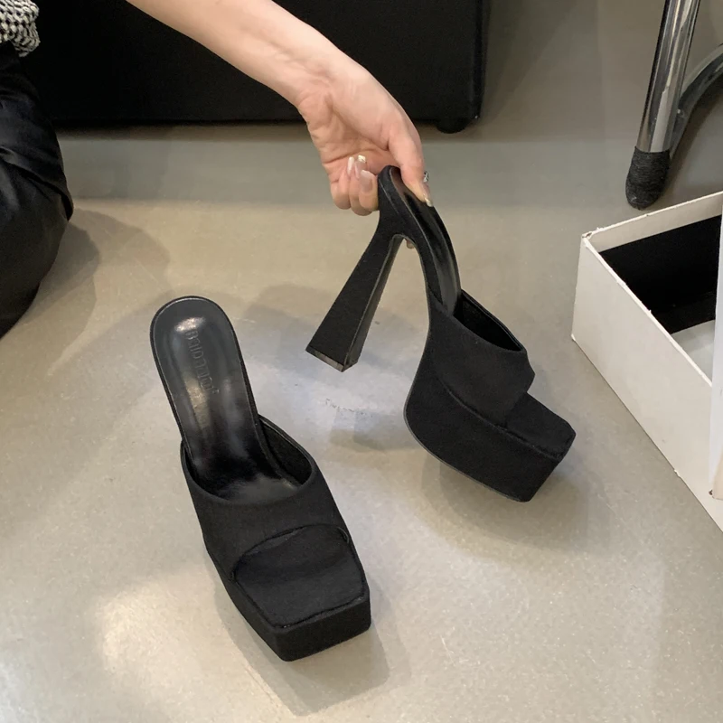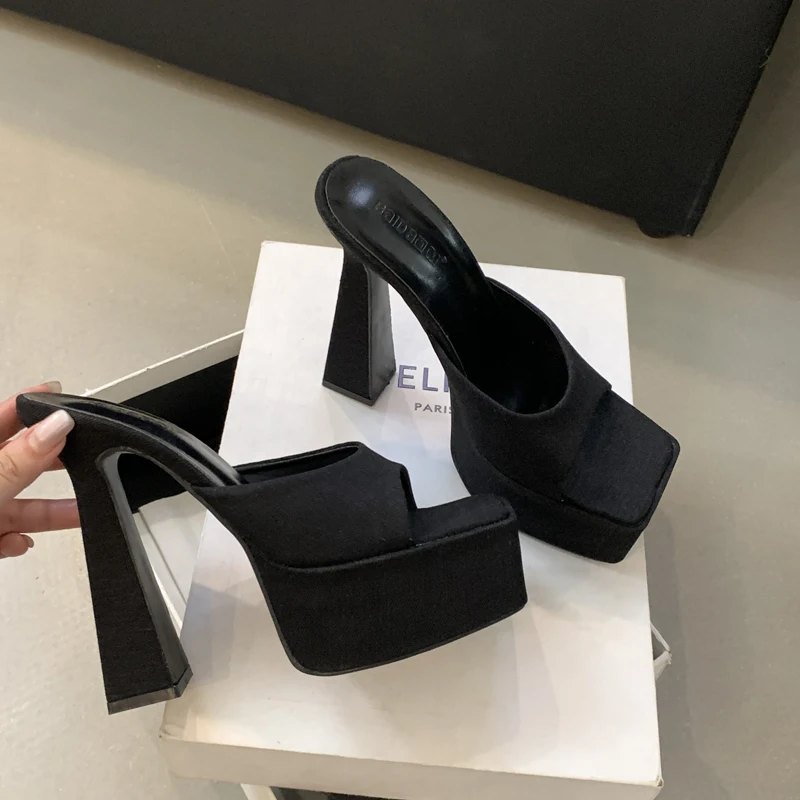 ADVBRIDGE - Blue Slippers 13cm Heeled Sandals Black Platform High Heels Summer Shoes Women Ladies Chunky Slippers Fashion Sandalias Mujer