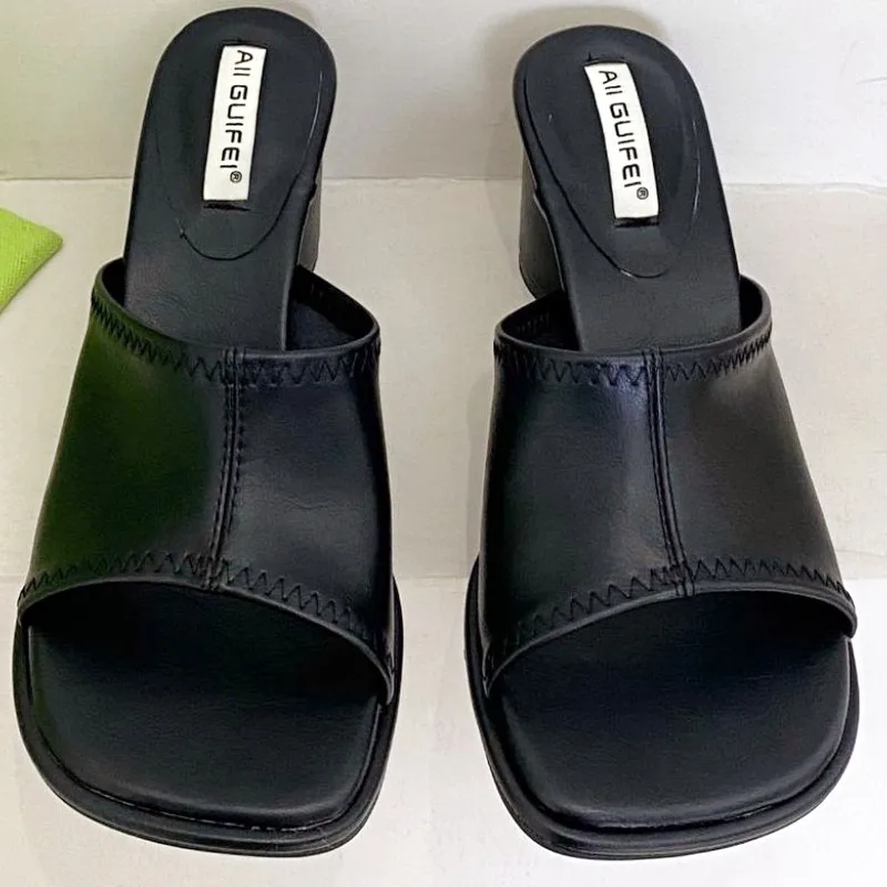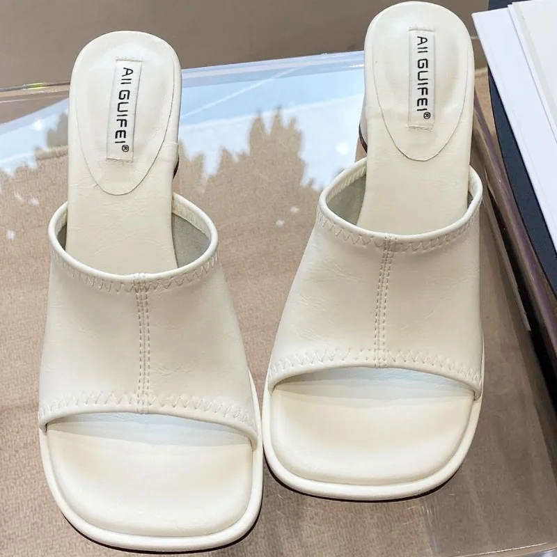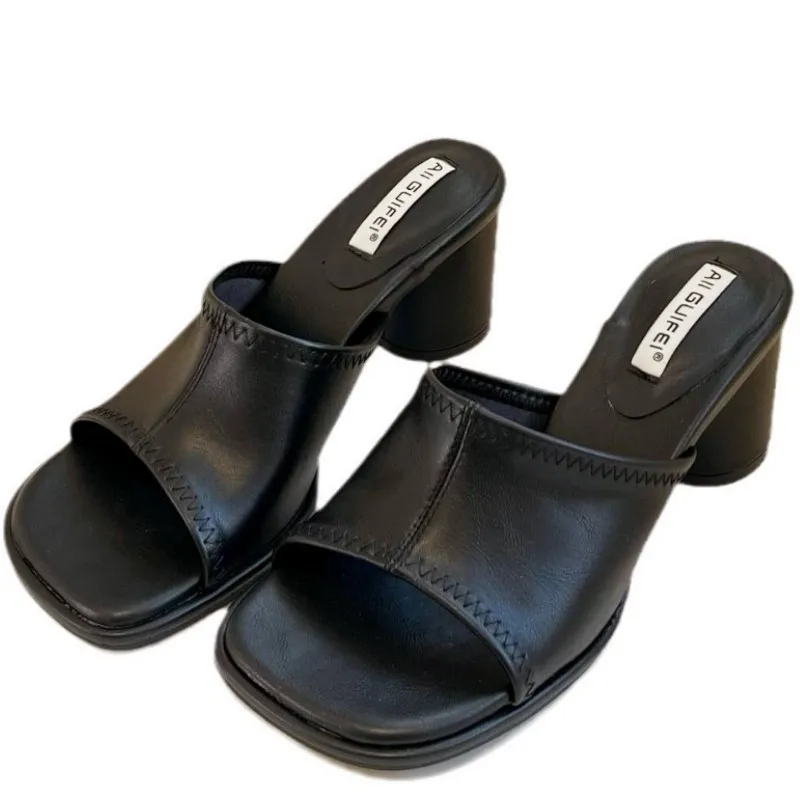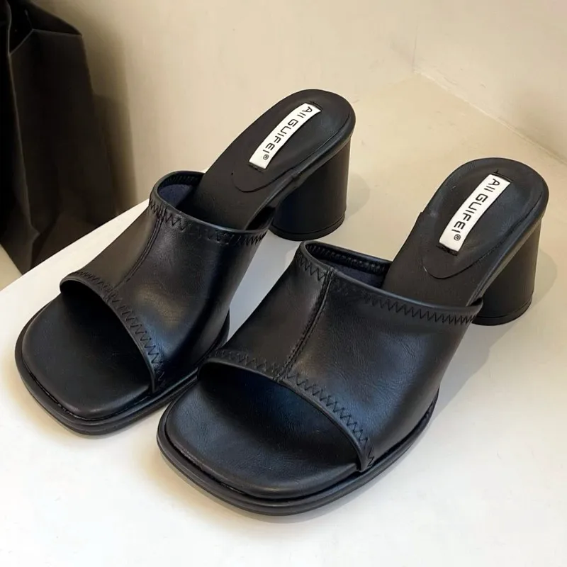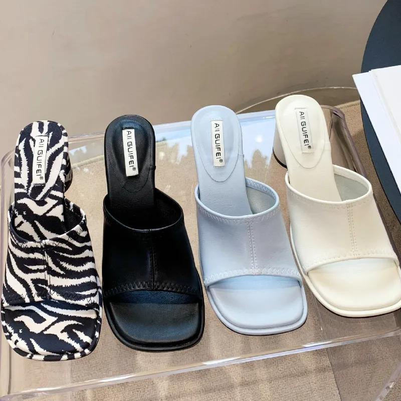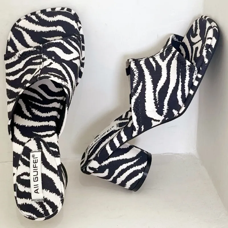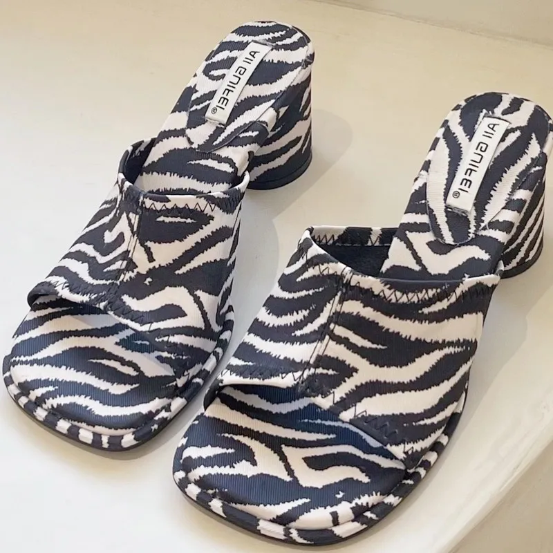 ADVBRIDGE - Fashion Square Toe Zebra Print Slide Sandals Shallow Chunky Heel Open Toe High Heels Summer Comfortable Non-slip Women Sandals