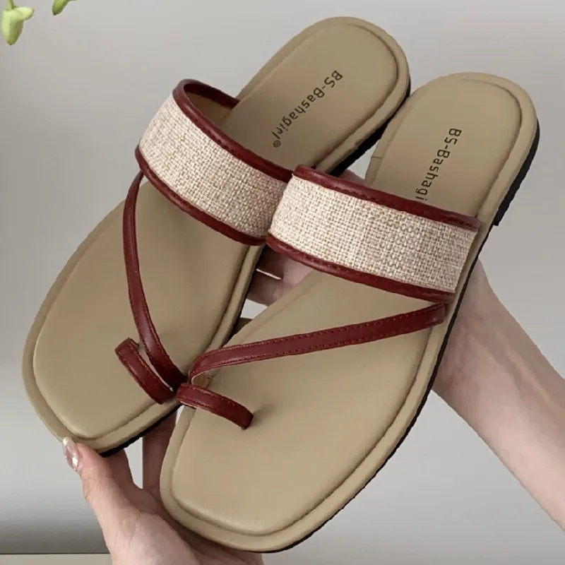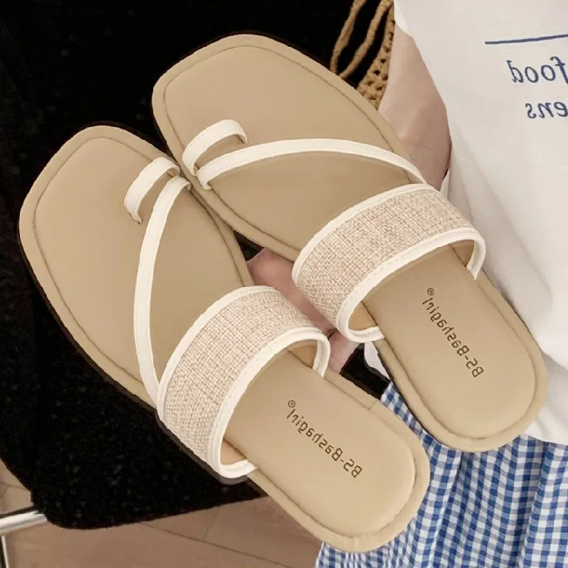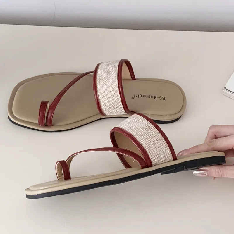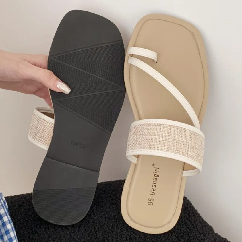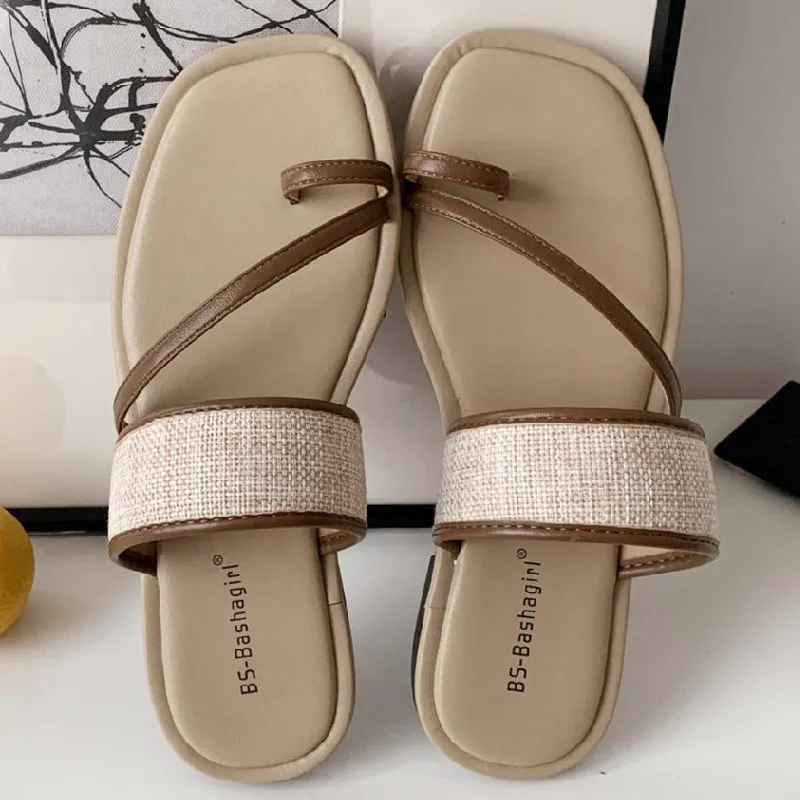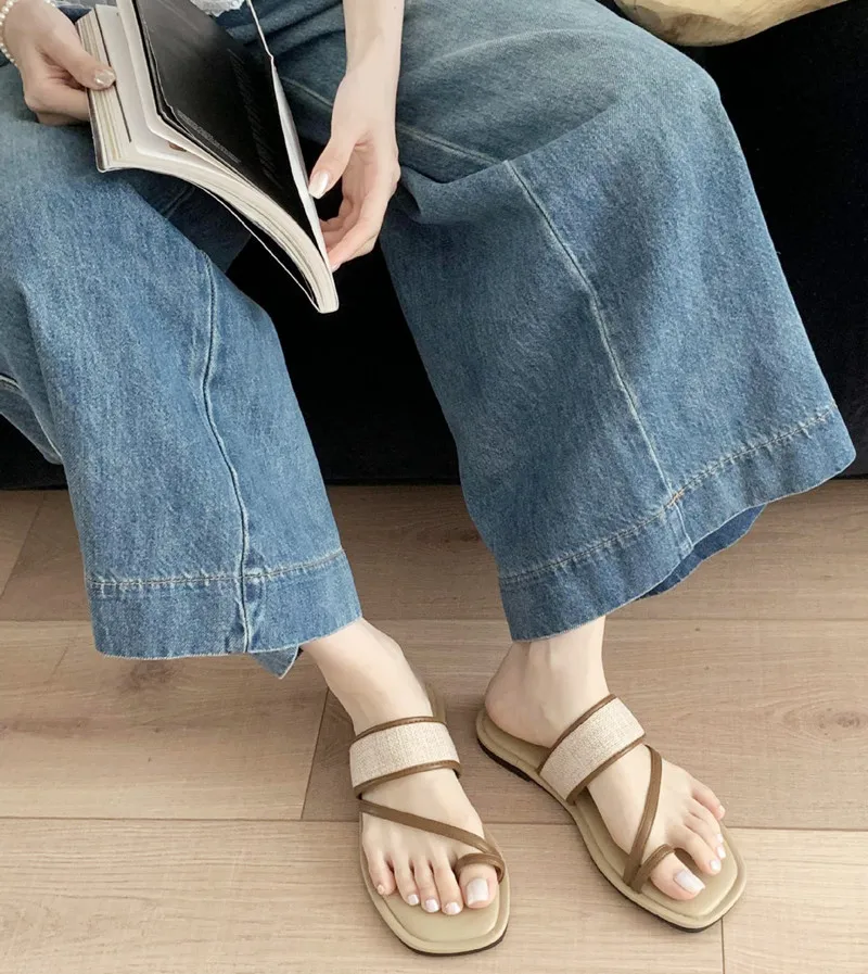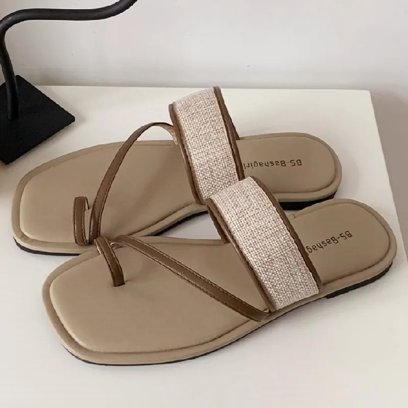 ADVBRIDGE - Fashion Weaving Narrow Band Flat Sandals Women Summer Square Toe Clip Toe Designer Shoes Simple Non-slip Vacation Beach Shoes