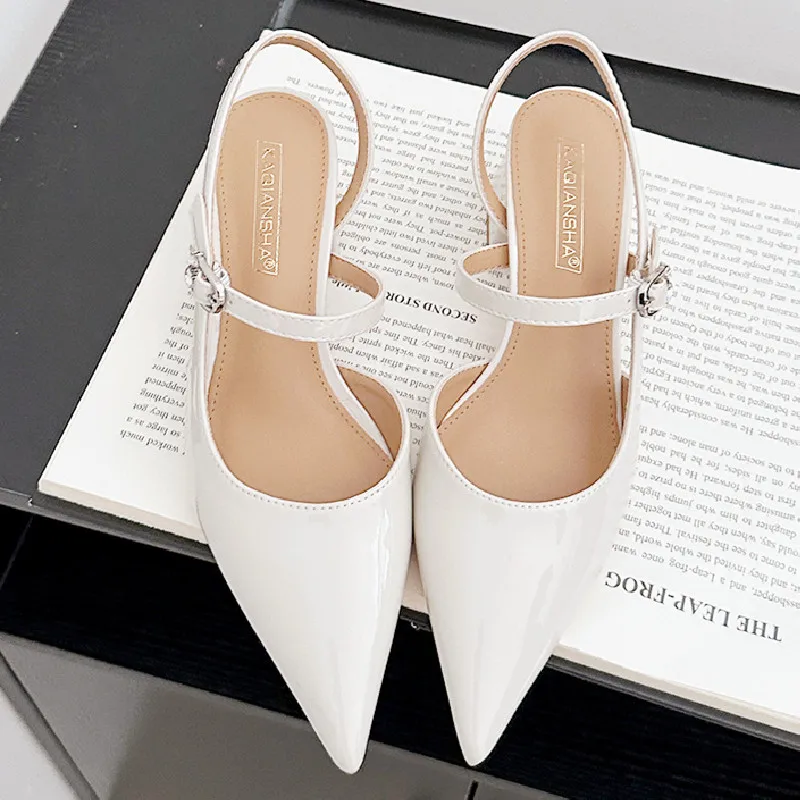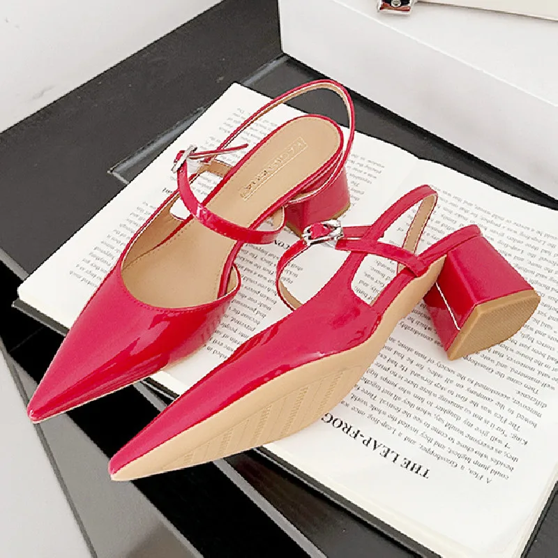 ADVBRIDGE - High Quality Patent Leather Buckle Women Sandals Pointed Toe Back Strap Slide Sandals Fashion Comfort hoof heels Designer Shoes