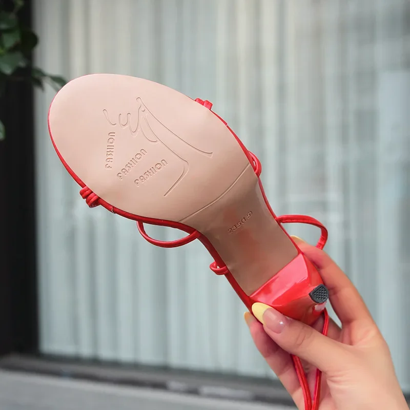 ADVBRIDGE - Large Size Women's Sandals High Heels Wrapped Strap Roman Style Shoes Thin Heel Slippers Rubber Sole round Toe Polyurethane