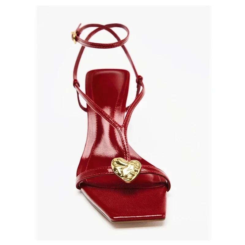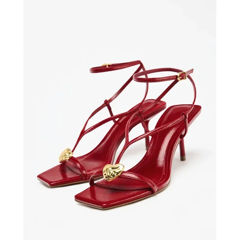 ADVBRIDGE -  Luxury Brand Metal Decoration Open Toe Women's Heeled Sandals 2025 New Square Toe High Heels Sexy Ankle Straps Buckle Sandals