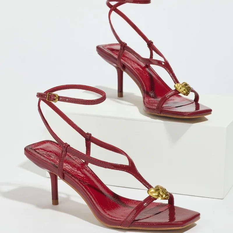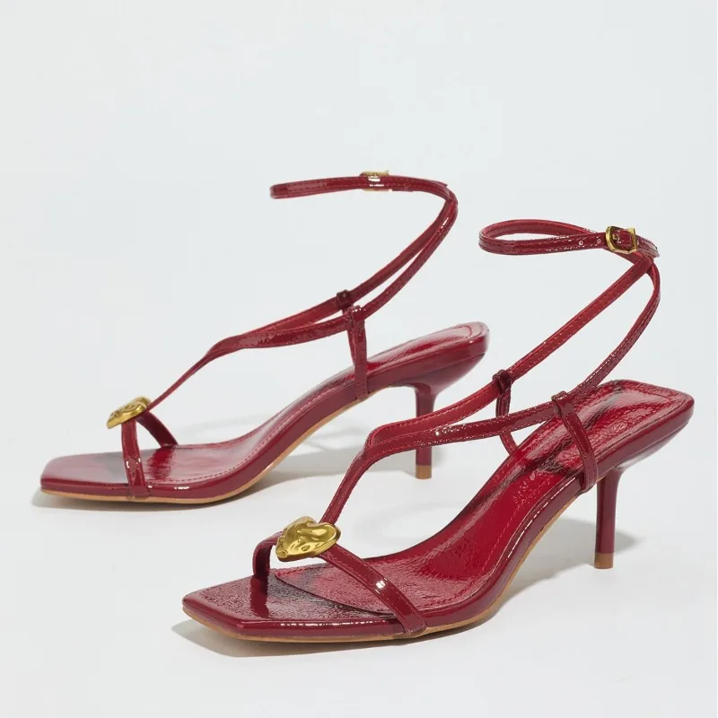 ADVBRIDGE - Luxury Brand Metal Decoration Open Toe Women's Heeled Sandals 2025 New Square Toe High Heels Sexy Ankle Straps Buckle Sandals