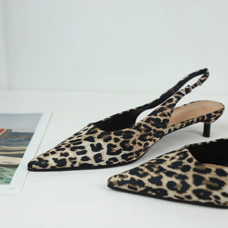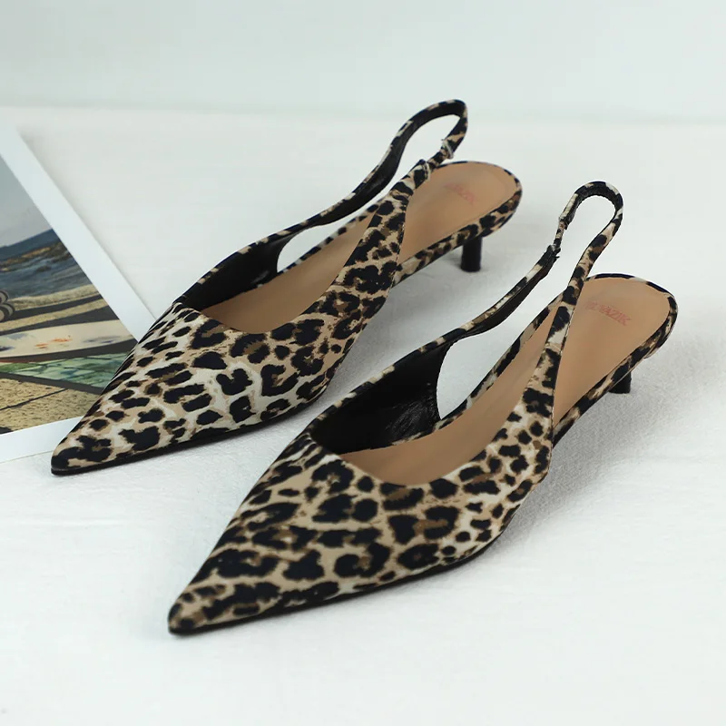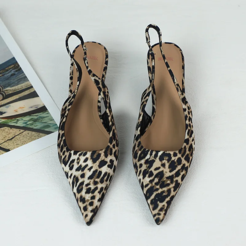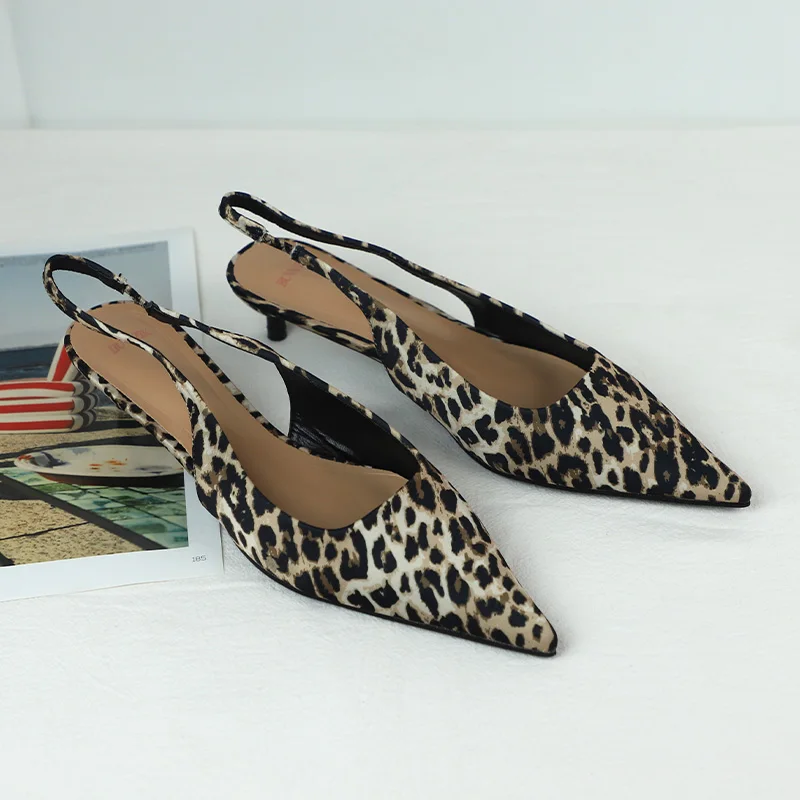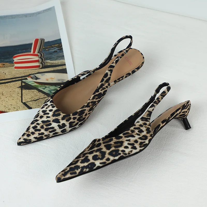 ADVBRIDGE - Luxury Brand Women Low Heels Shoes Leopard Print Comfort Work Slingback Footwear Summer Fashion Pointed Lady Mules Sandals