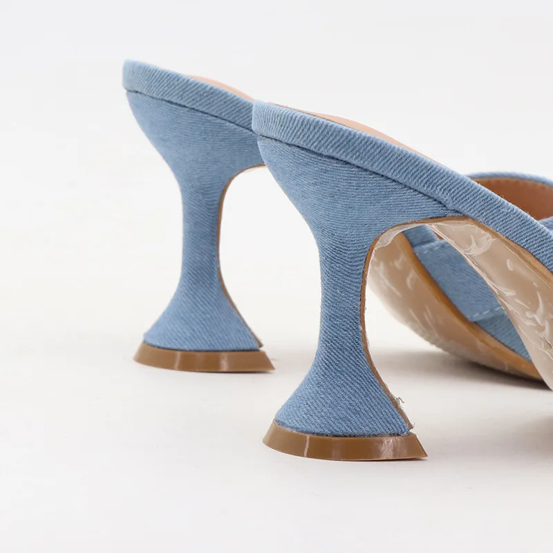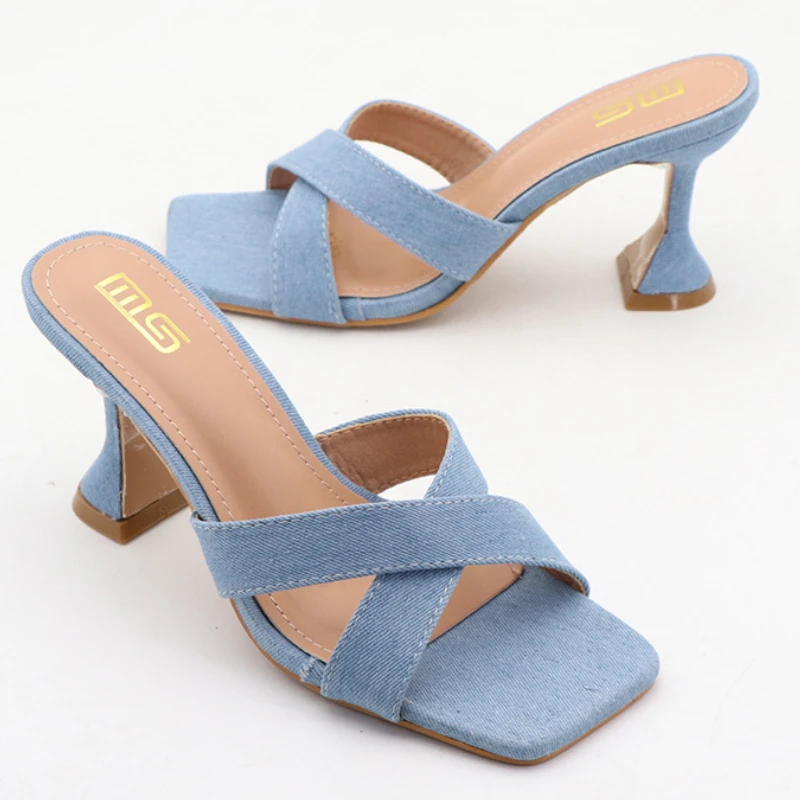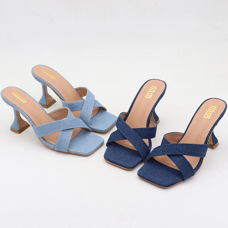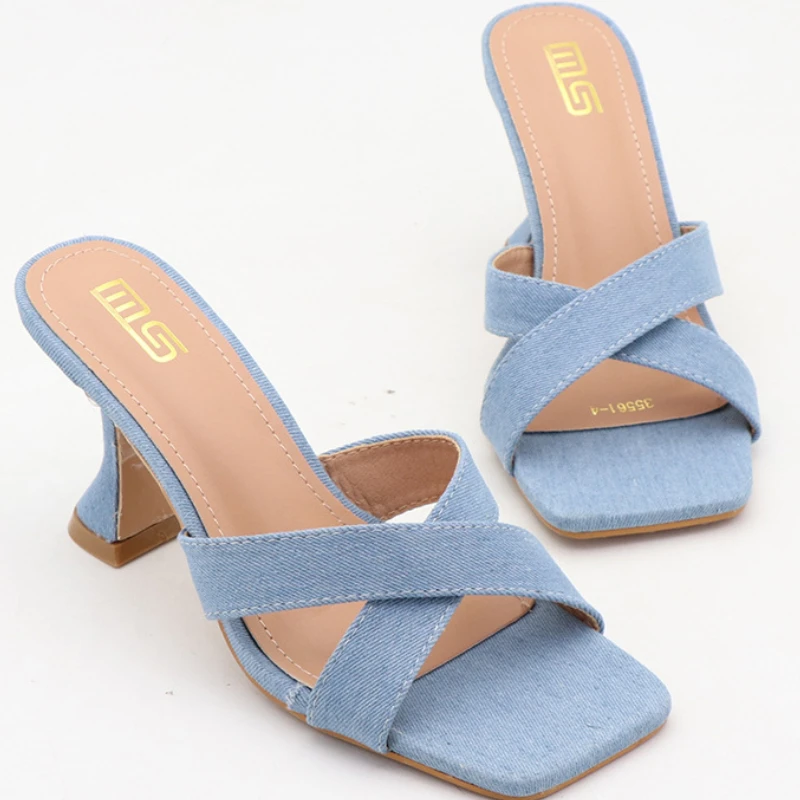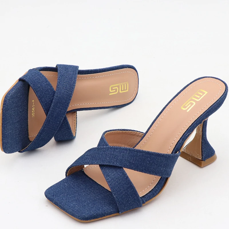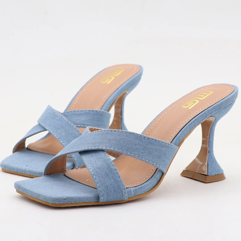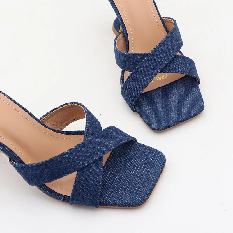 ADVBRIDGE - Luxury Designer Open Toe Women Sandal Blue Denim Square Toe Cross Tied Outdoor Shoes Fashion Comfortable Plus Size Women Shoes