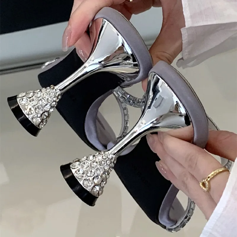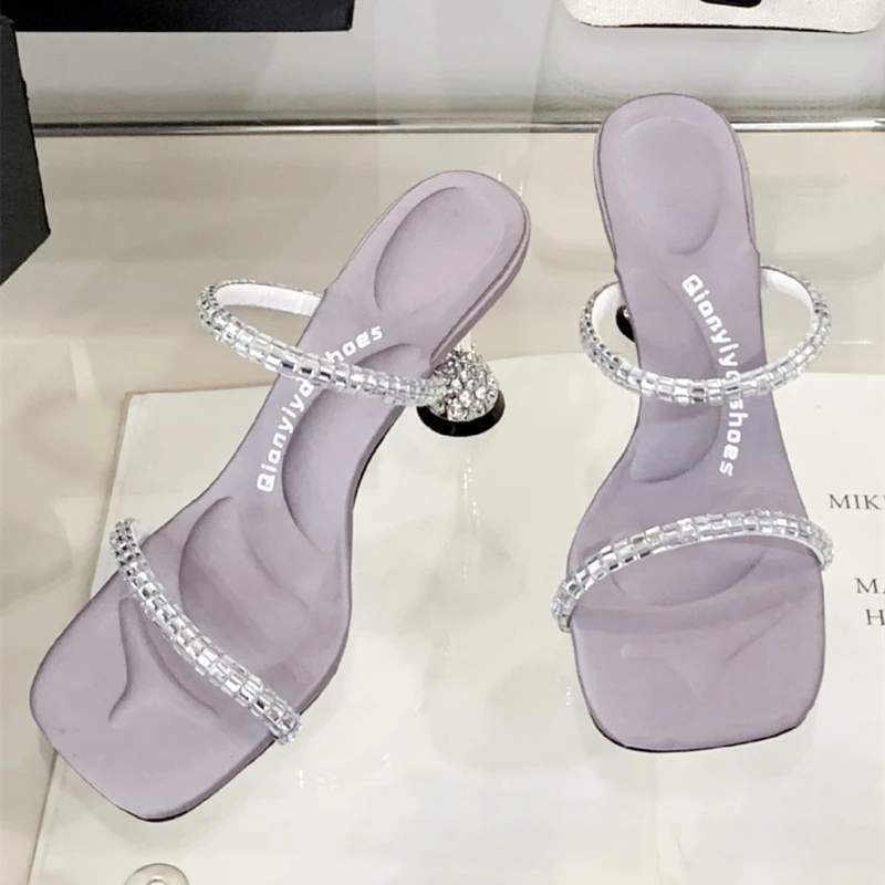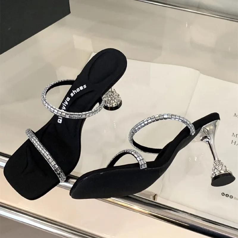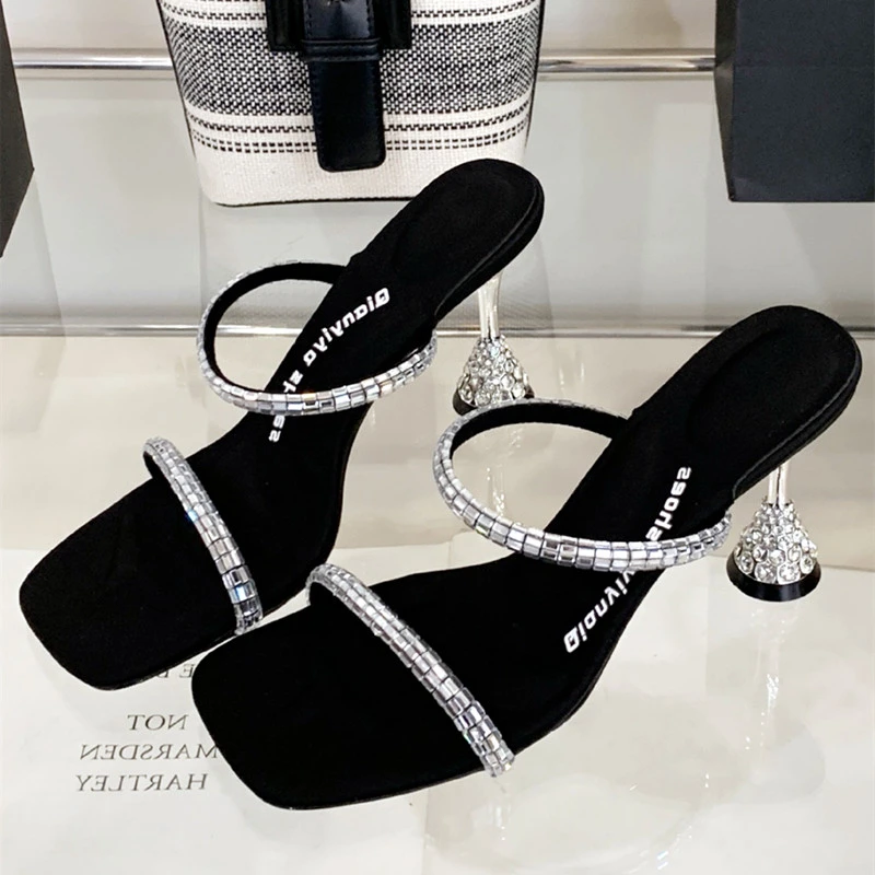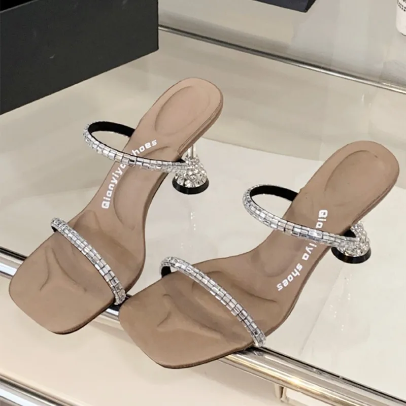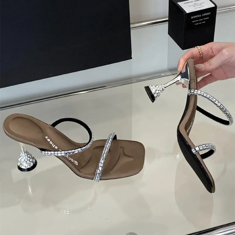 ADVBRIDGE - Luxury Rhinestone Open Toe Women Sandals Square Toe Thin Heel Designer Slide Sandals Summer Fashion High Heel Shoes for Woman