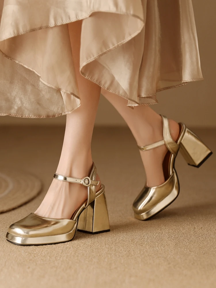Advbridge Luxury Women's Sandals Summer Shoes 2024 Ankle Straps Gold Silver High Heels Close Toe Party Shoes Female Designer Big Size 45