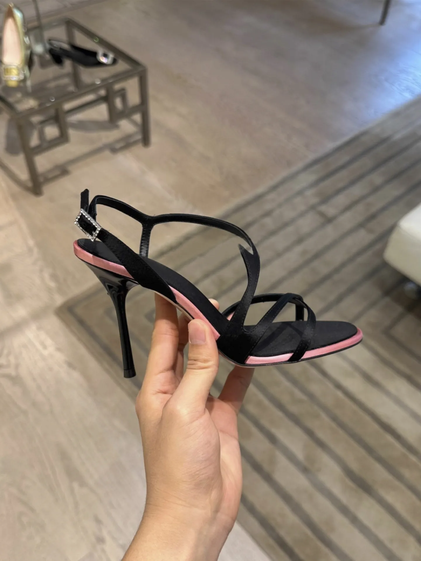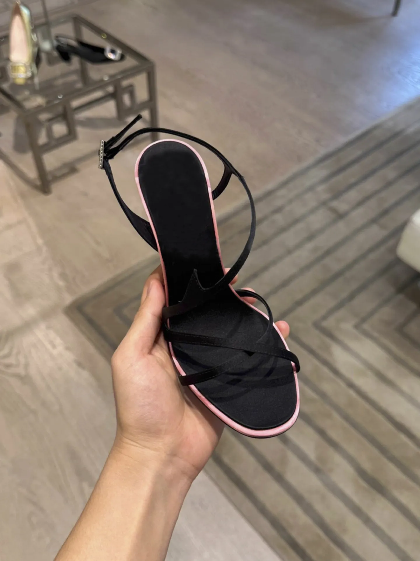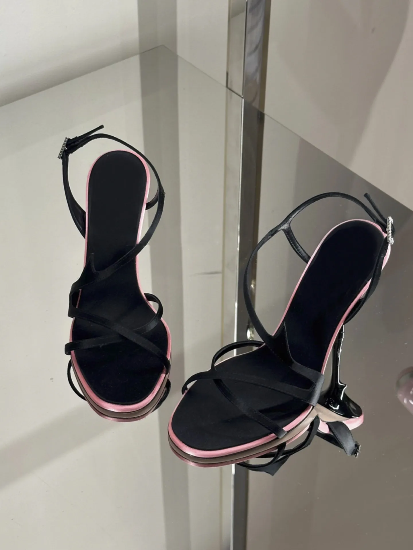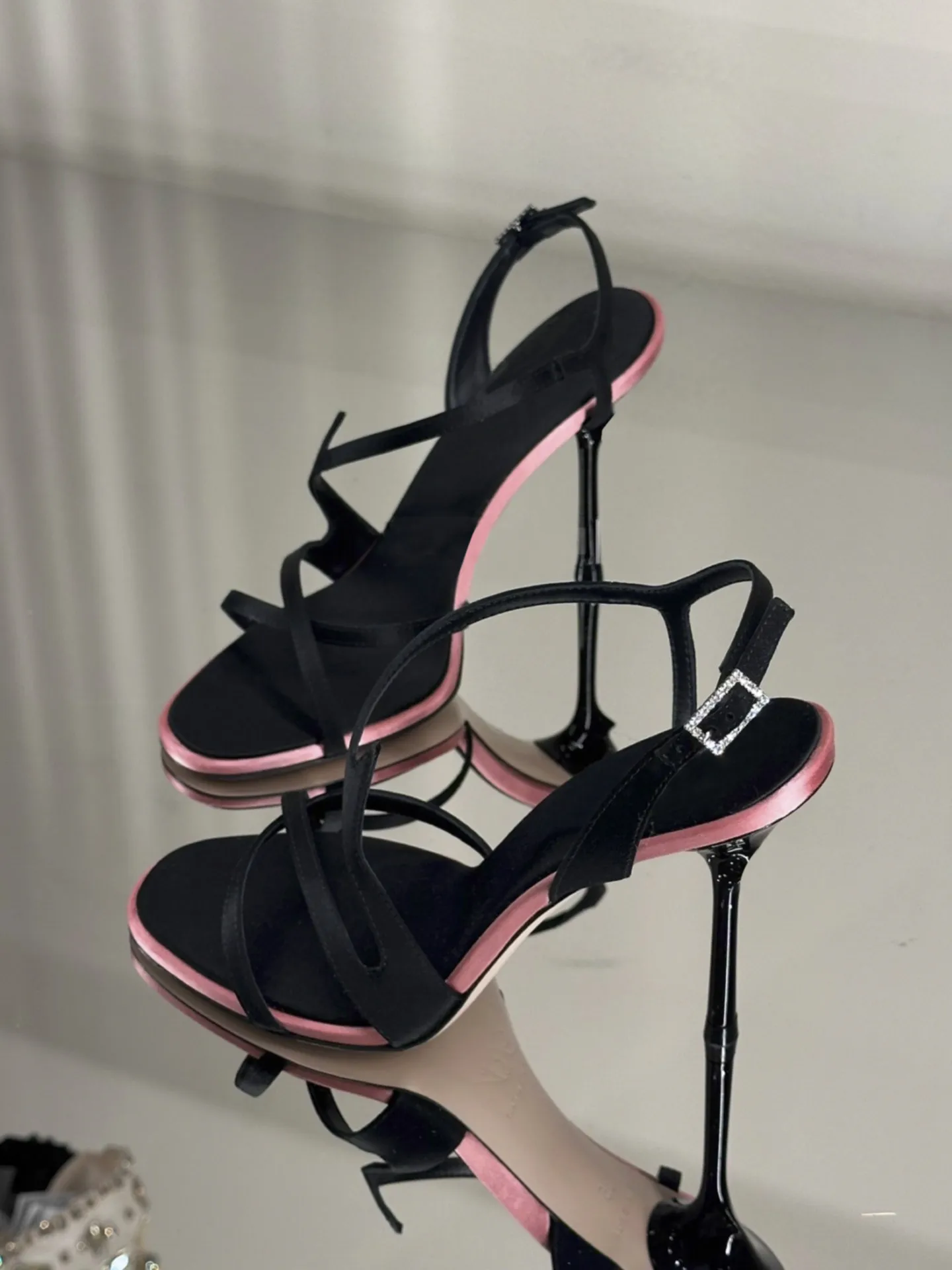 ADVBRIDGE - Satin Color Block Stiletto High Heels with One Belt New Summer Temperament Versatile Sandals