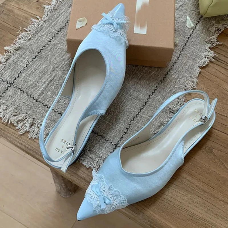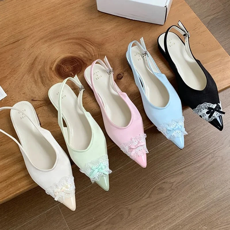 ADVBRIDGE - Satin Luxury Pointed Toe Mules Women Slides Butterfly-Knot Shallow Elegant Dress Shoes 2025 Summer Slingback Sandals Ladies