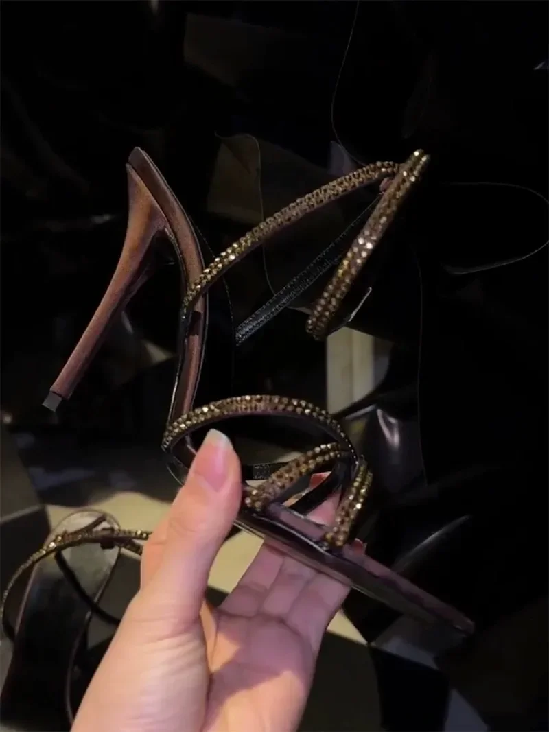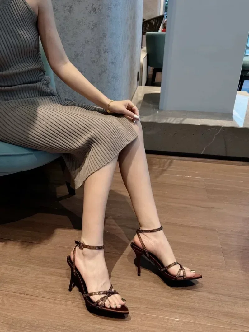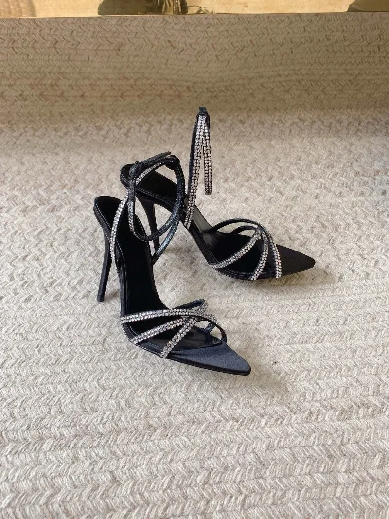 ADVBRIDGE  -  Sexy Pointed Toe High Heels Women Luxury Rhinestone Satin Design Cross-Strap Heeled Sandals Summer Elegant Banquet Dress Shoes
