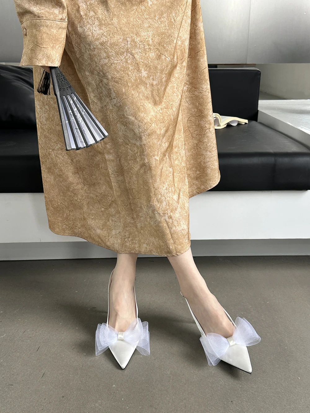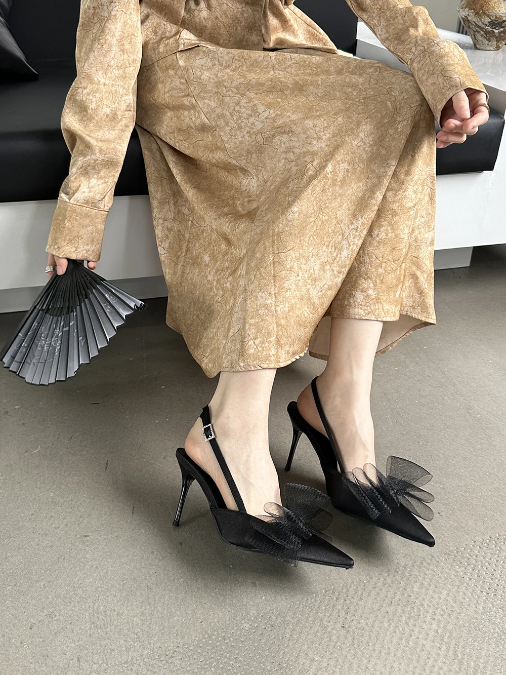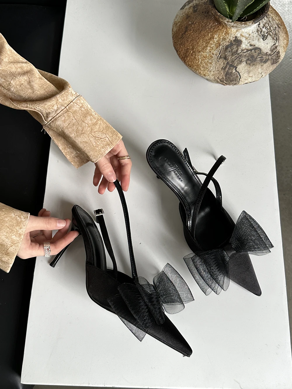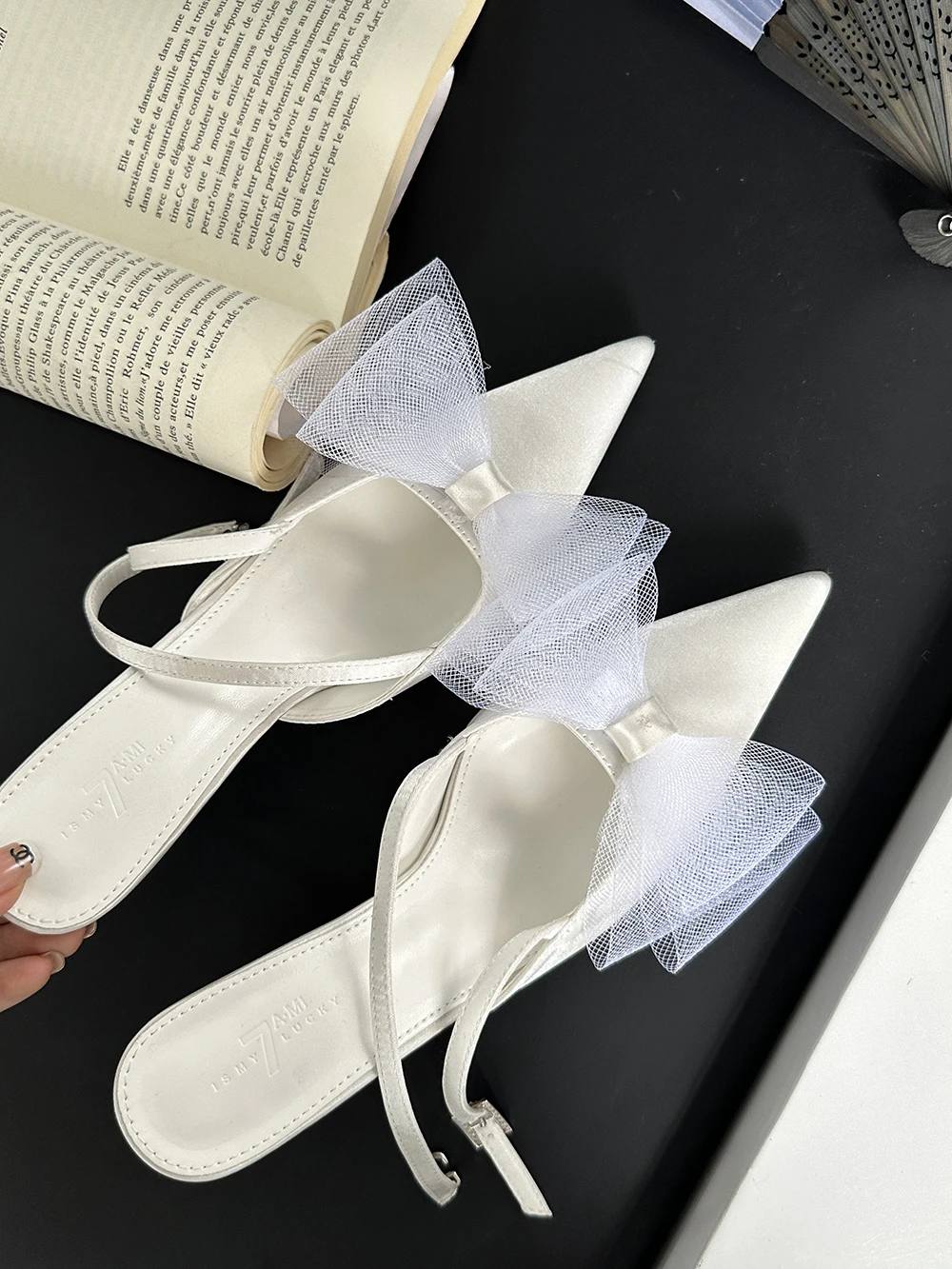 Advbridge Sexy Women Sandals Pointed Toe Summer Dress Shoes Black White Silver Back Strap Bow Design Size 35-39 Thin High Heels Sandals