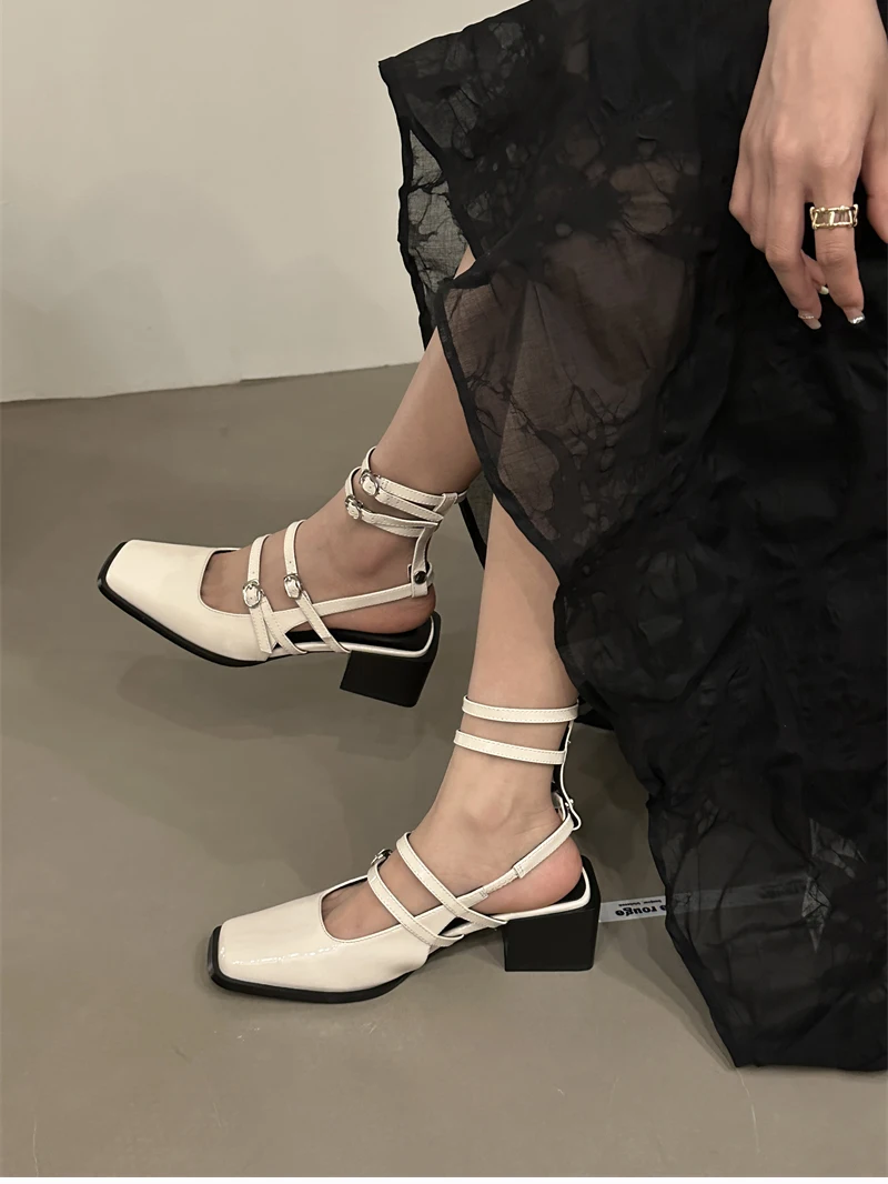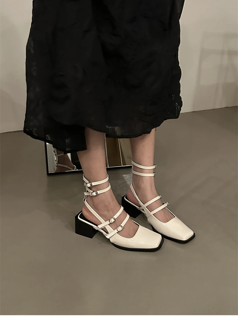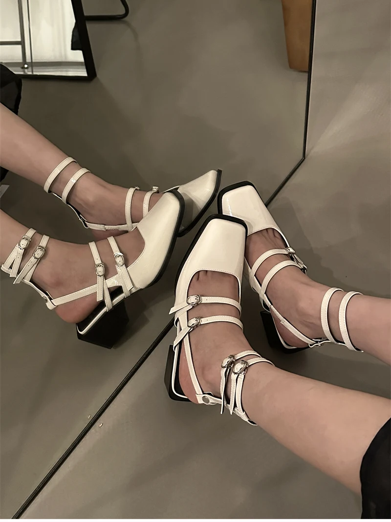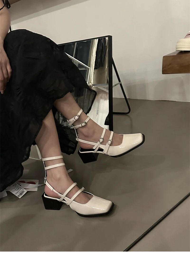 Advbridge Summer Design Women Sandal Fashion Narrow Band Dress Square Heel Shoes Ladies Outdoor Patent Leather Mary Jane Shoes